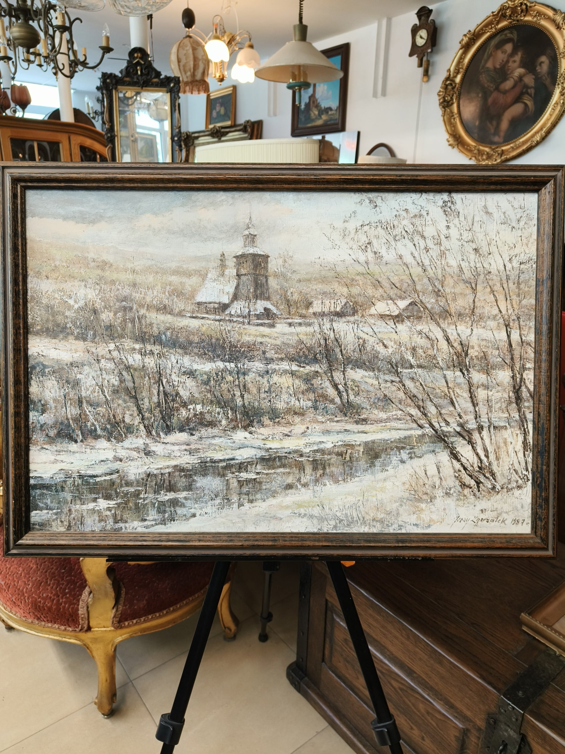 Obraz J. Zgorzałek "Pejzaż z Podgórza w zimie" 1987 r.