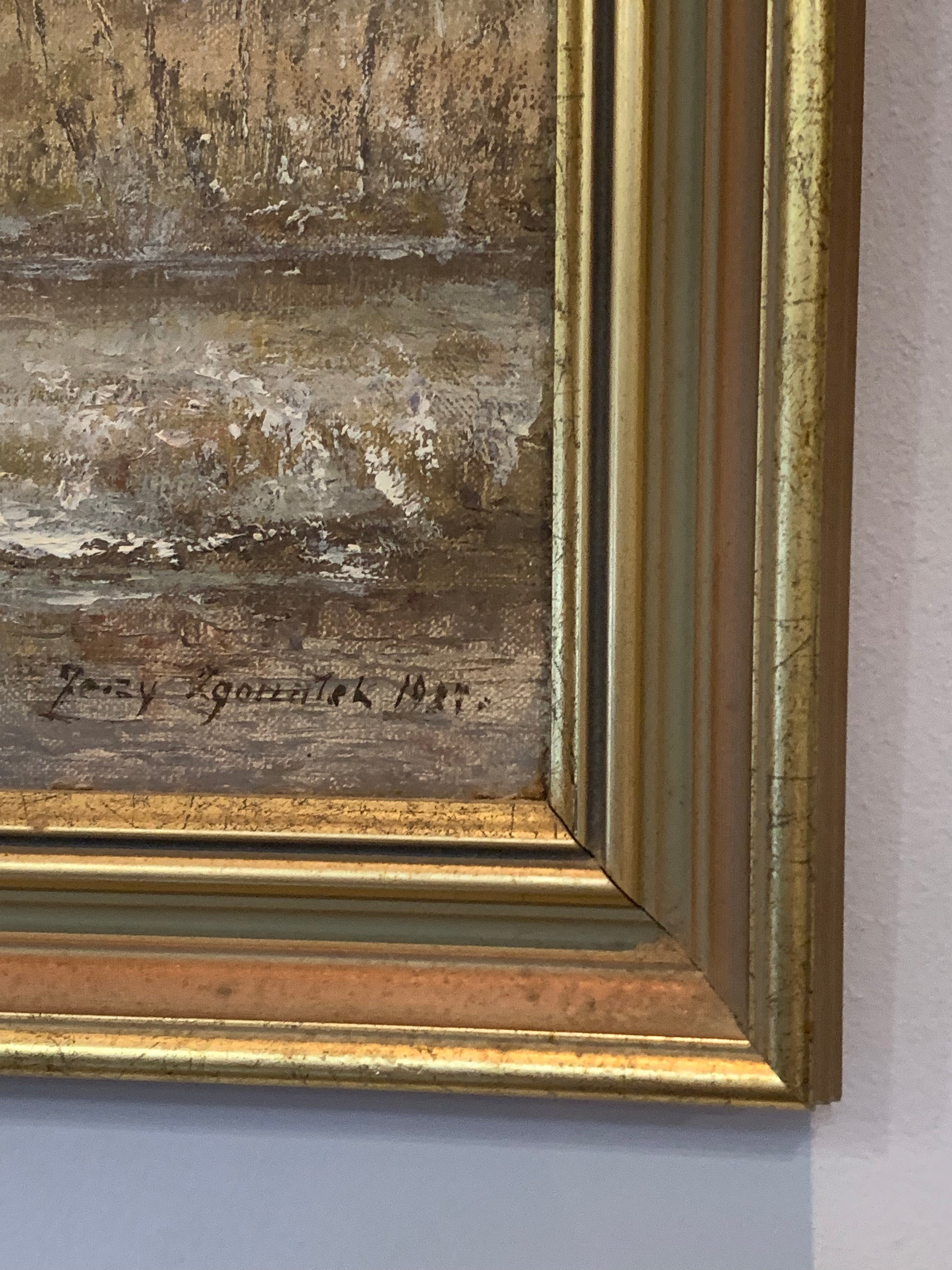 Obraz J. Zgorzałek "Zimowy poranek nad rzeką" 1987 r.