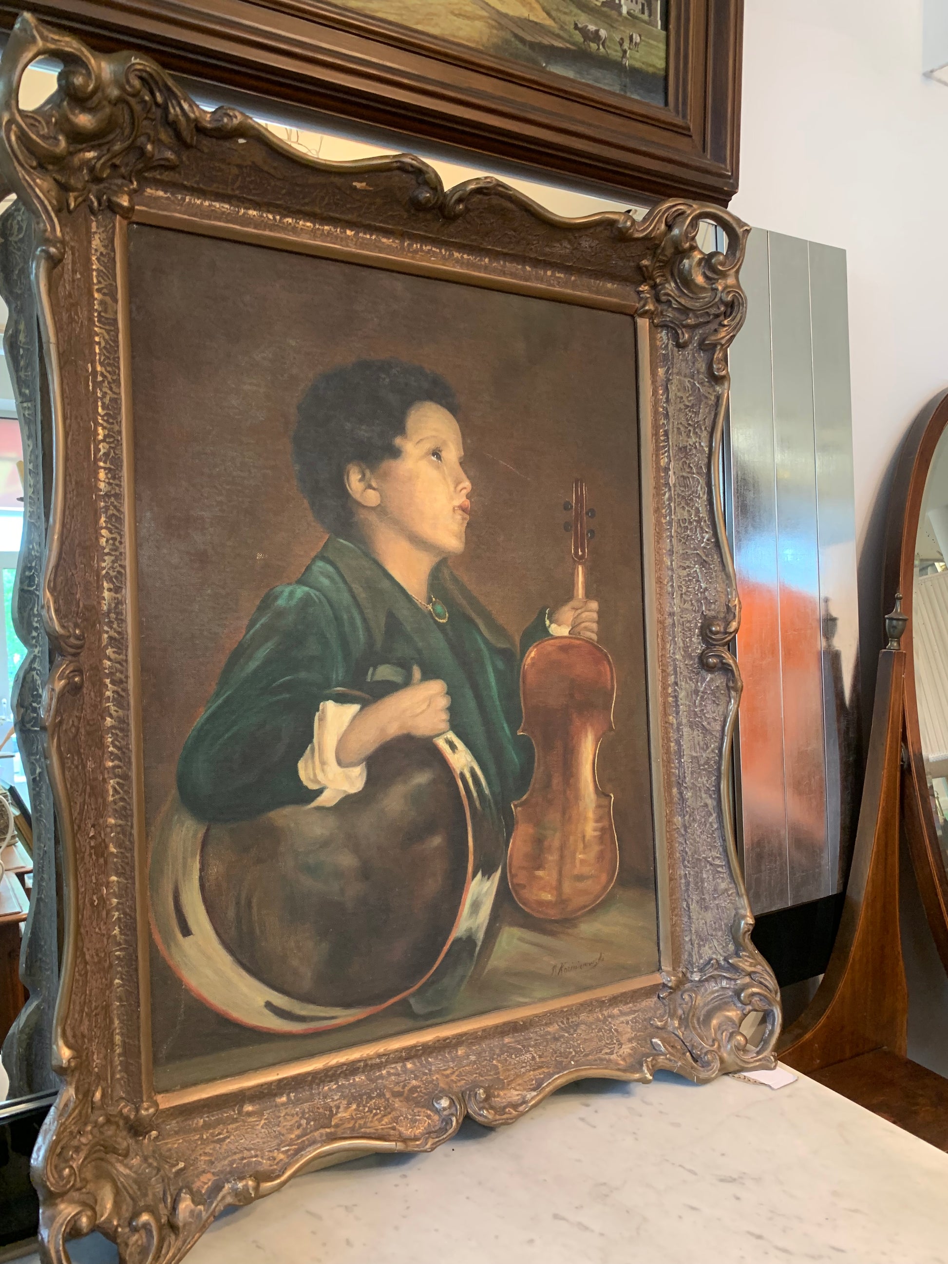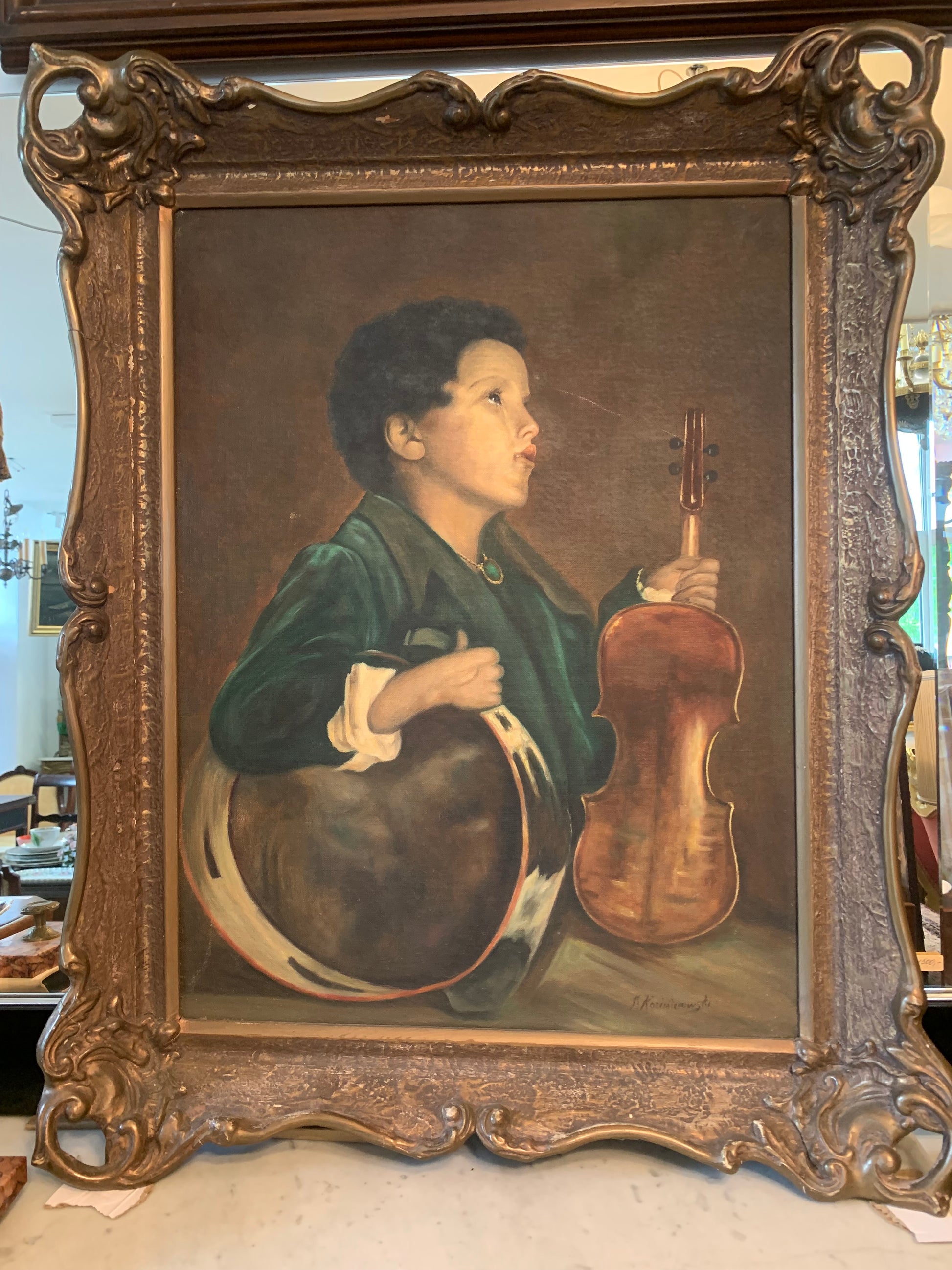 Obraz K. Kazimierski "Chłopiec ze skrzypcami i tamburynom"