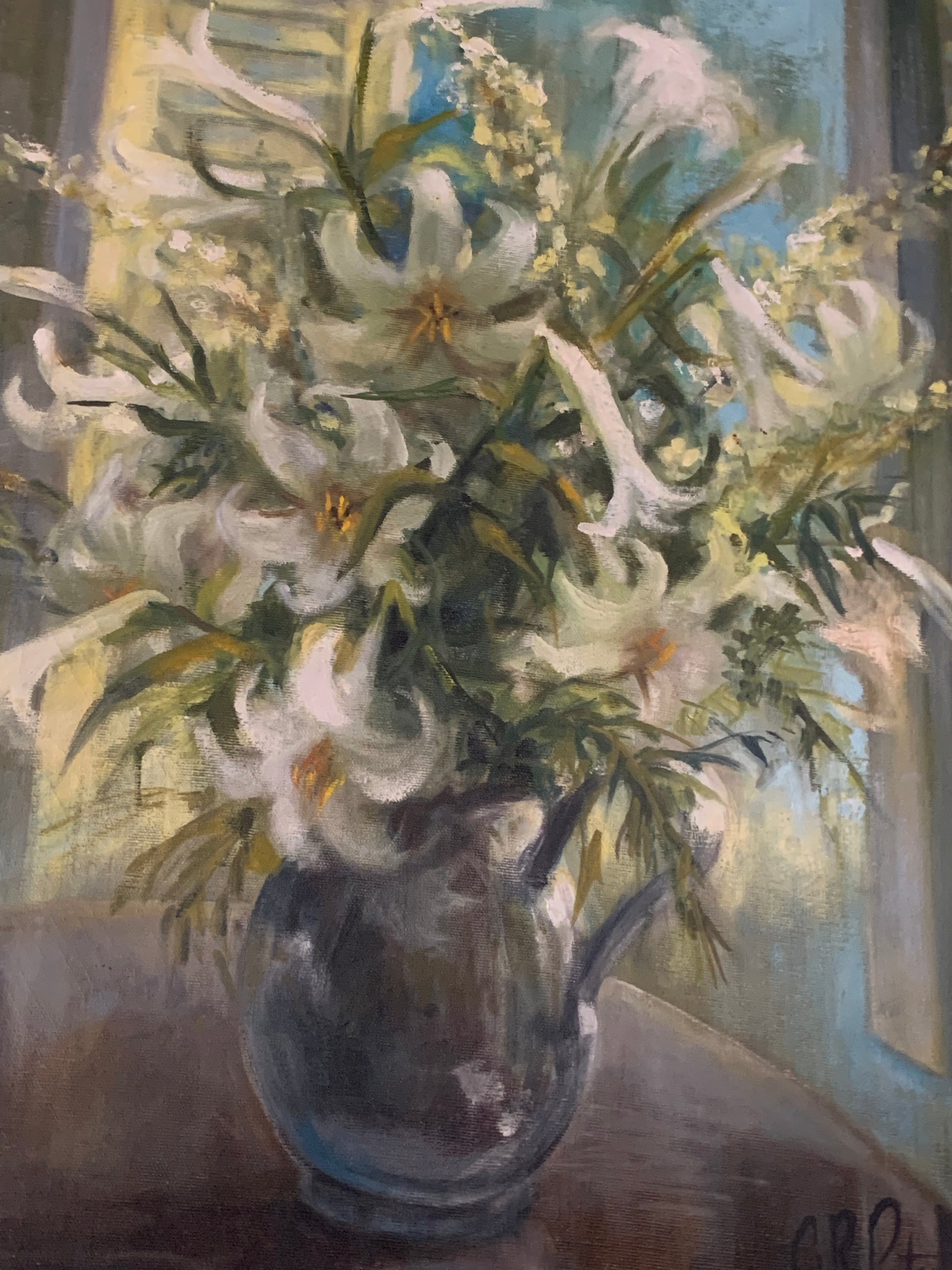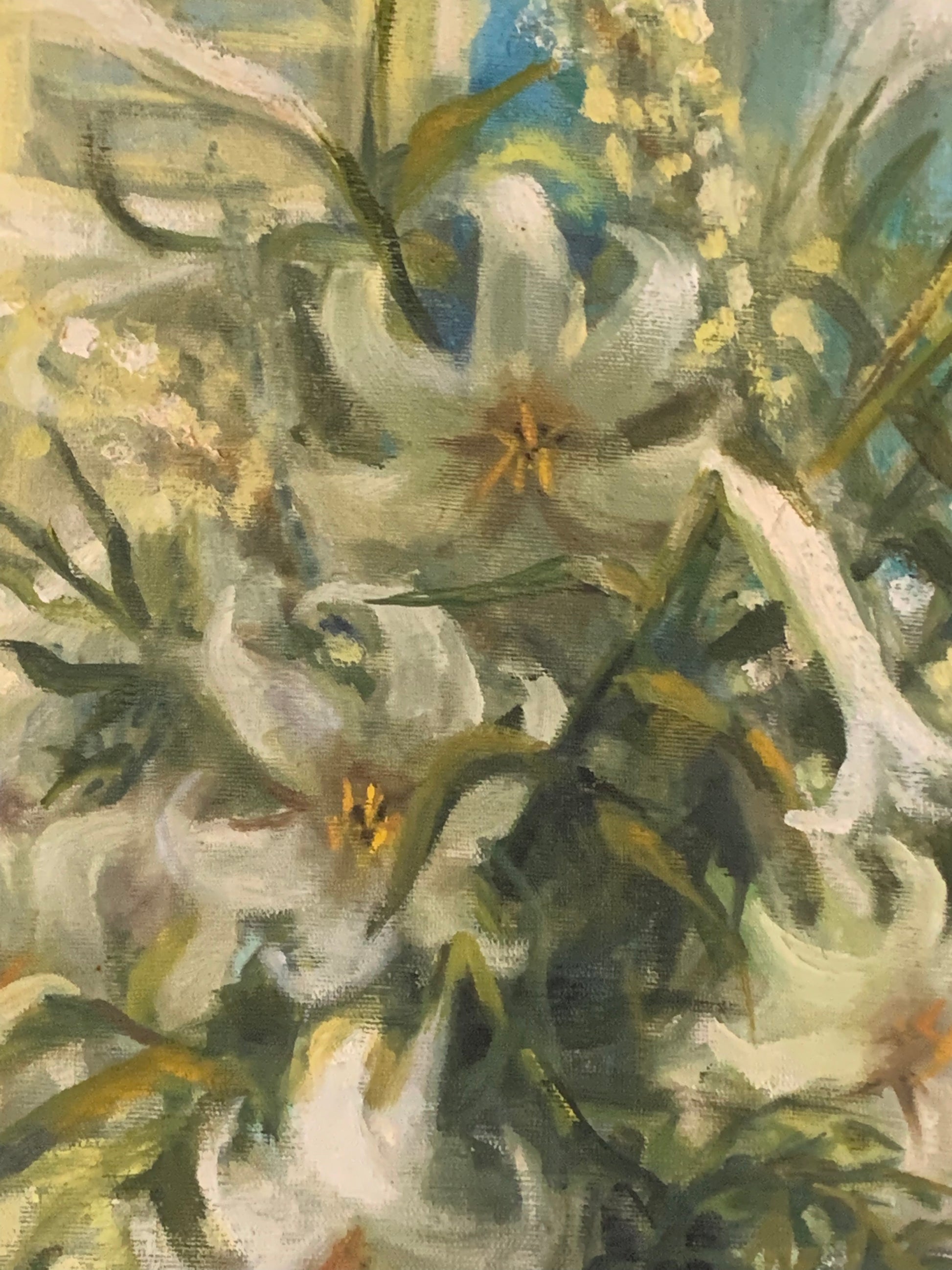 Obraz "Lilie w wazonie" olej na płótnie sygnowany