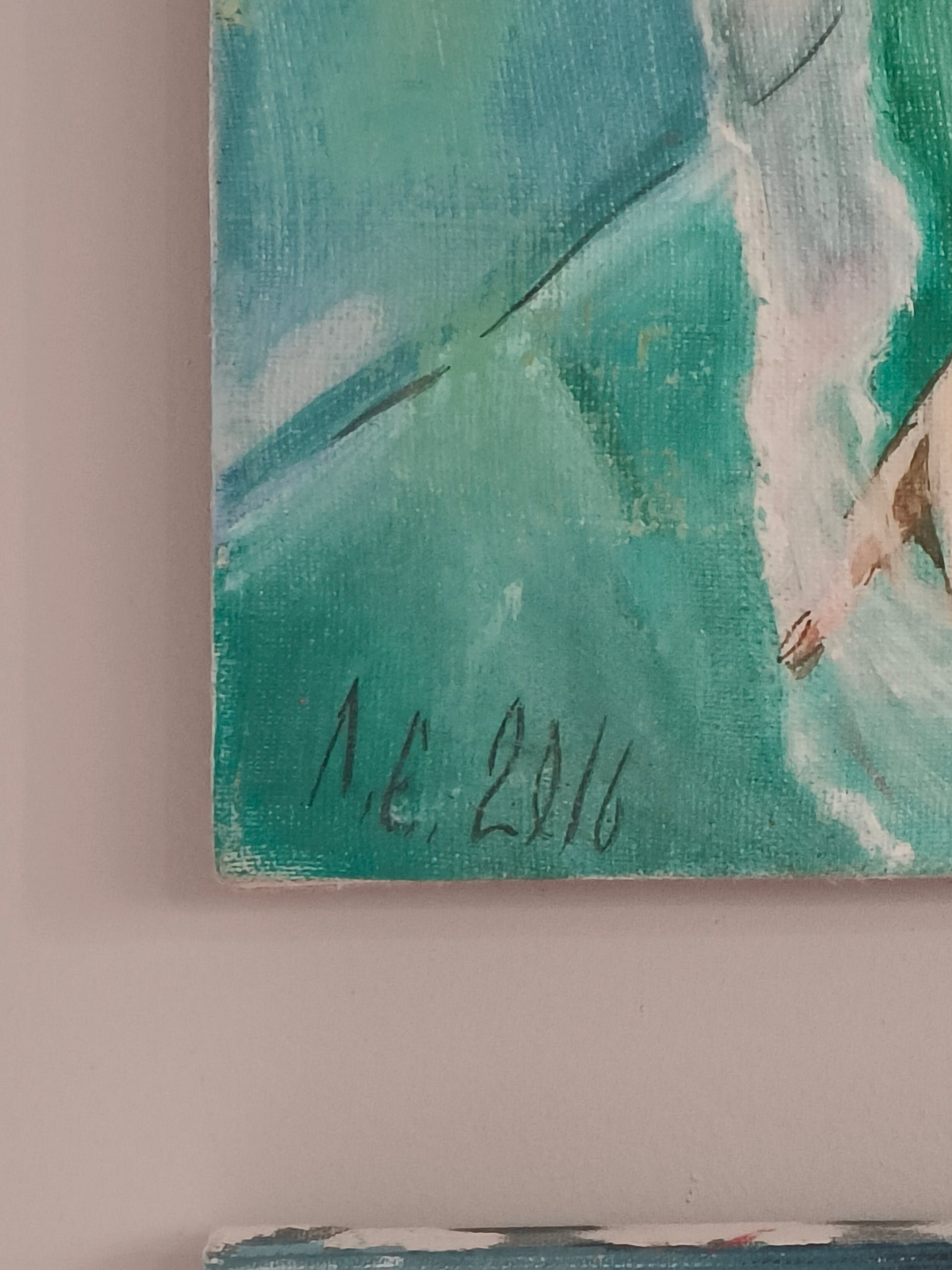 Obraz, olej na płótnie "Dama z kieliszkiem", sygnowany Elena Lesoklińska.