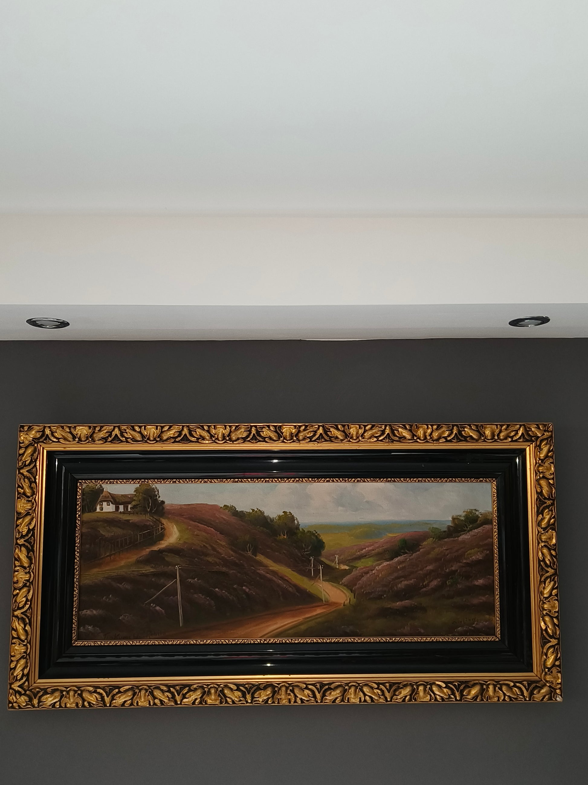Obraz, olej na płótnie, droga, sygnowany, ze złoconą, ozdobną, drewnianą ramą.