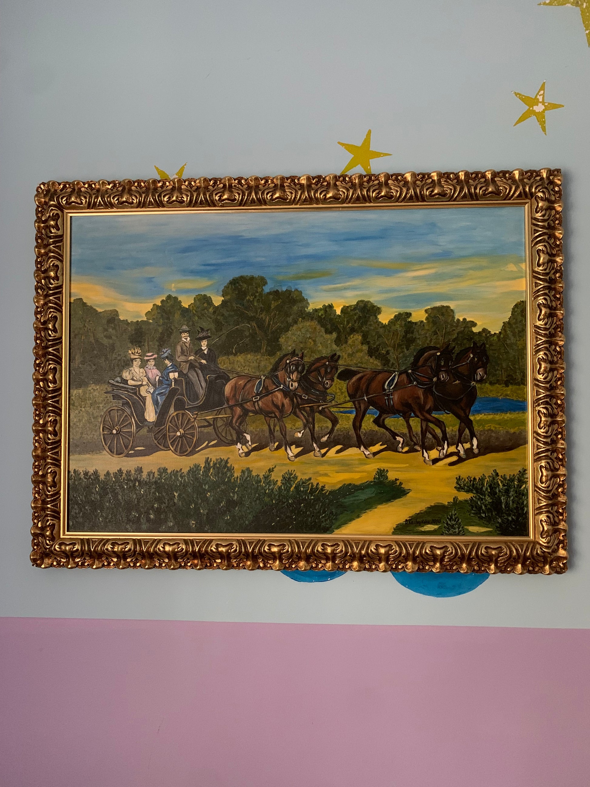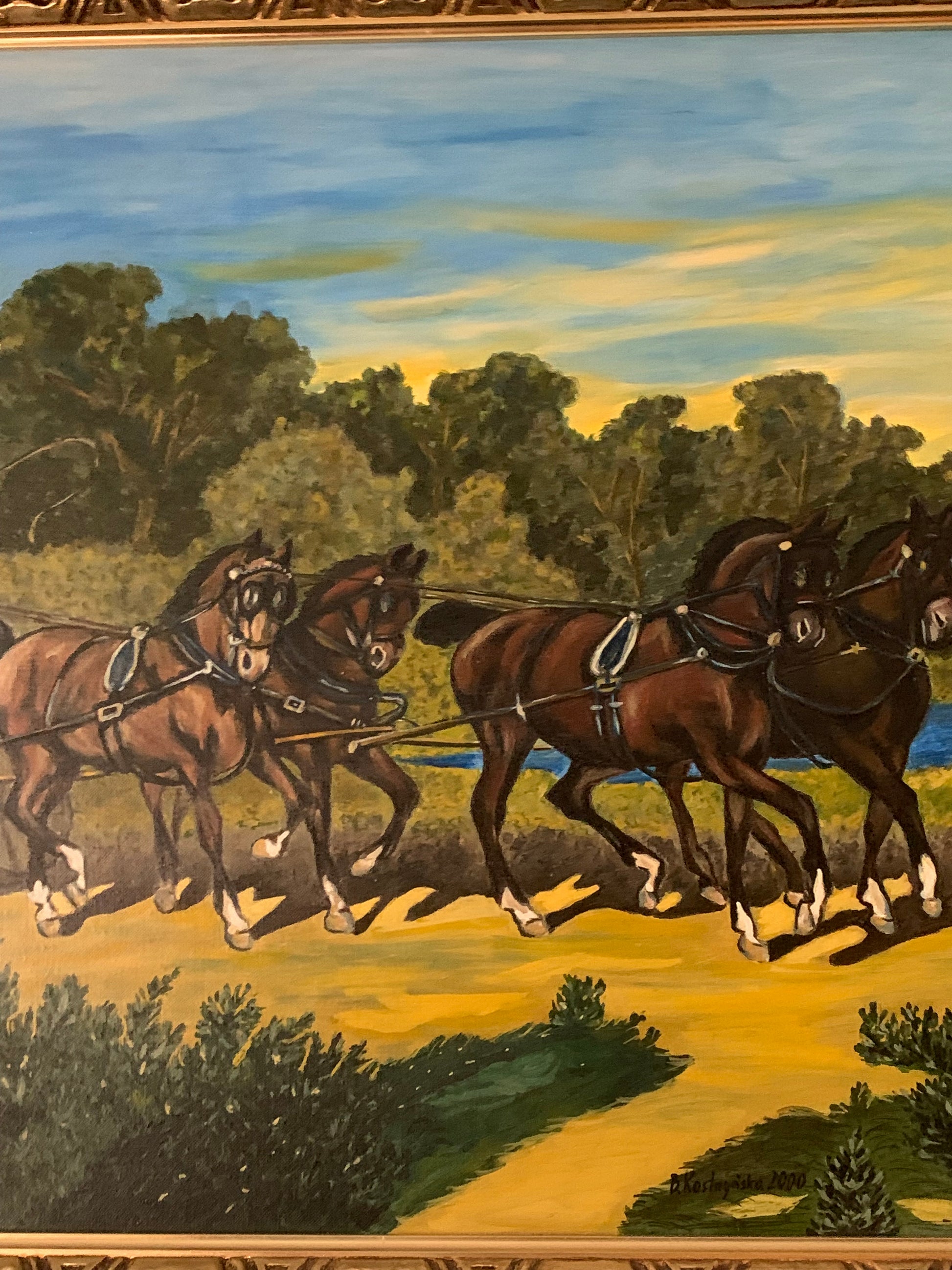 Obraz, olej na płótnie, w drewnianej, złoconej ramie, Kostrzyńska.