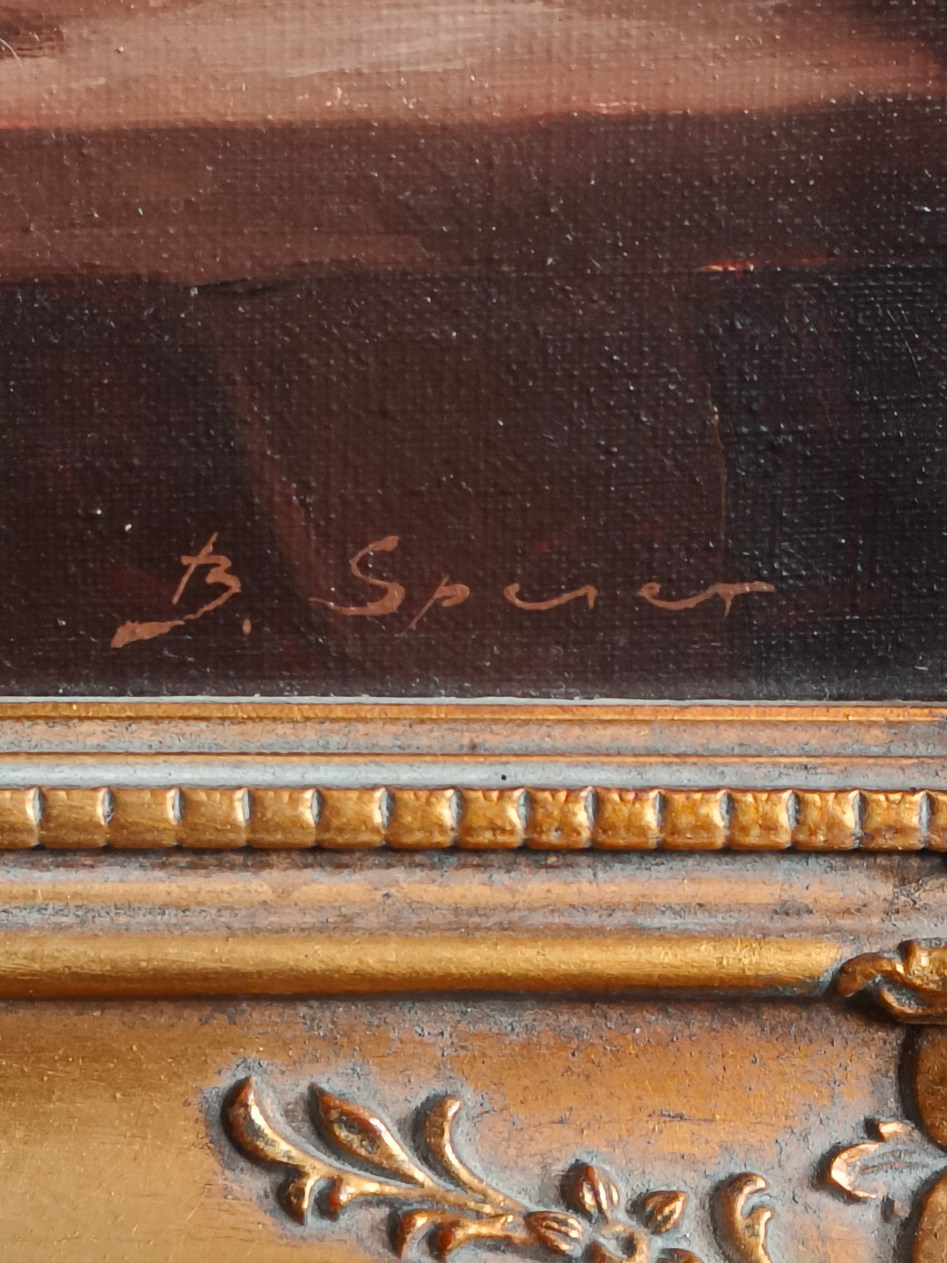 Obraz przedstawiający starca palącego fajkę, sygnowany, w pięknej, złotej ramie.