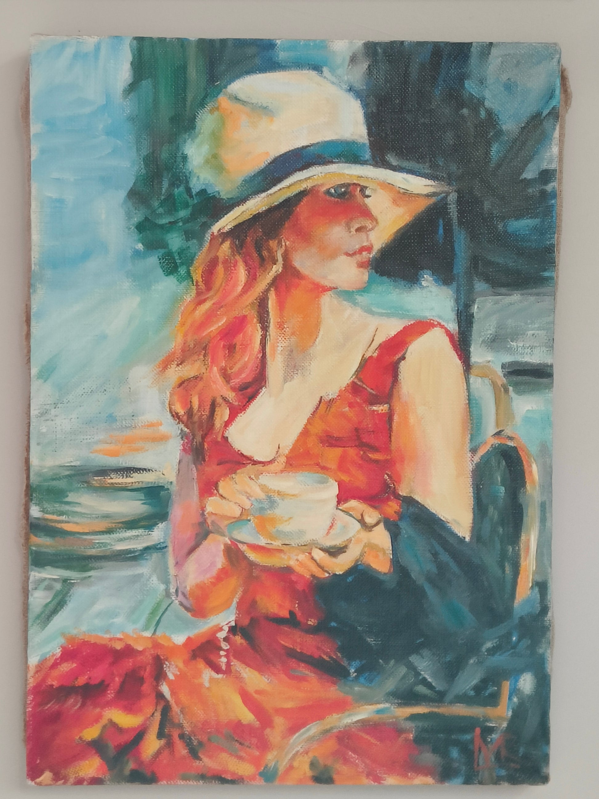 Obraz, olej na płótnie "W oczekiwaniu na spotkanie" L. Wrońska