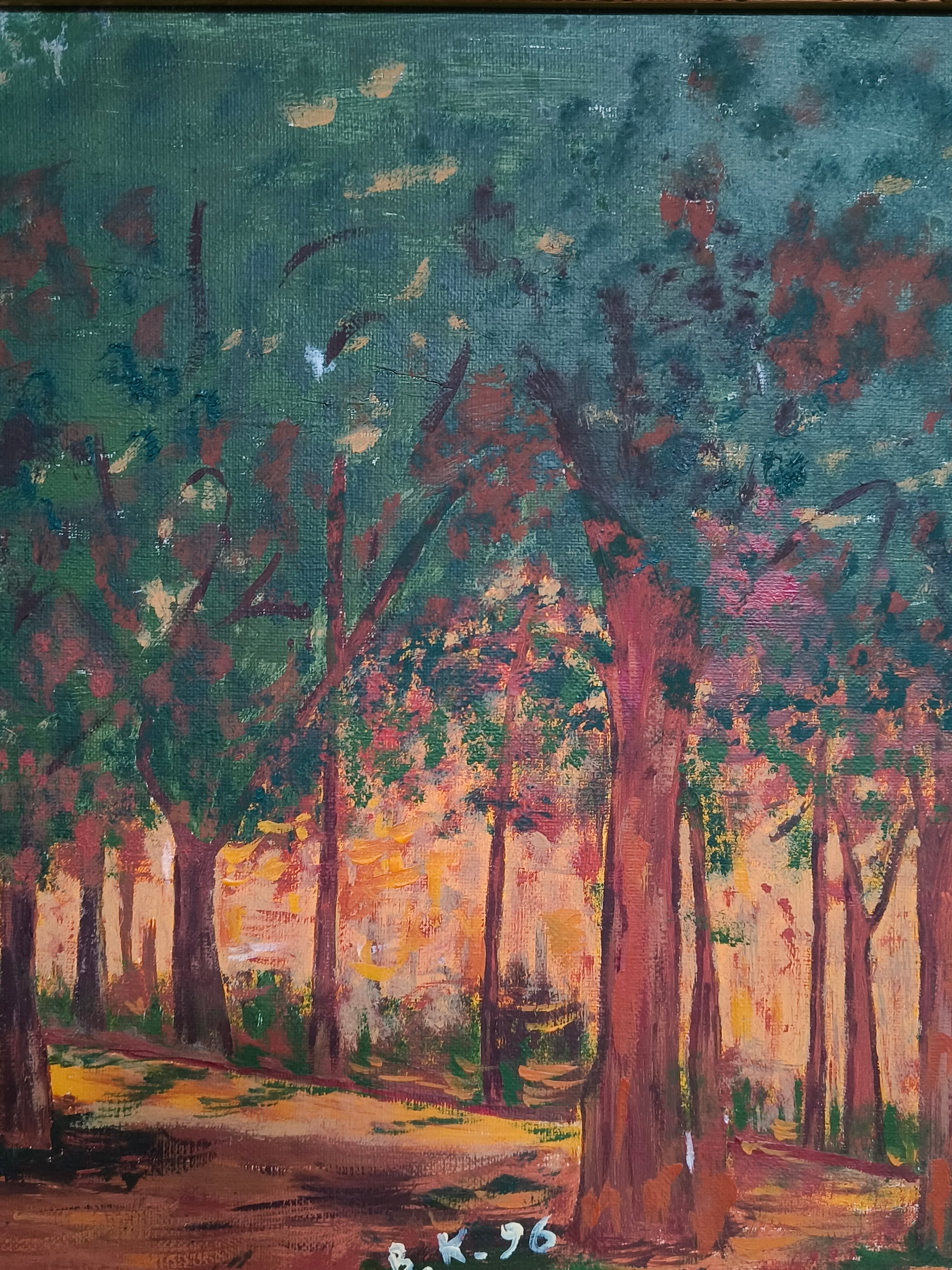 Obraz pejzaż, olej na płótnie B. Kostrzyńska, 1996