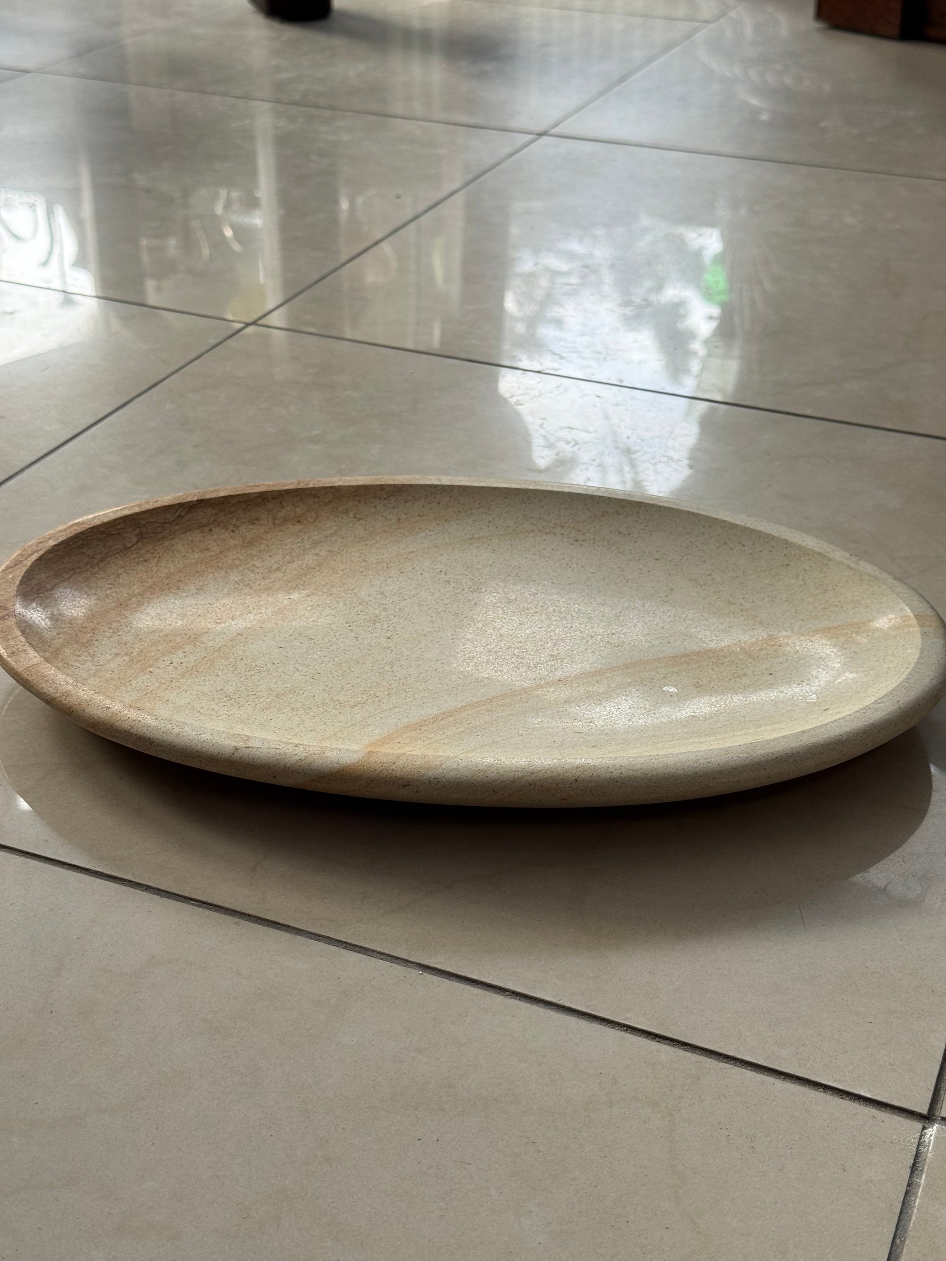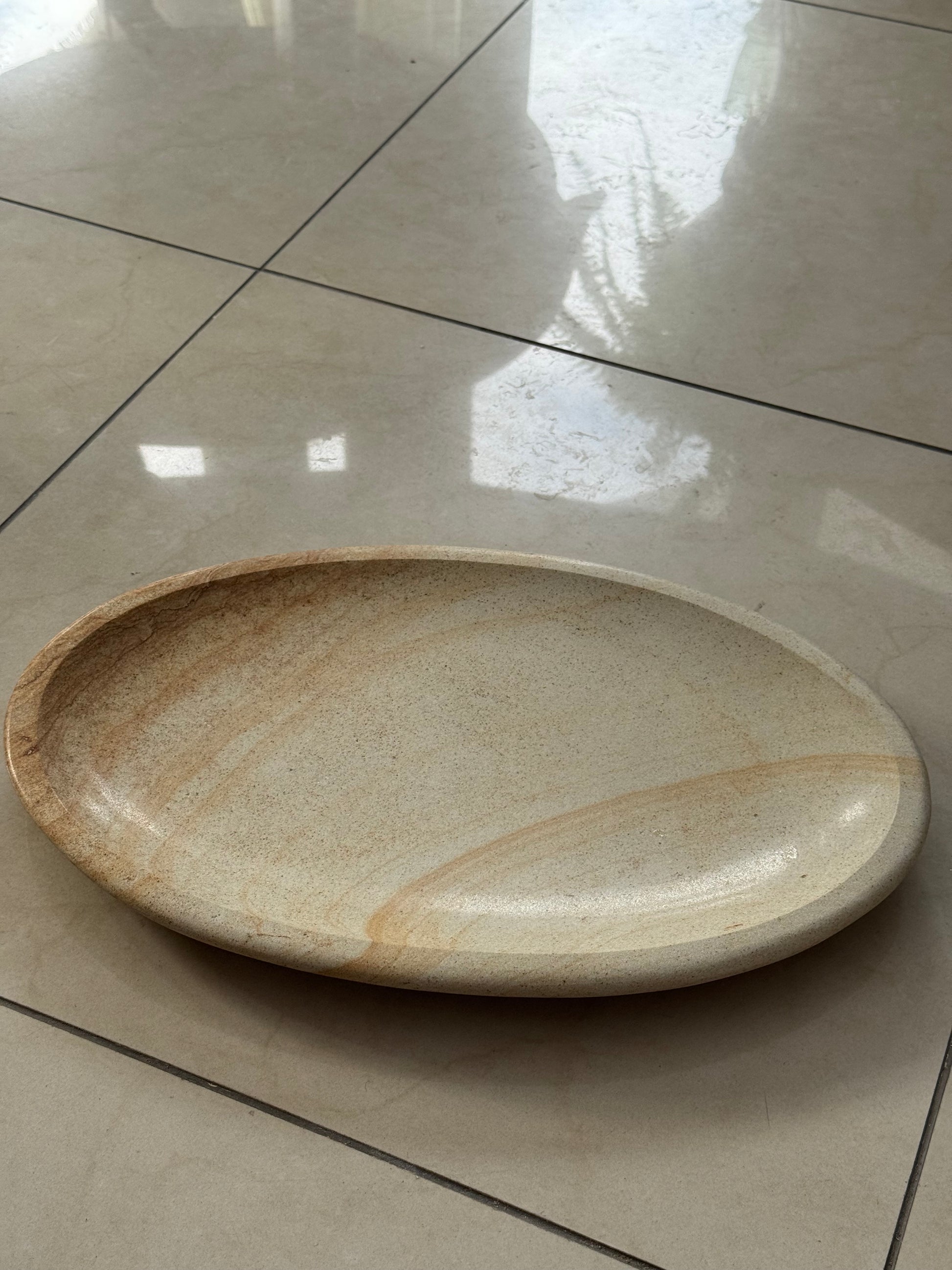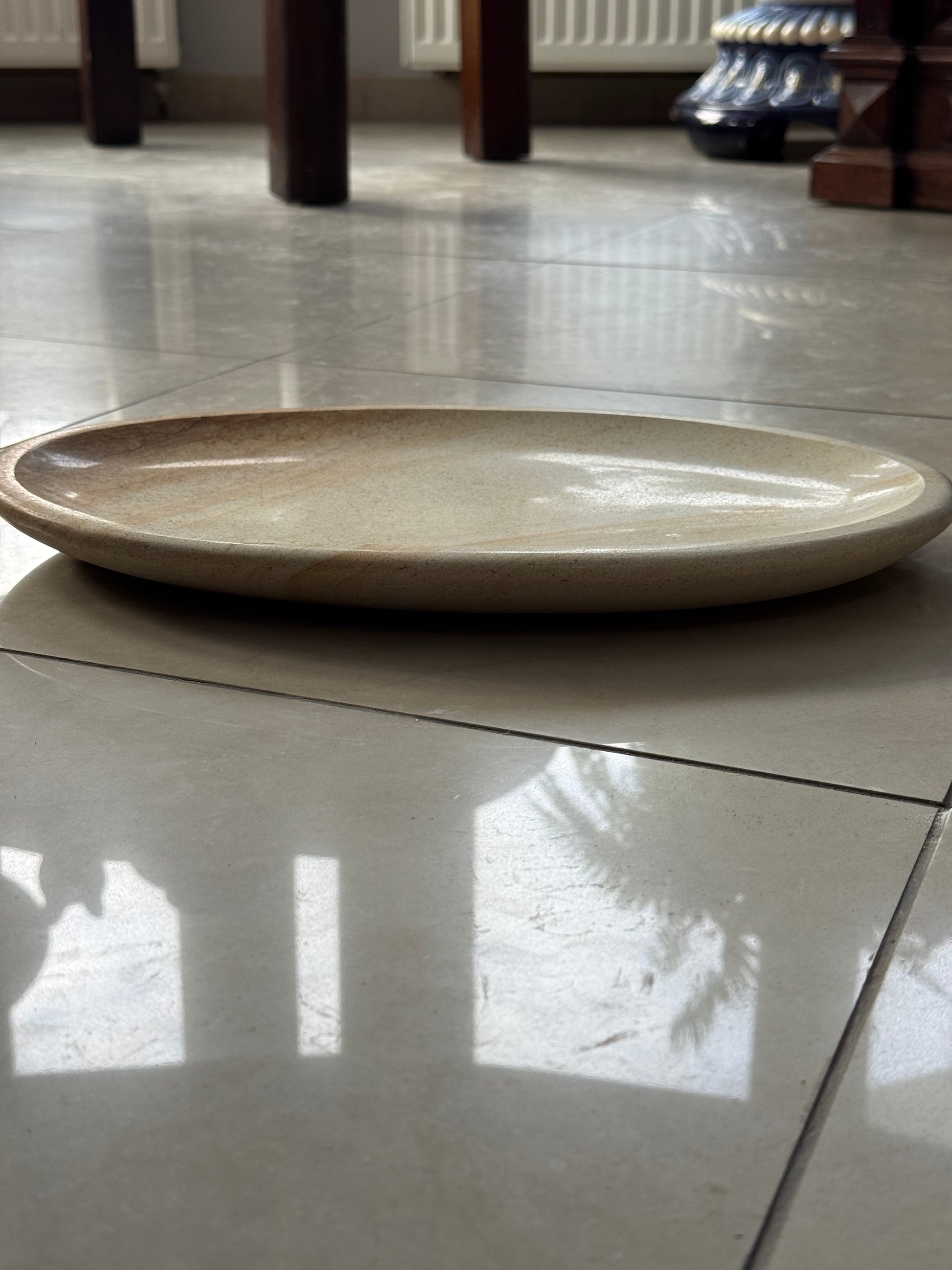 Patera, talerz dekoracyjny z piaskowca, ręcznie wykonana i wyszlifowana, pokryta szkliwem spożywczym.