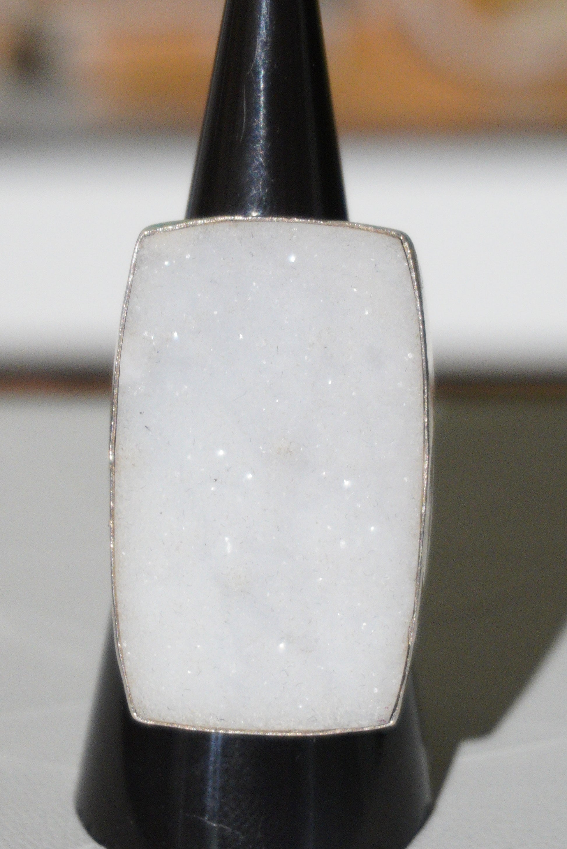 Pierścionek agat druzy, srebro pr. 925, rozmiar 18-19