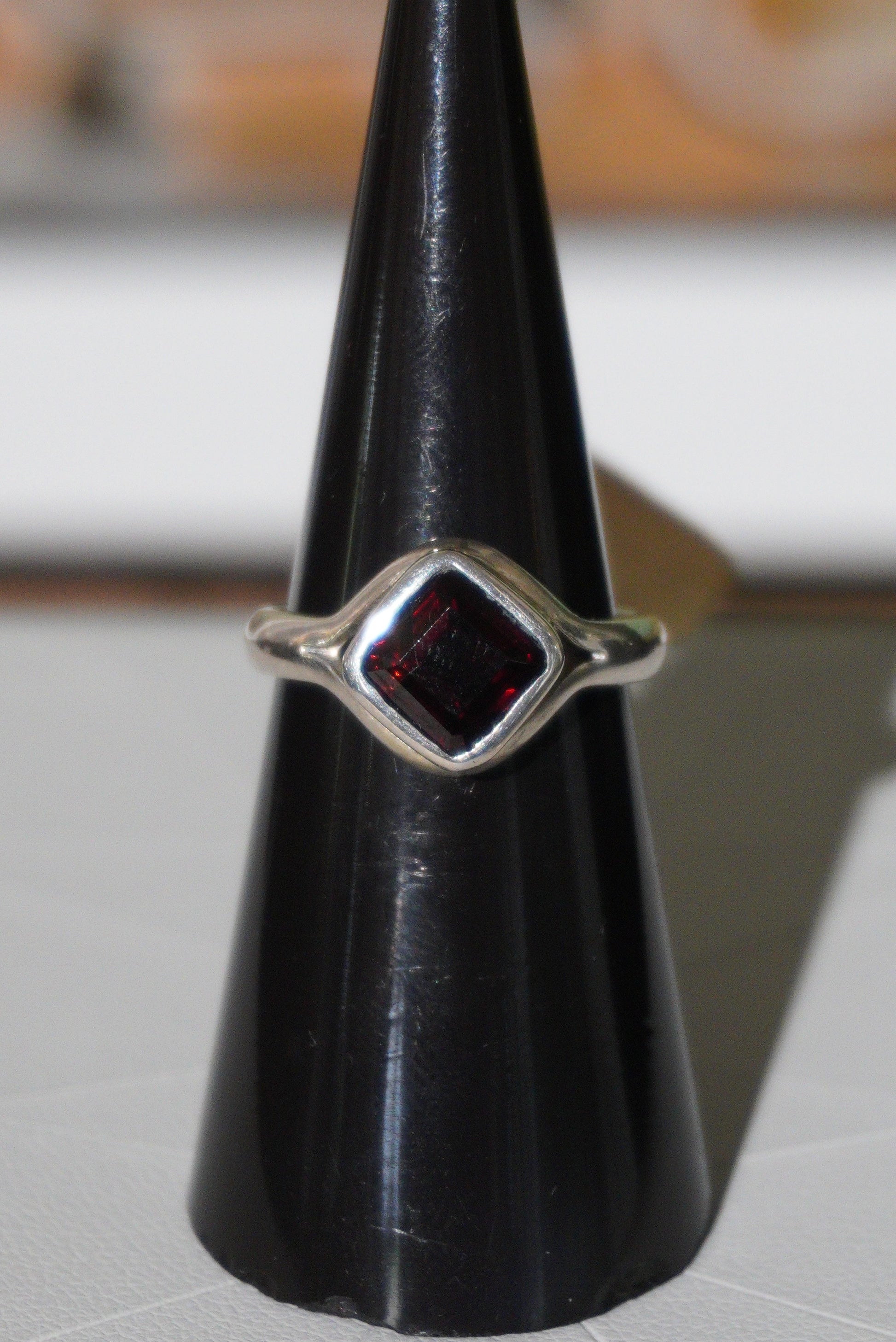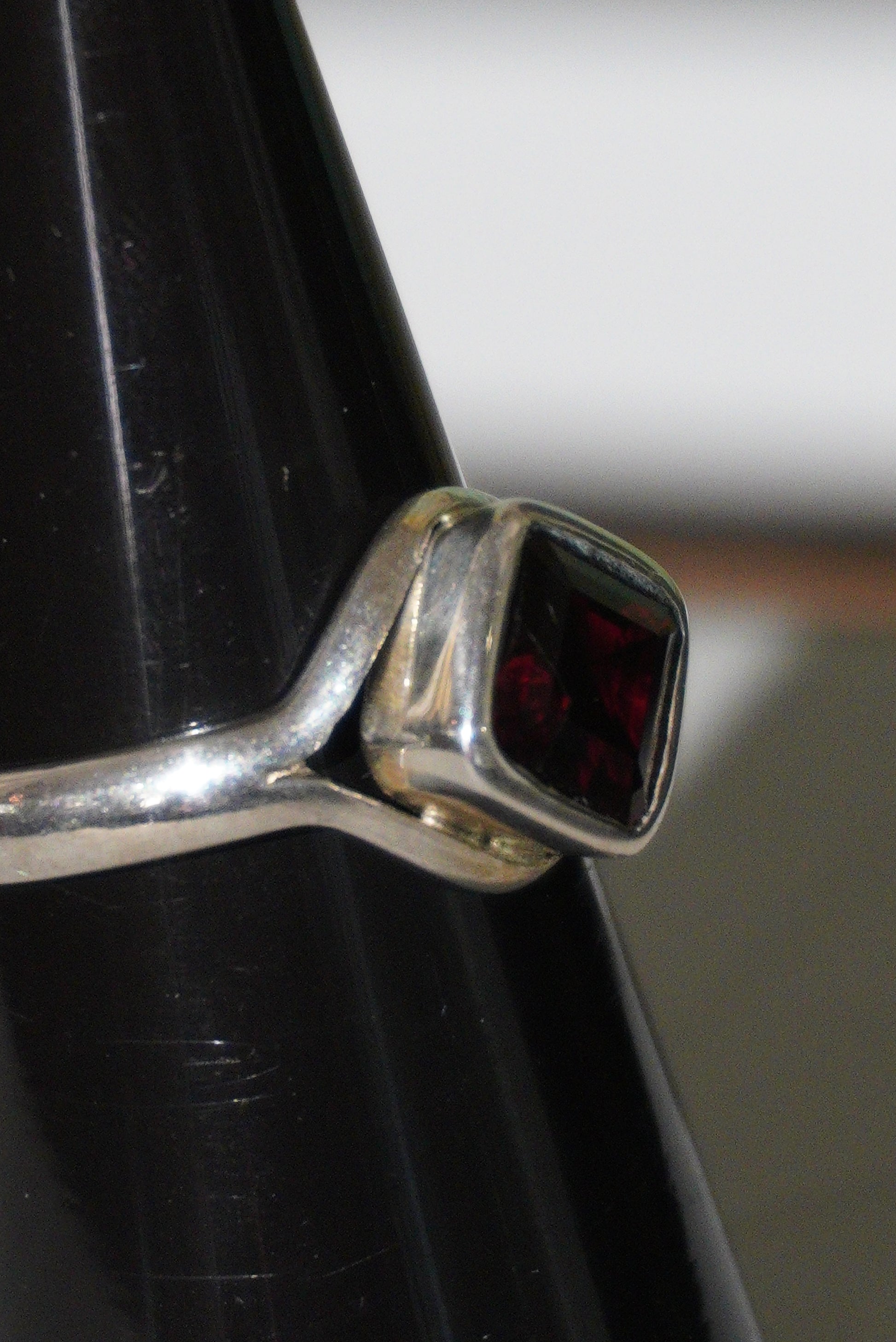 Pierścionek granat, srebro pr. 925, rozmiar 14-15