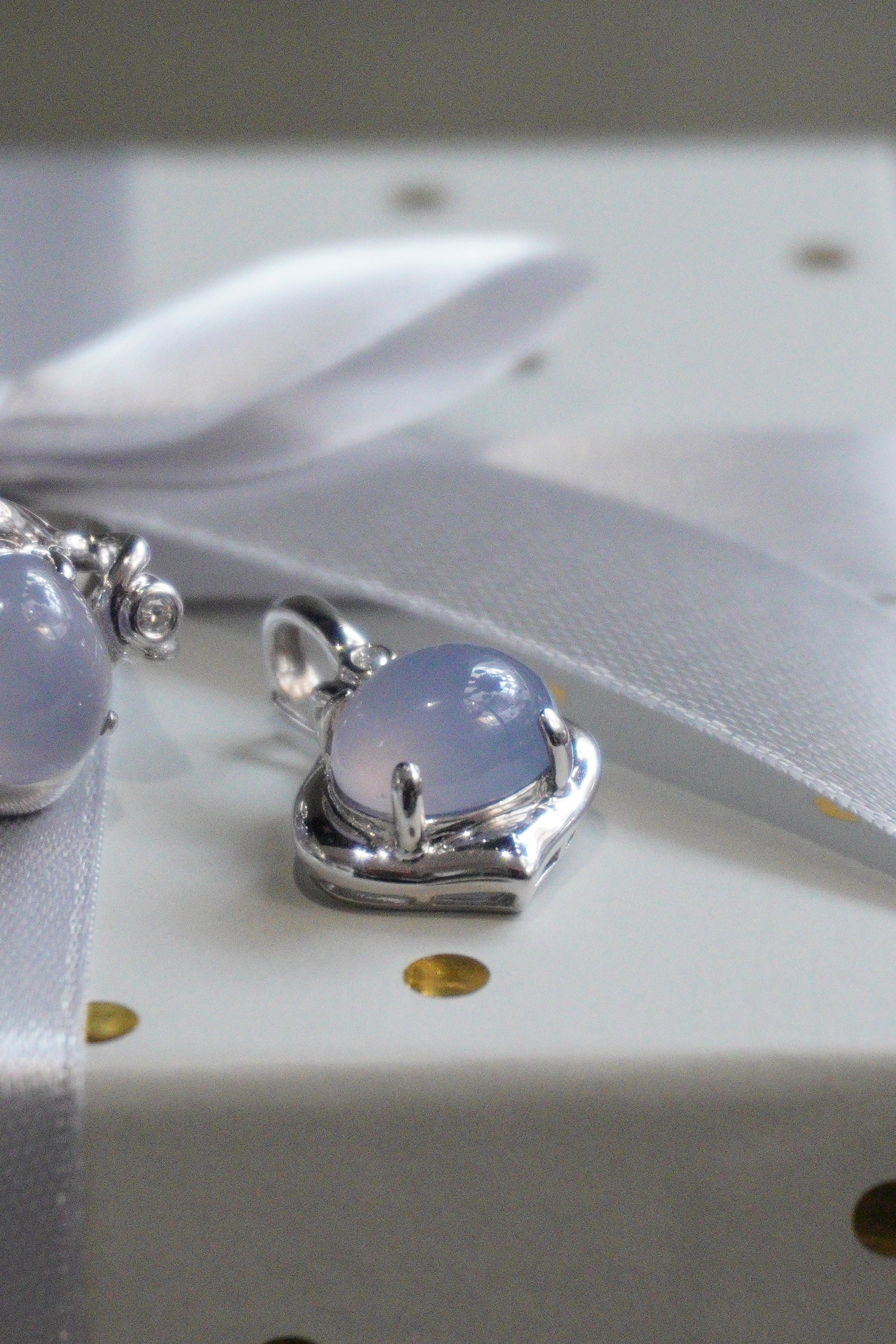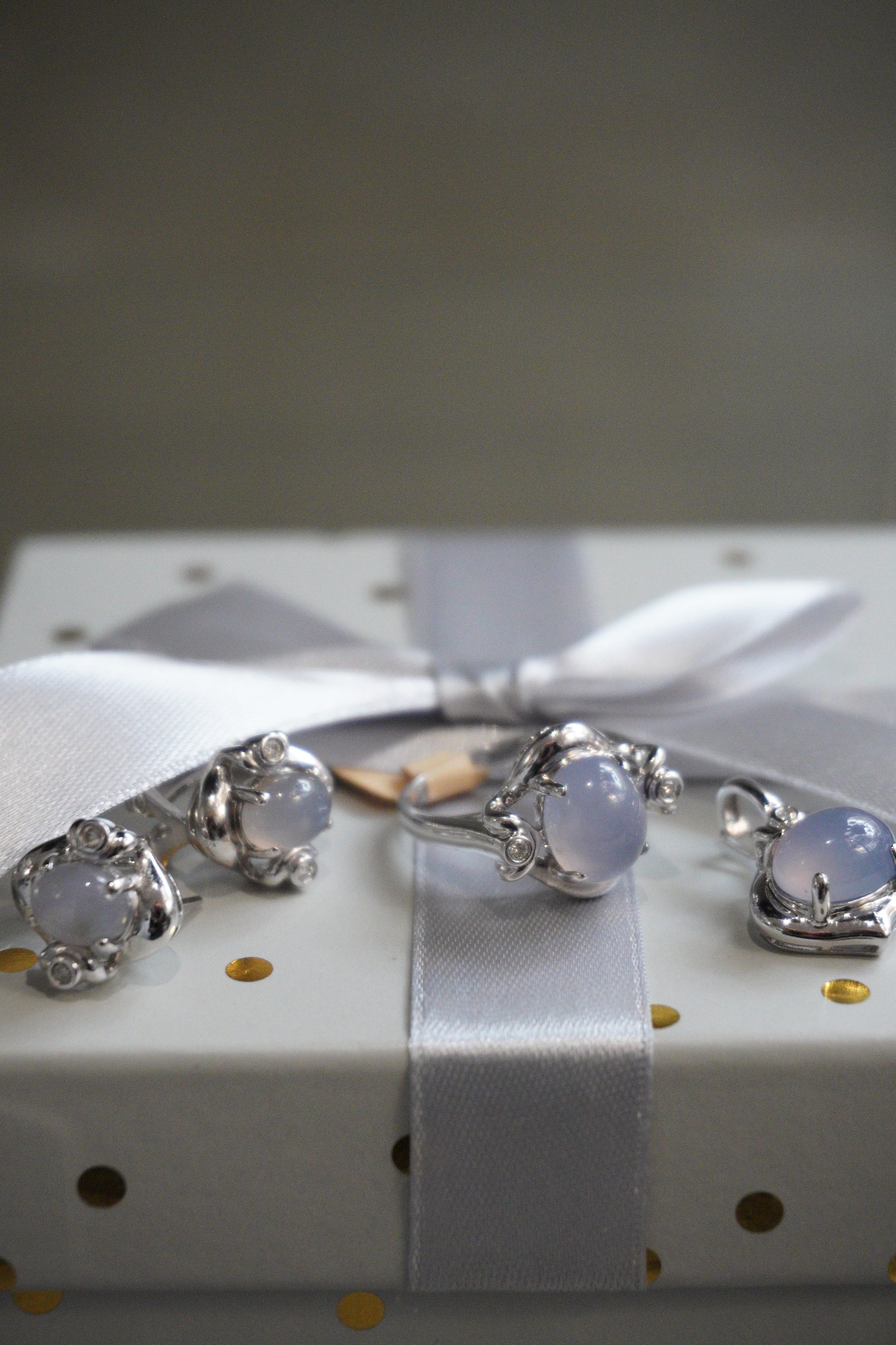 Pierścionek, kolczyki, zawieszka - komplet białe złoto pr. 585, kamień księżycowy