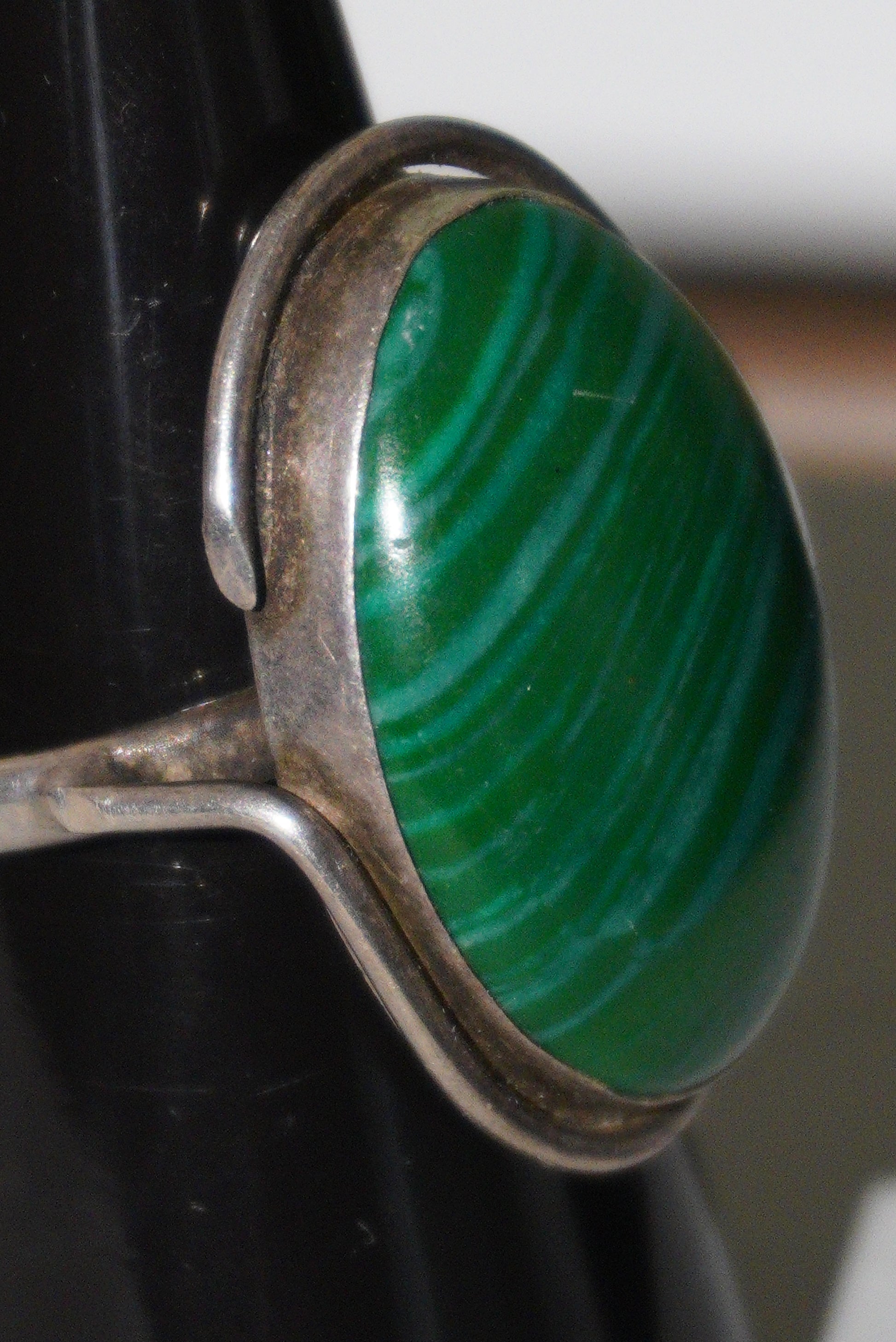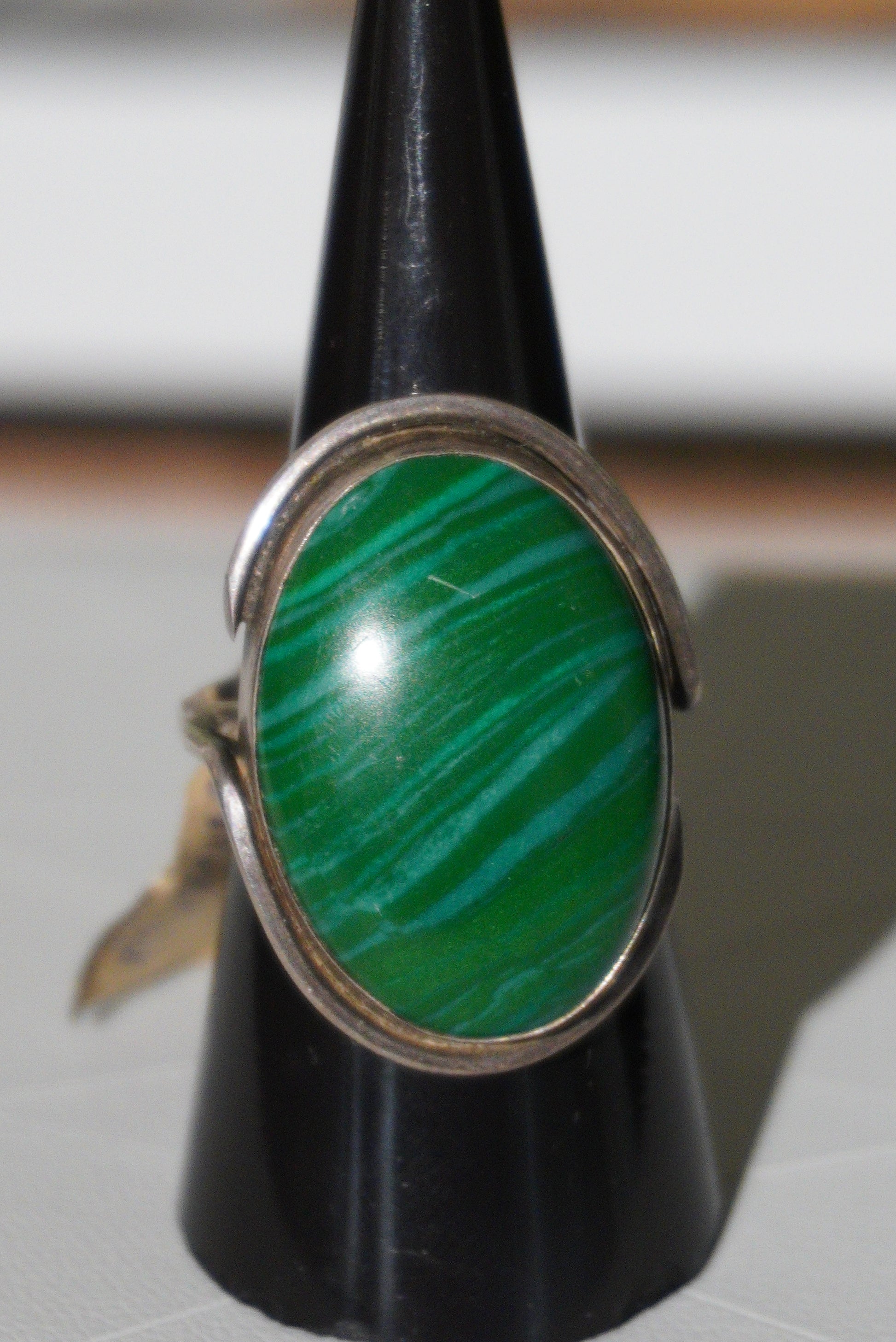 Pierścionek malachit, srebro pr. 925, rozmiar 18-19