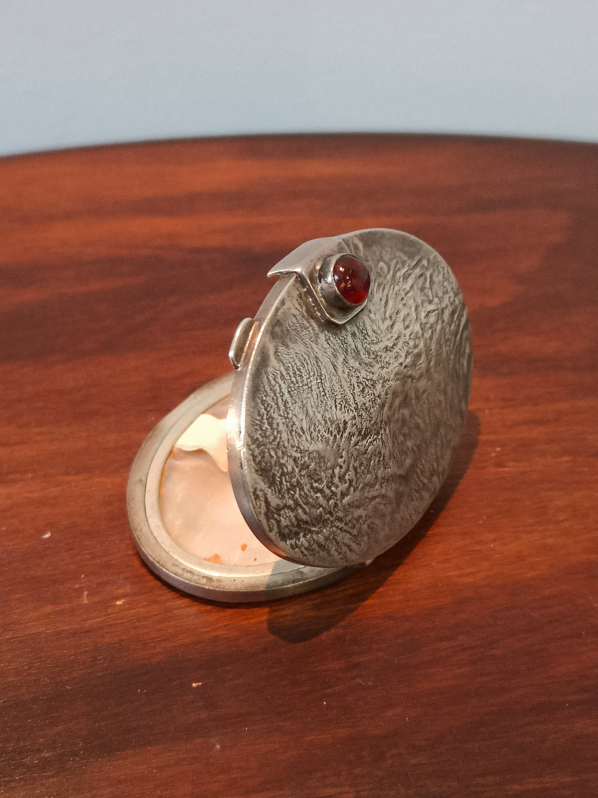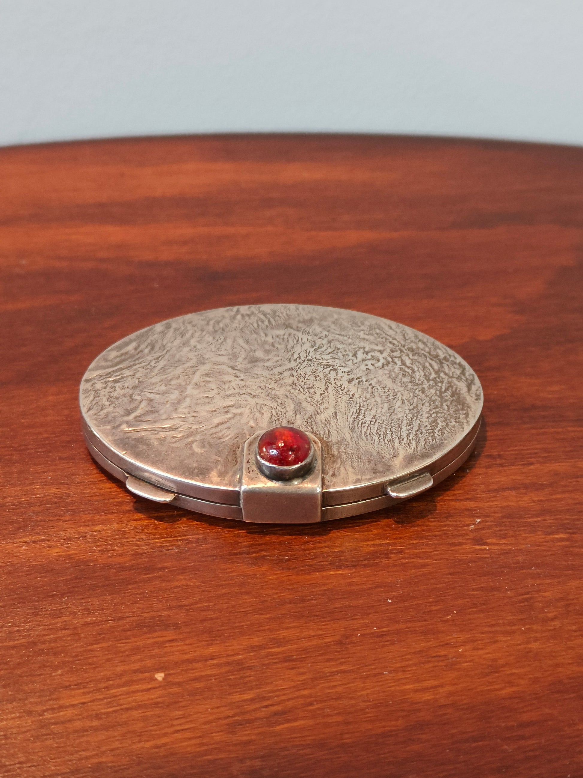 Puderniczka srebrna z bursztynem ORNO, Warszawa lata 1963-1986.