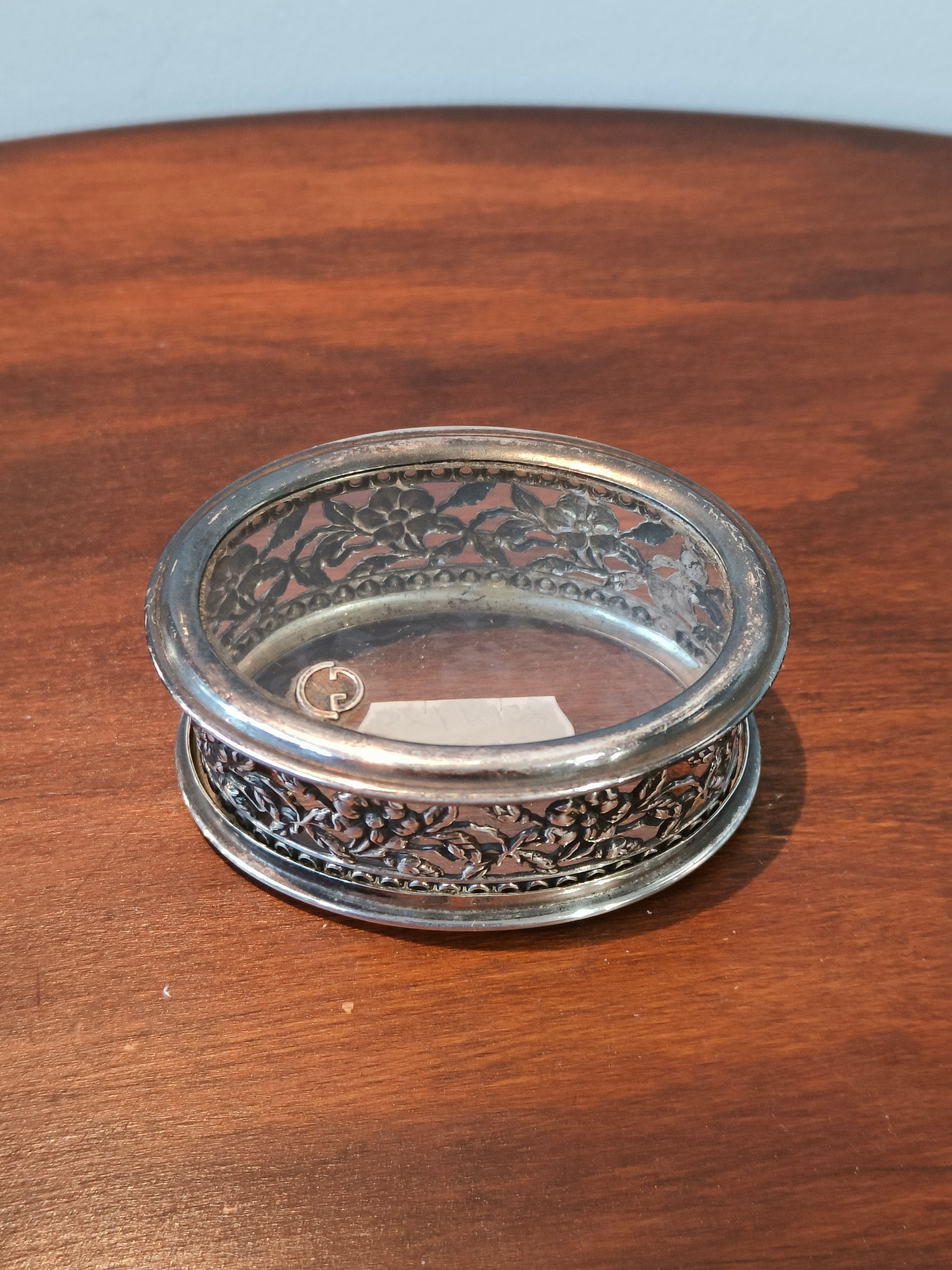 Piękne, srebrne puzderko, zdobione motywem kwiatowym.