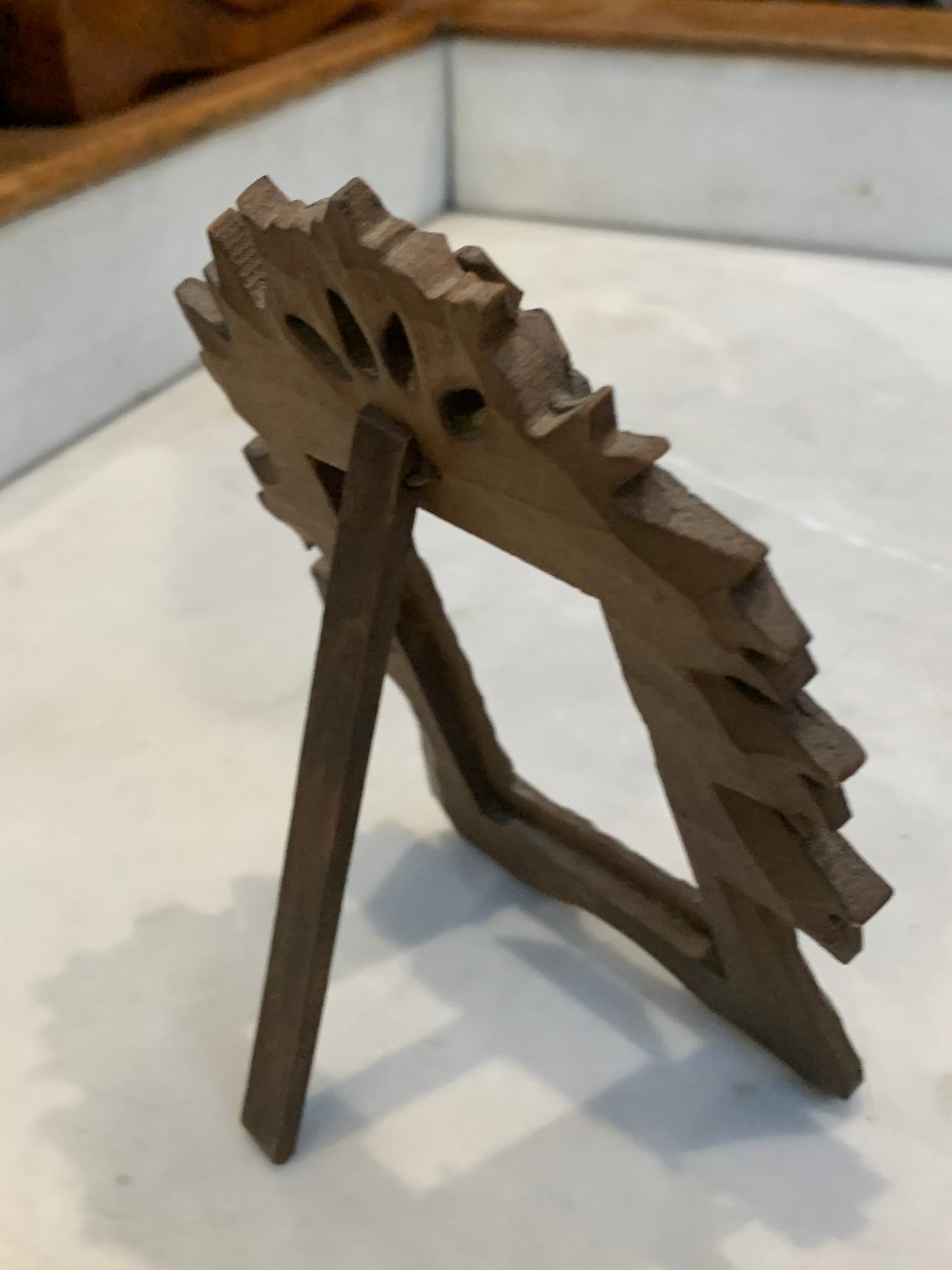 Ramka mała, drewniana, rzeźbiona, na stojaku