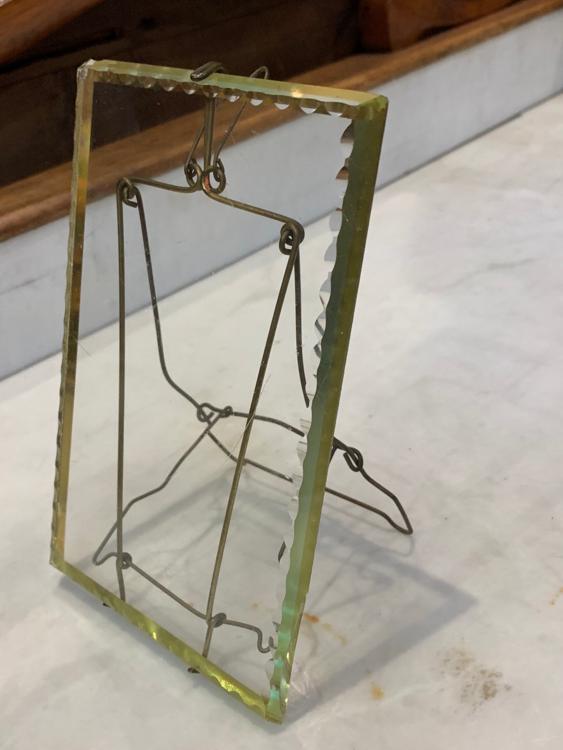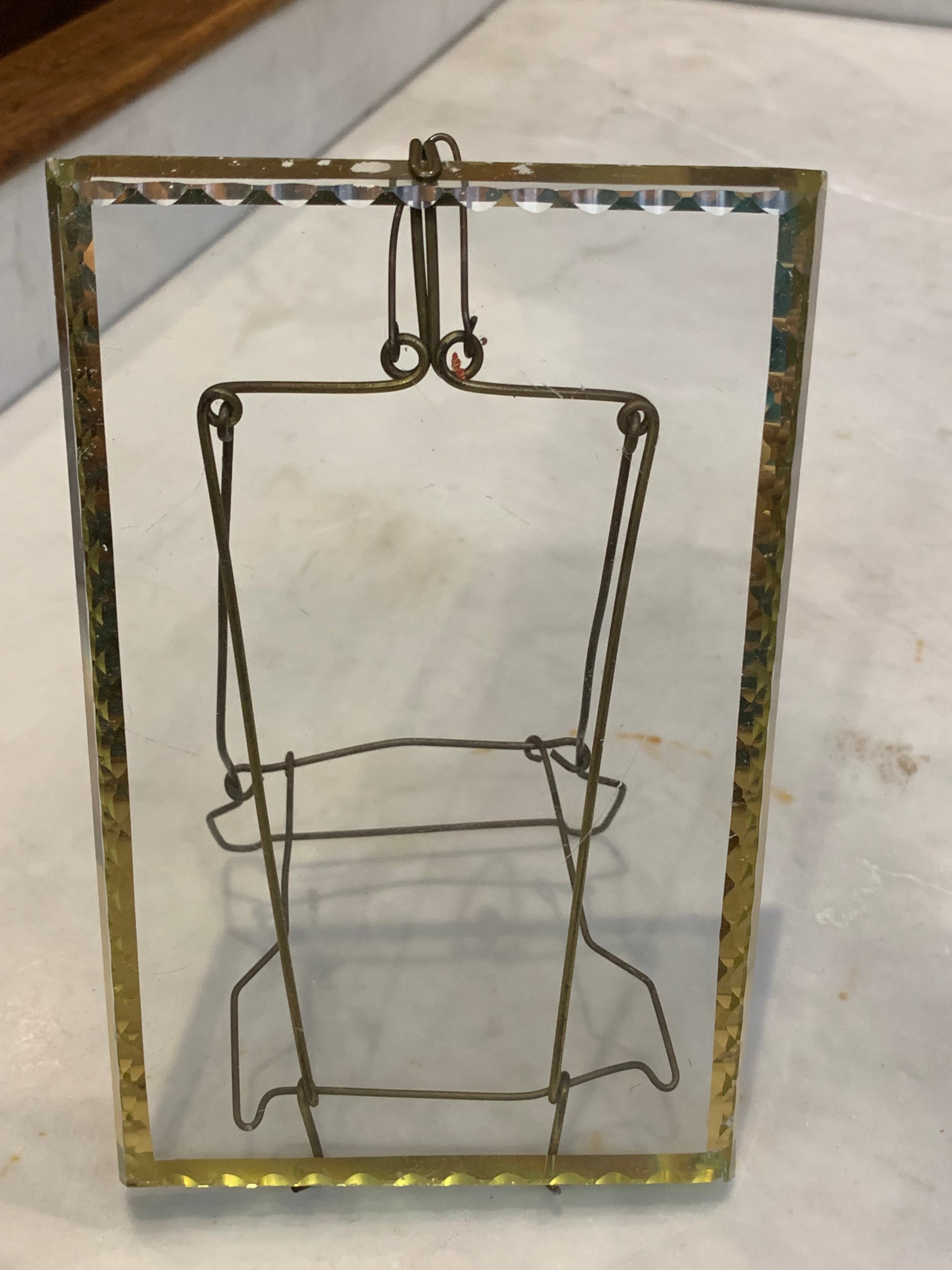 Ramka secesja, szybka fazowana, stojak druciany, lata 20-te XX wieku
