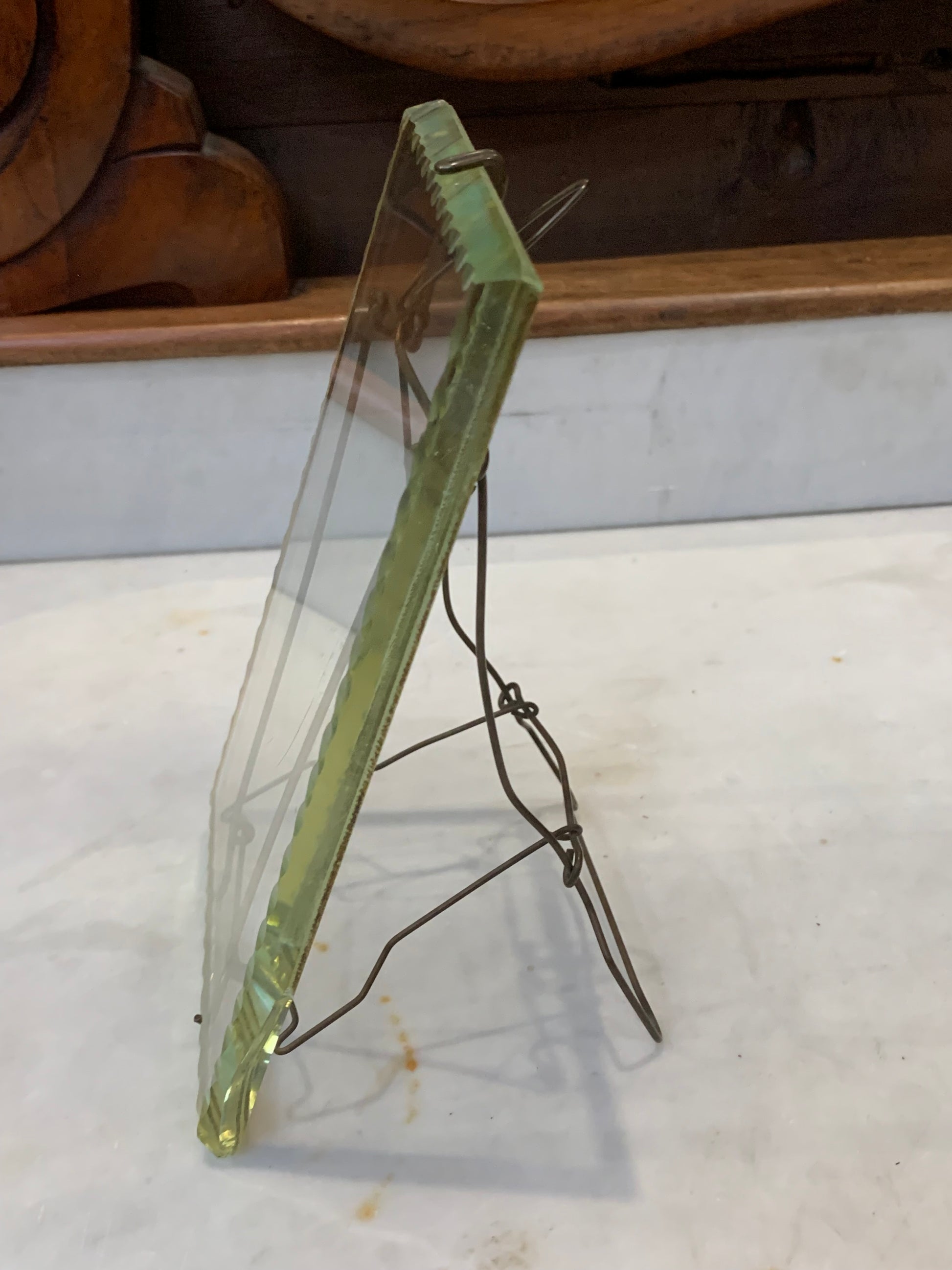 Ramka secesja, szybka fazowana, stojak druciany, metalowy z lat 20-tych XX wieku.