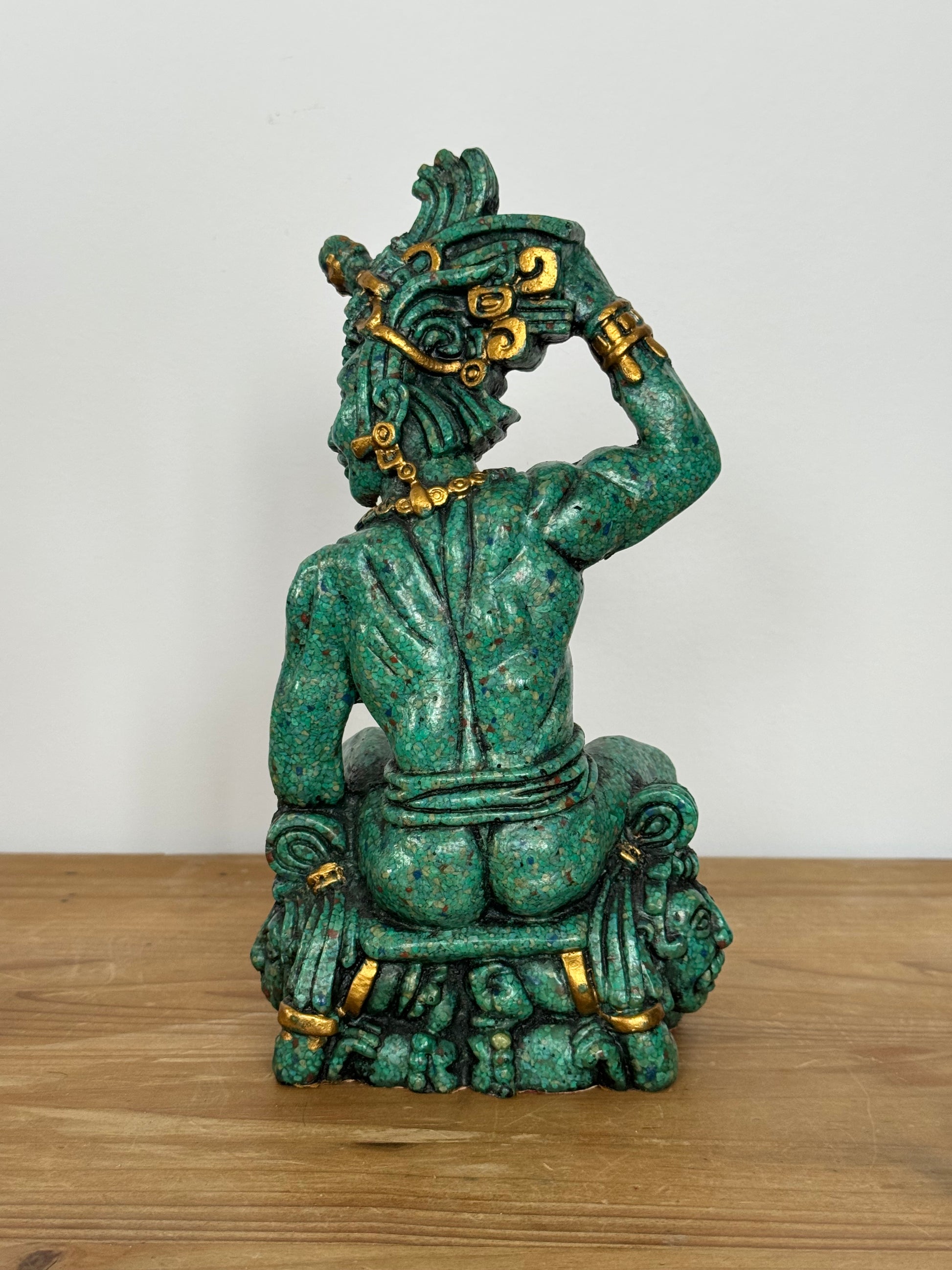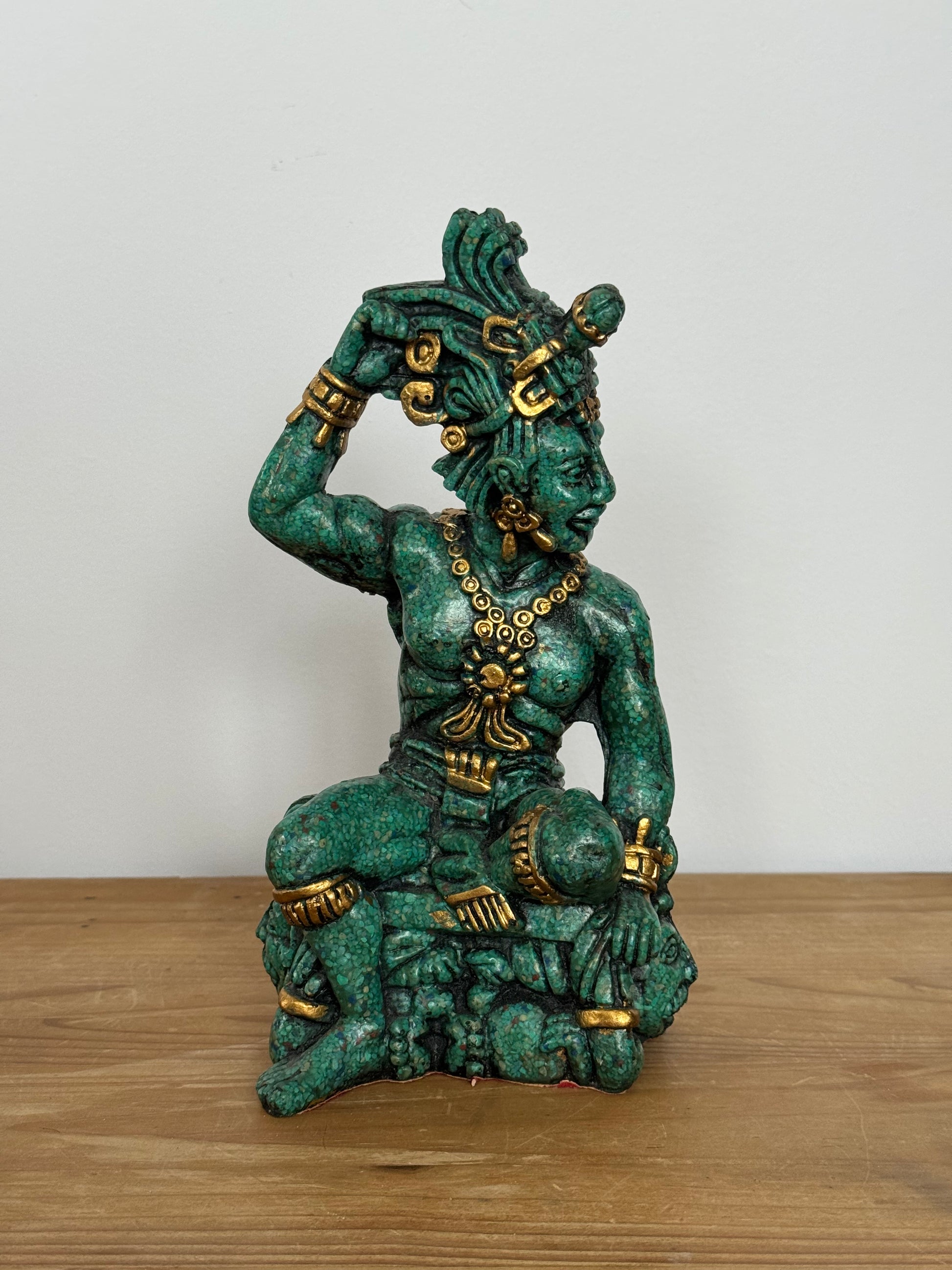 Piękna rzeźba azteckiego boga w pięknym szmaragdowo-seledynowym kolorze.