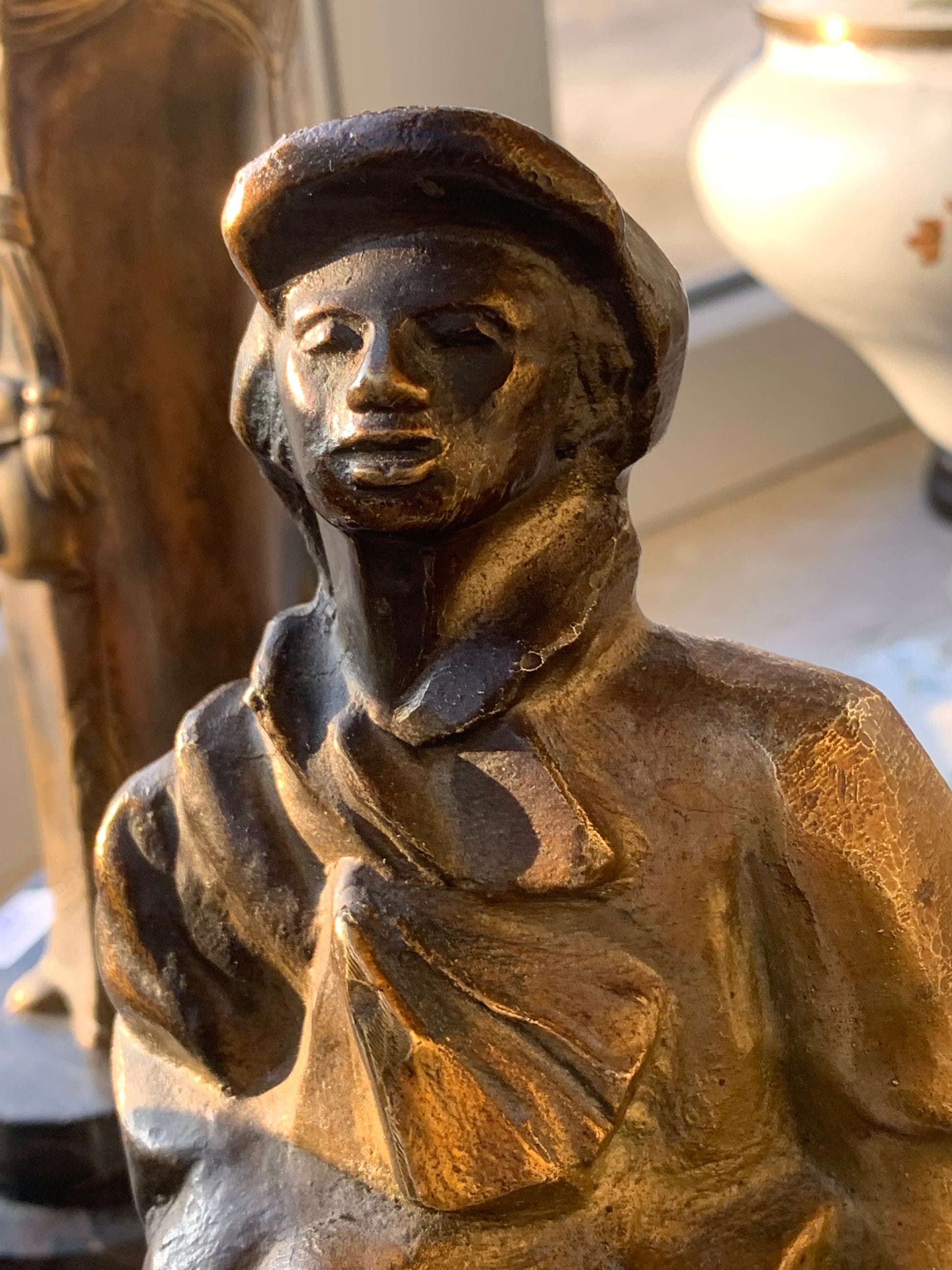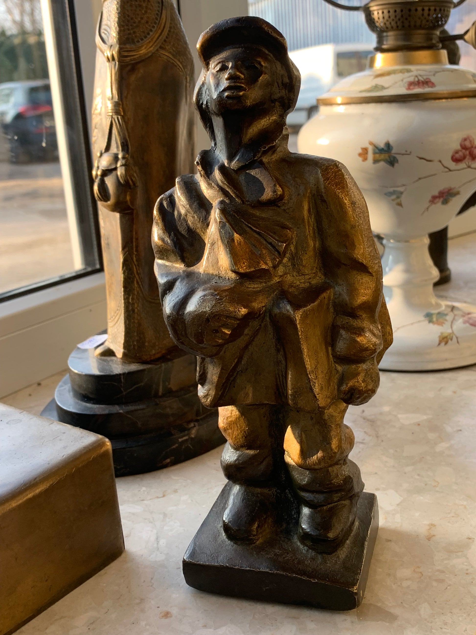 Rzeźba brąz Gazeciarz, odlew patynowany, przedwojenny.