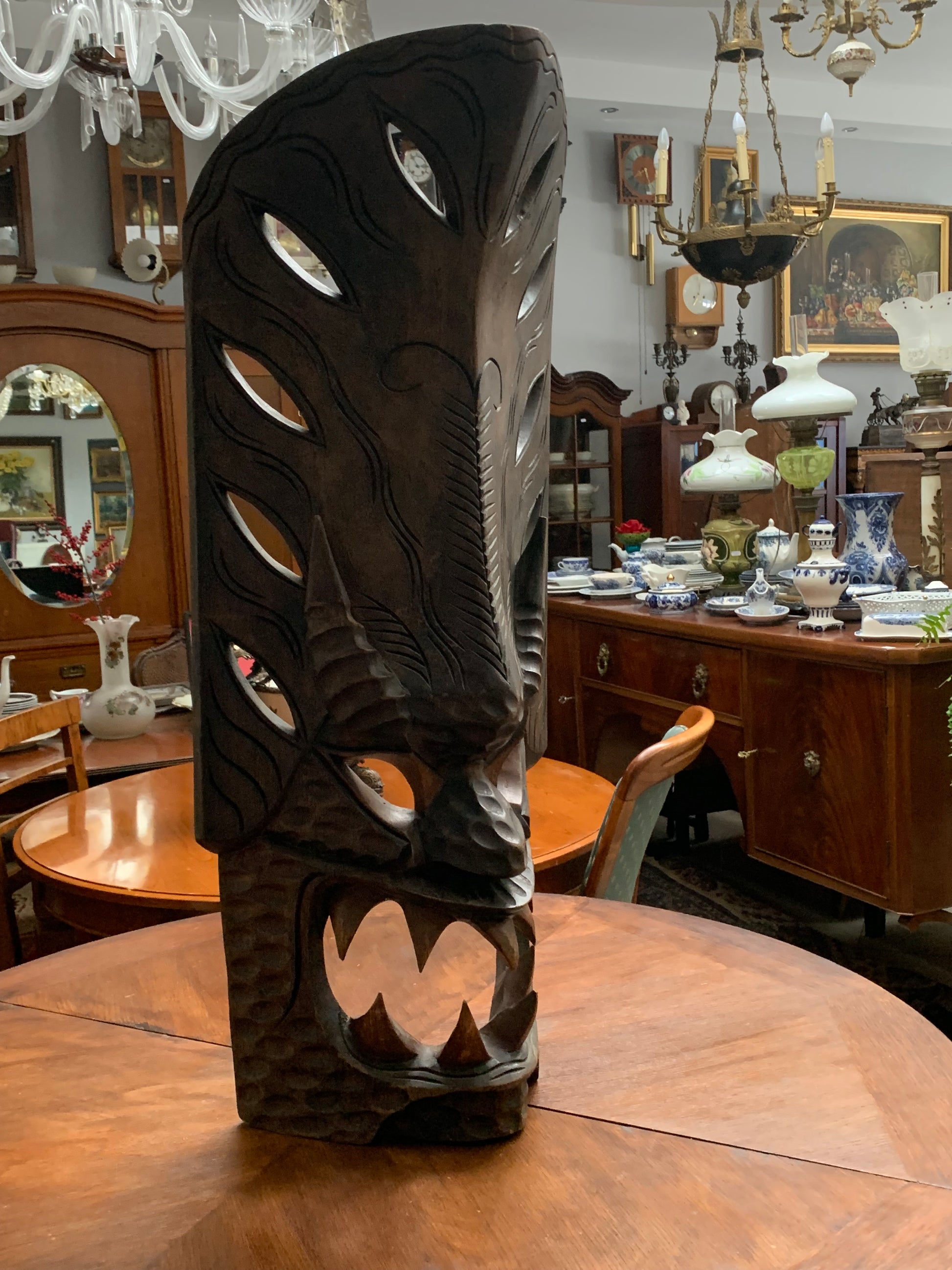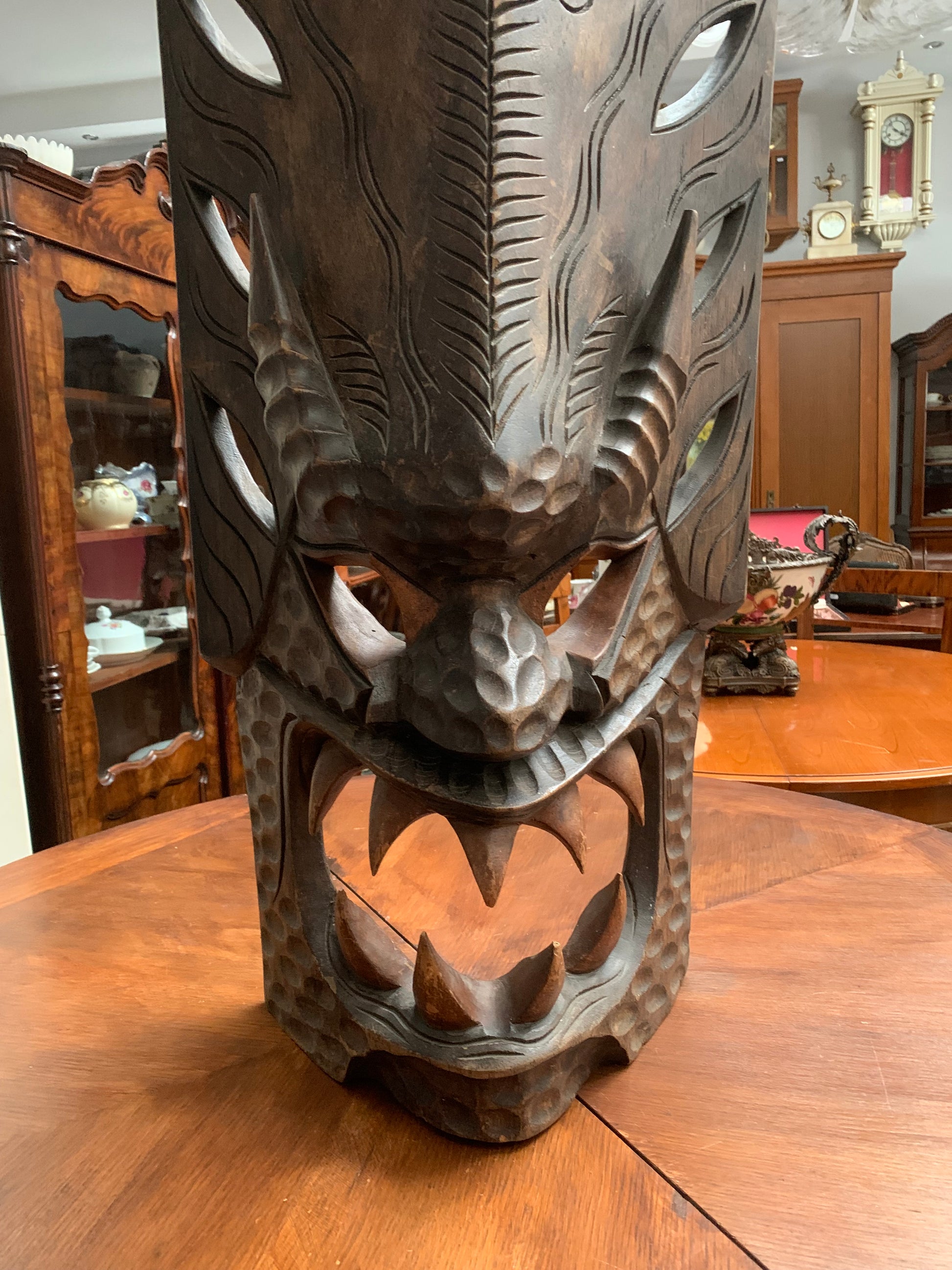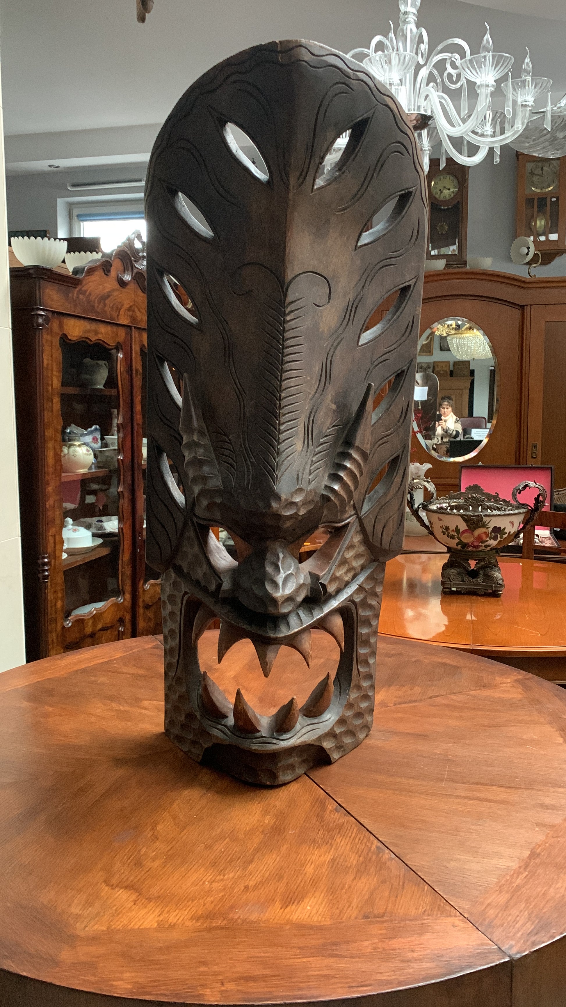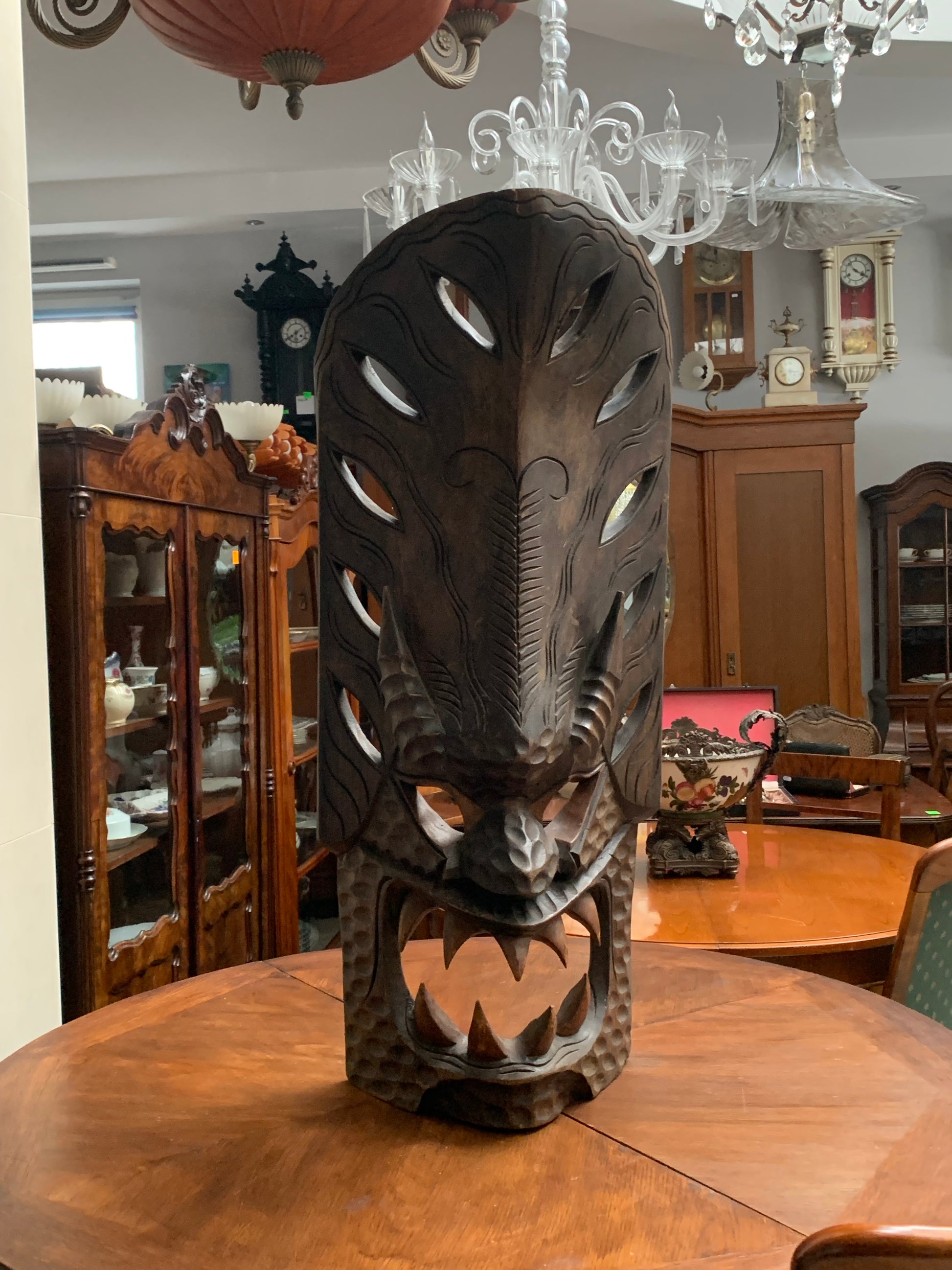 Rzeźba, maska filipińskiego smoka Bakunawa, czczonego przez plemie Ifuago. Mityczny stwór pożarł 6 z 7 księżyców; kiedy zje ostatni, zapadnie ciemność.