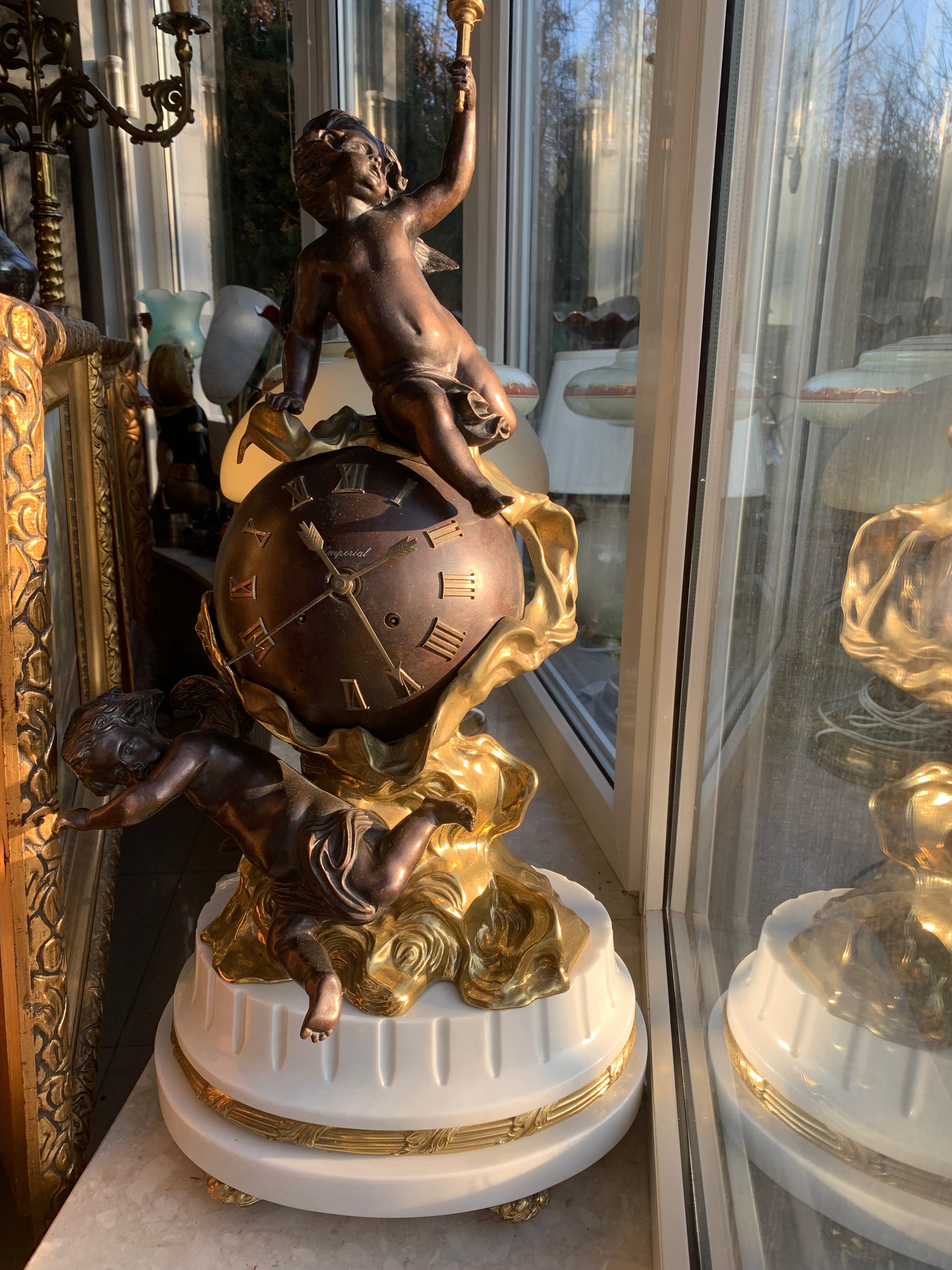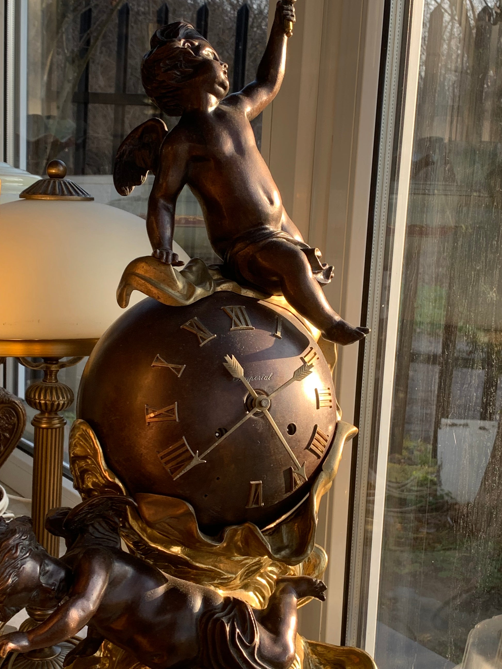 Zegar włoski kula z aniołami na kamiennej podstawie