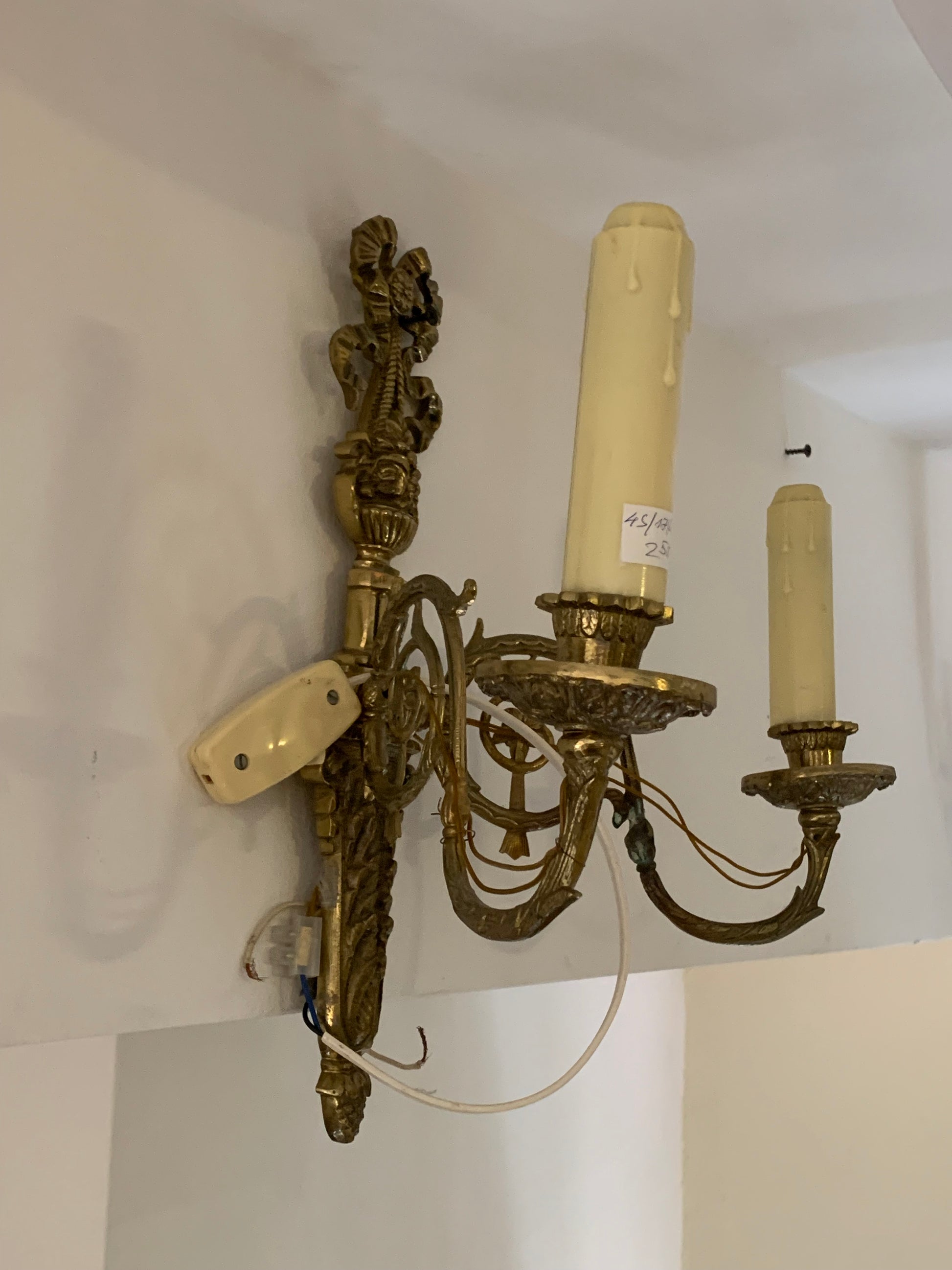 Secesyjny kinkiet z mosiądzu na dwie świece