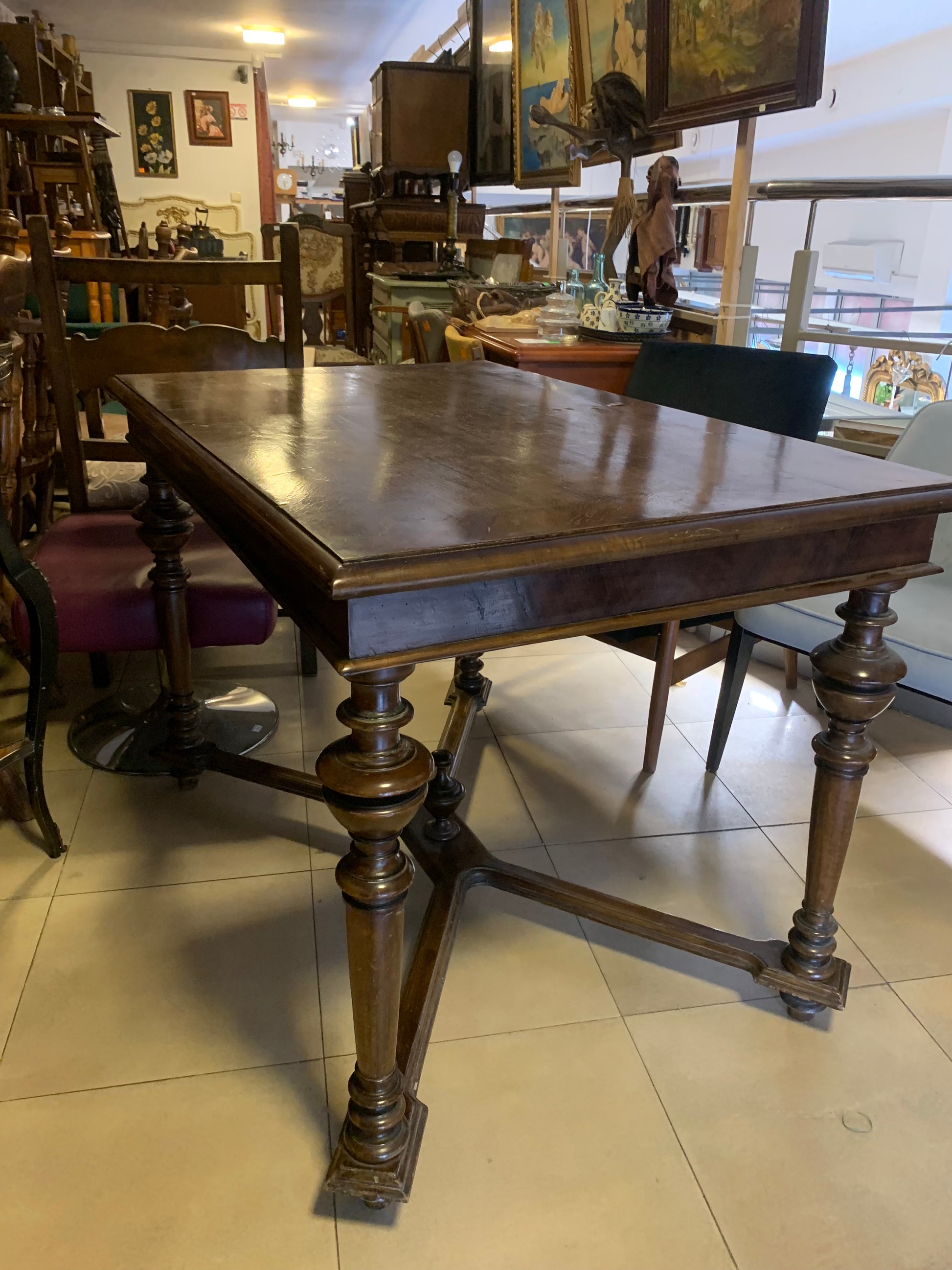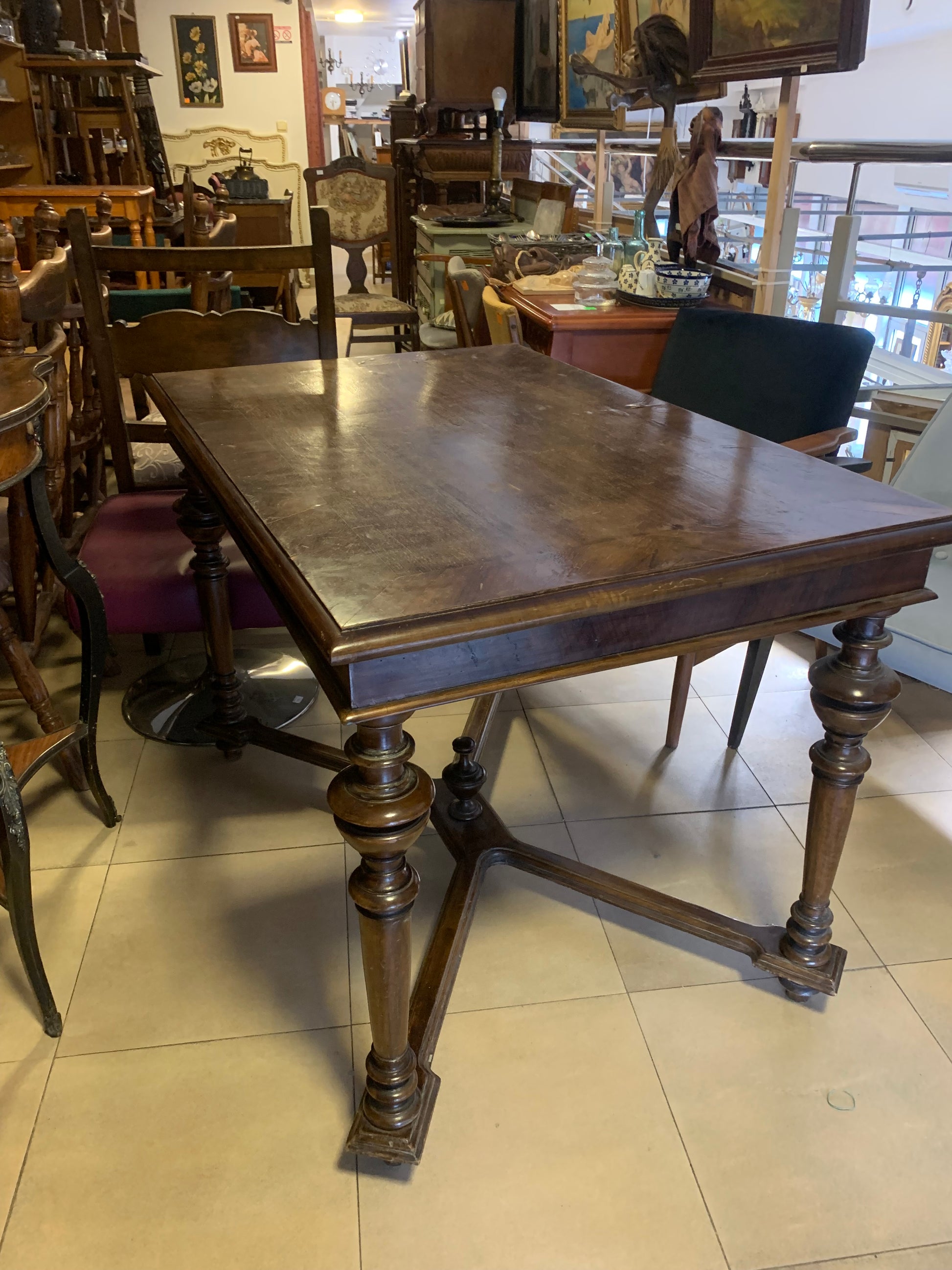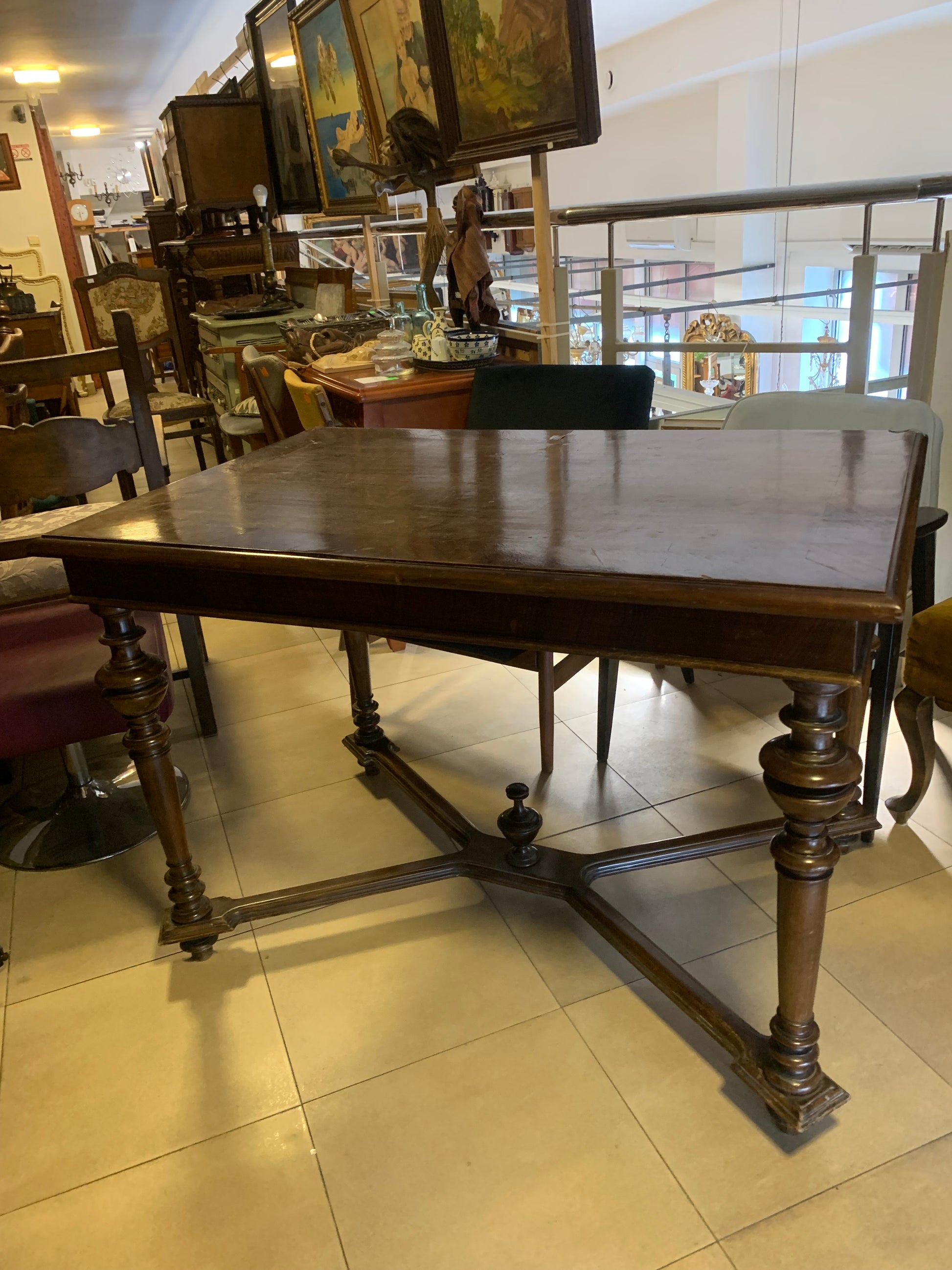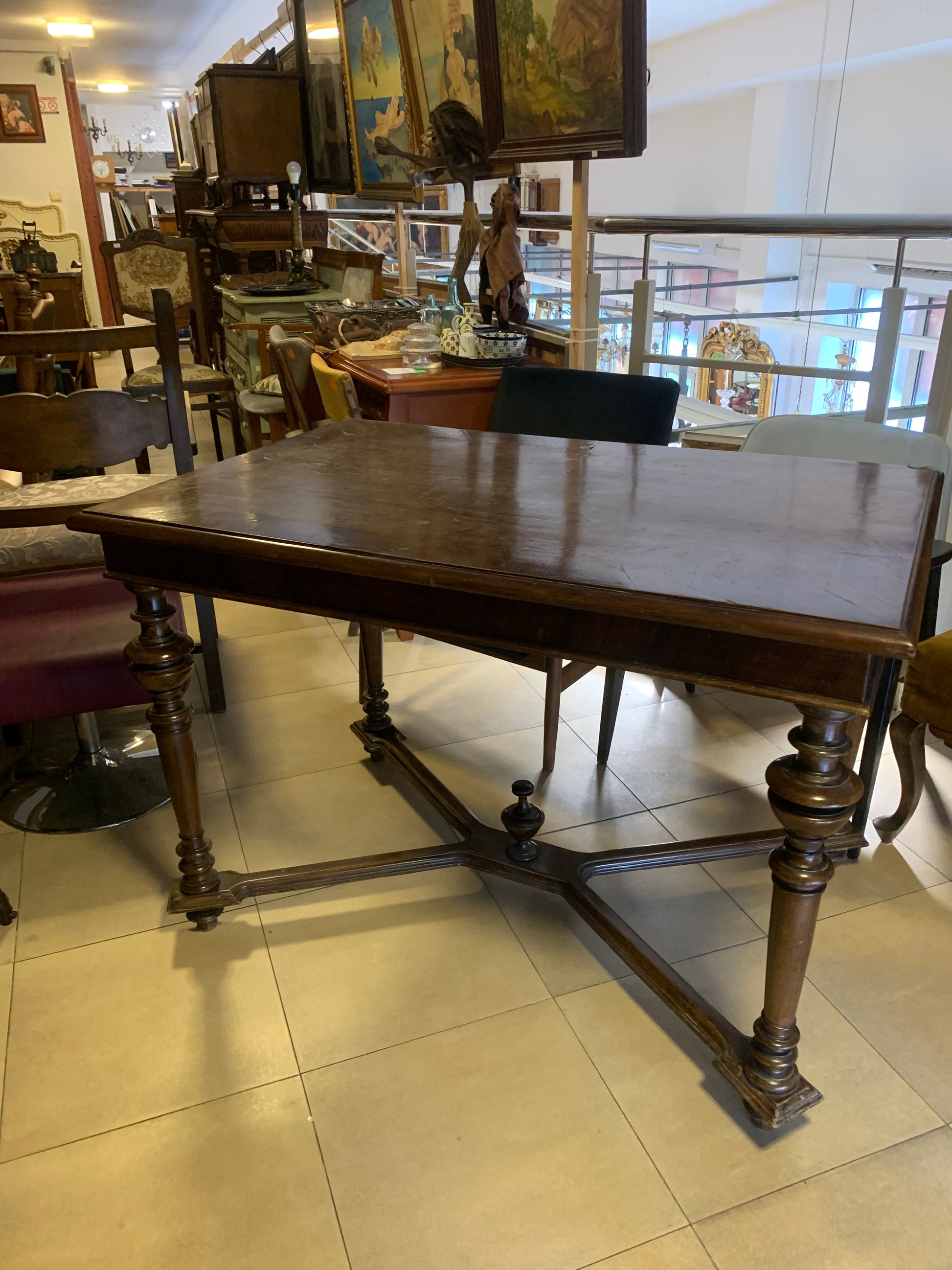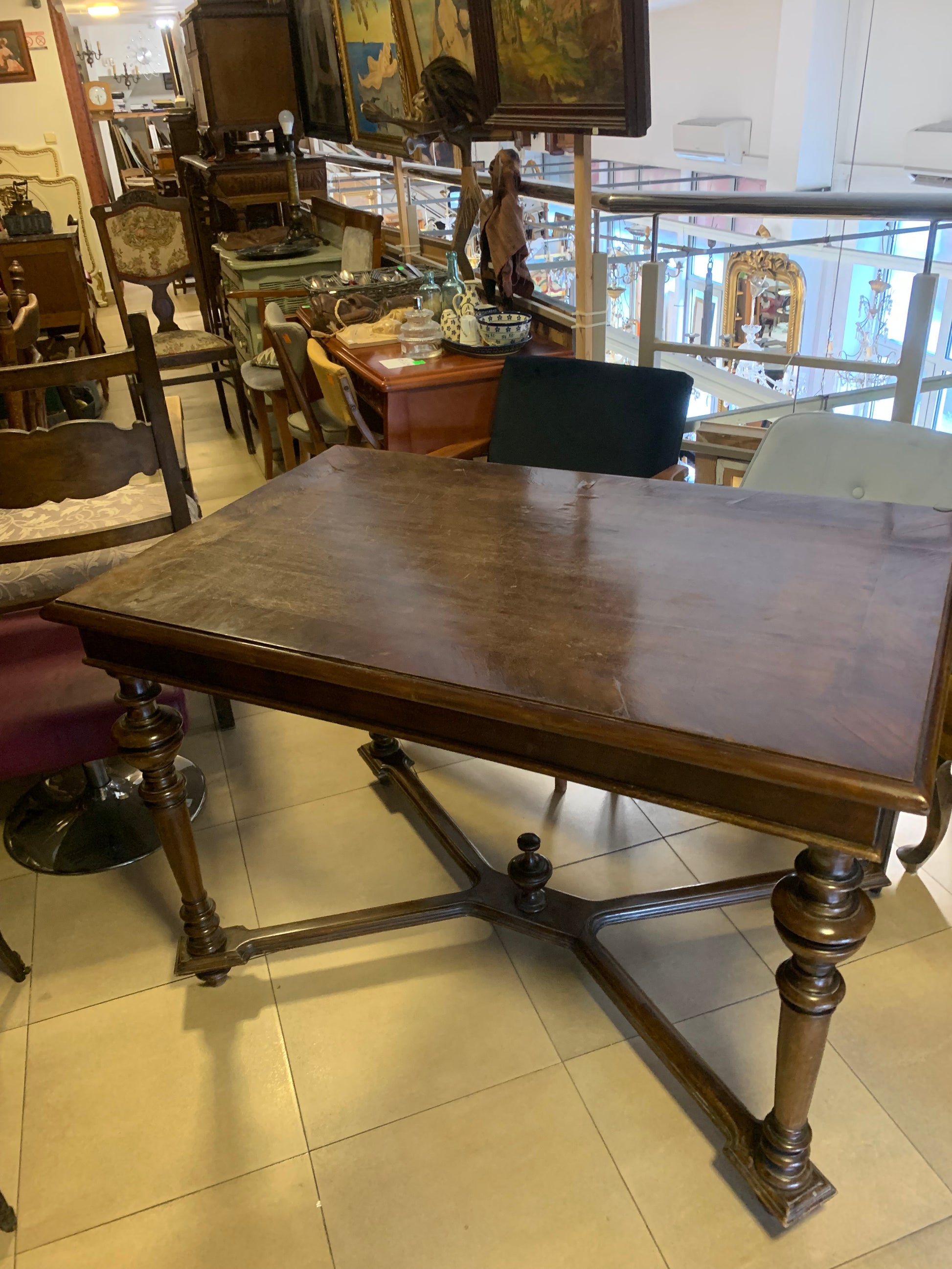 Stół krzyżak mahoniowy, prostokątny, antyk. Do odświeżenia.