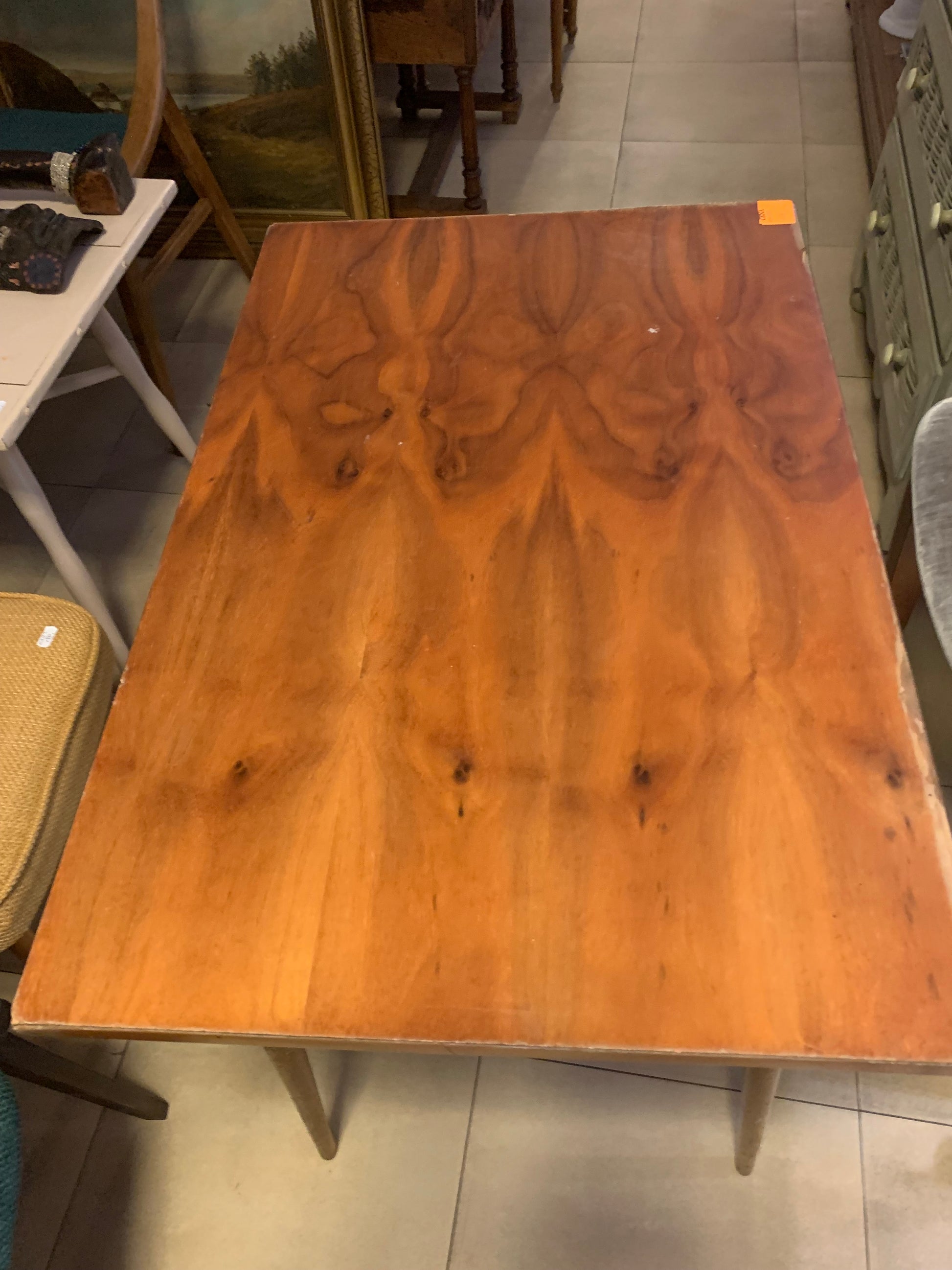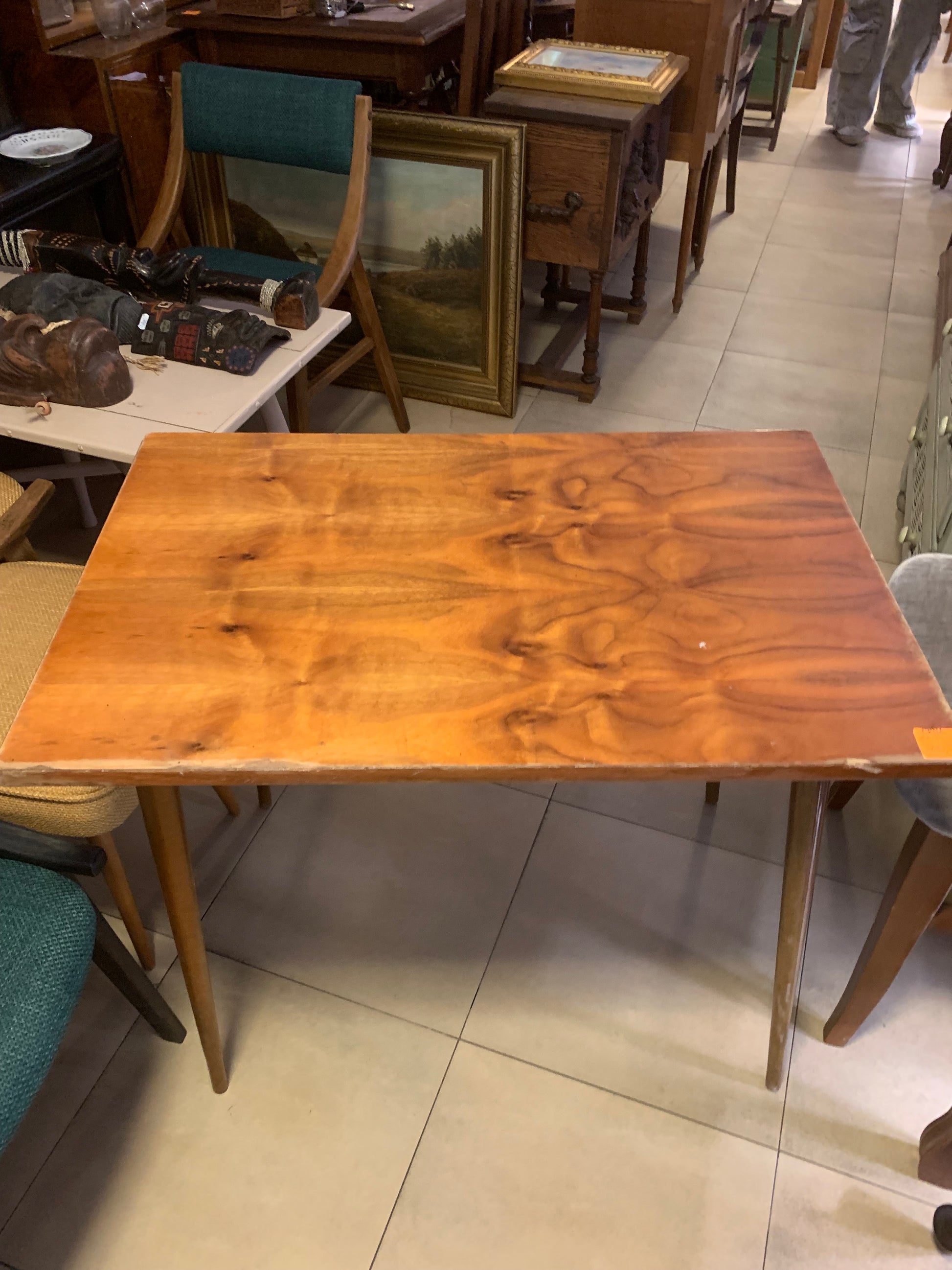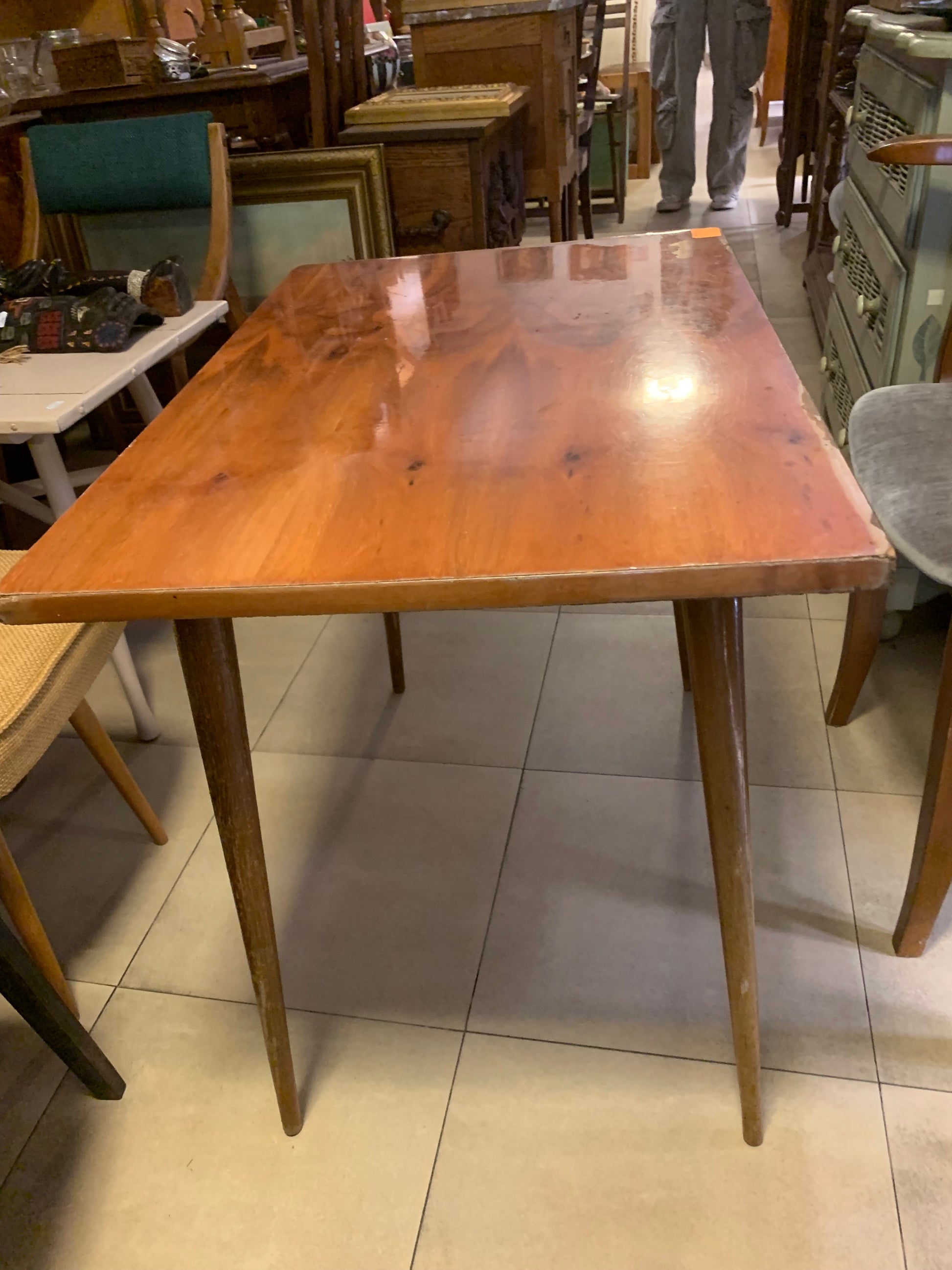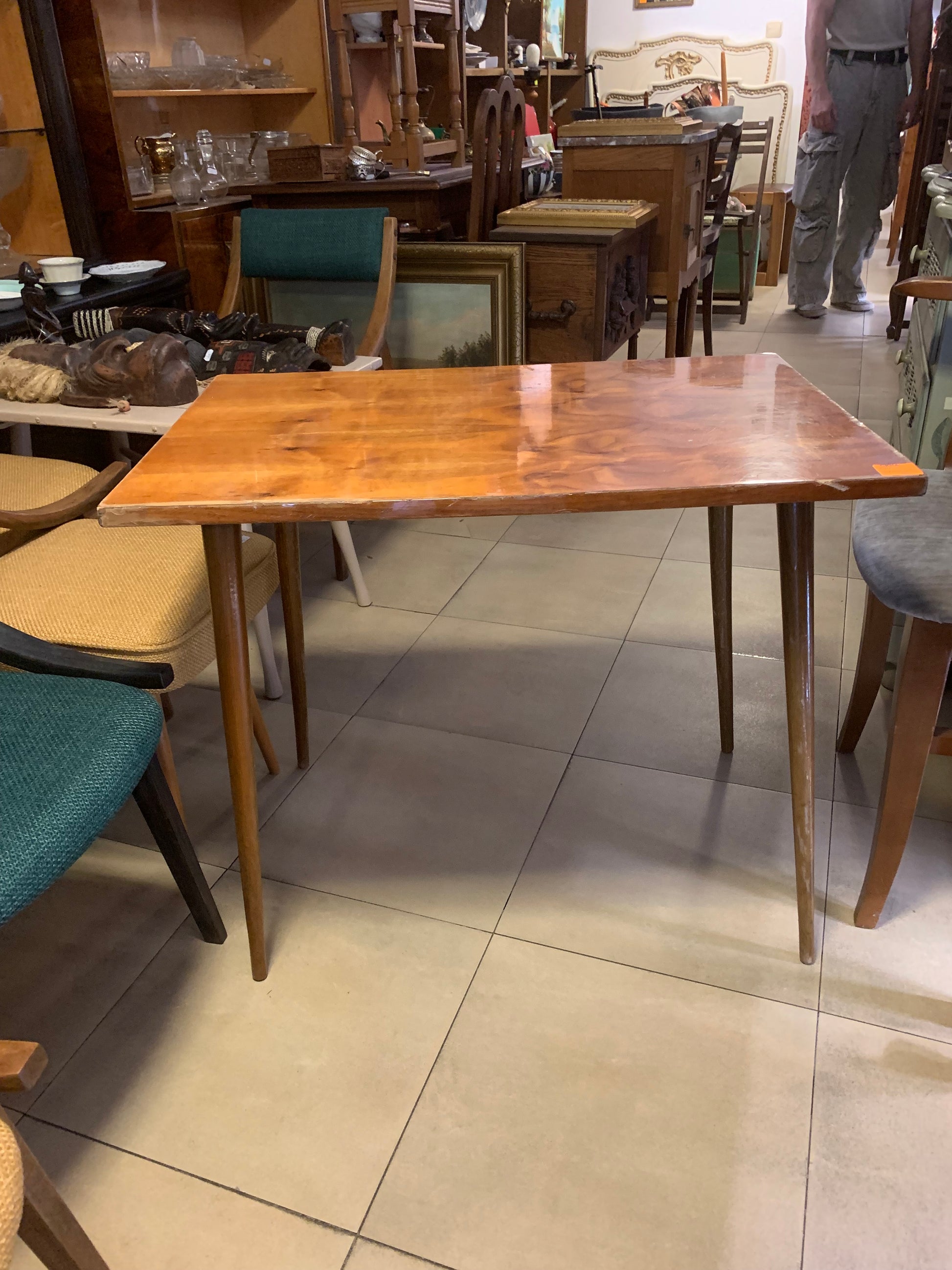 Stolik kawowy patyczak PRL, lata 70-te, okleina dębowa, lakierowany.