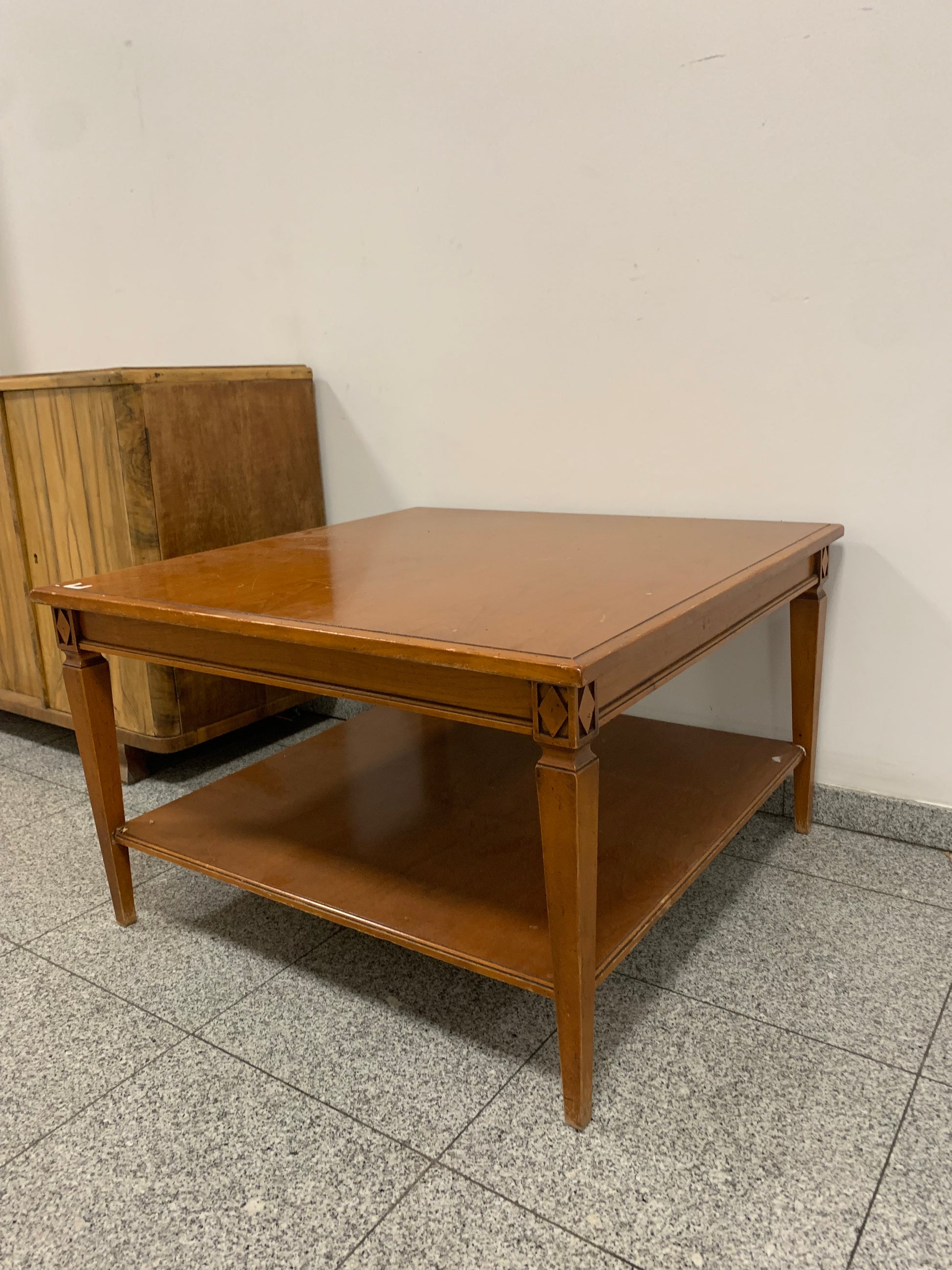 Stolik, ława kawowa kwadratowa, z mahoniu SELVA, włoski mebel w dobrej cenie. Stan: dobry. Wymiary: 90 x 90 cm, wysokość 55 cm