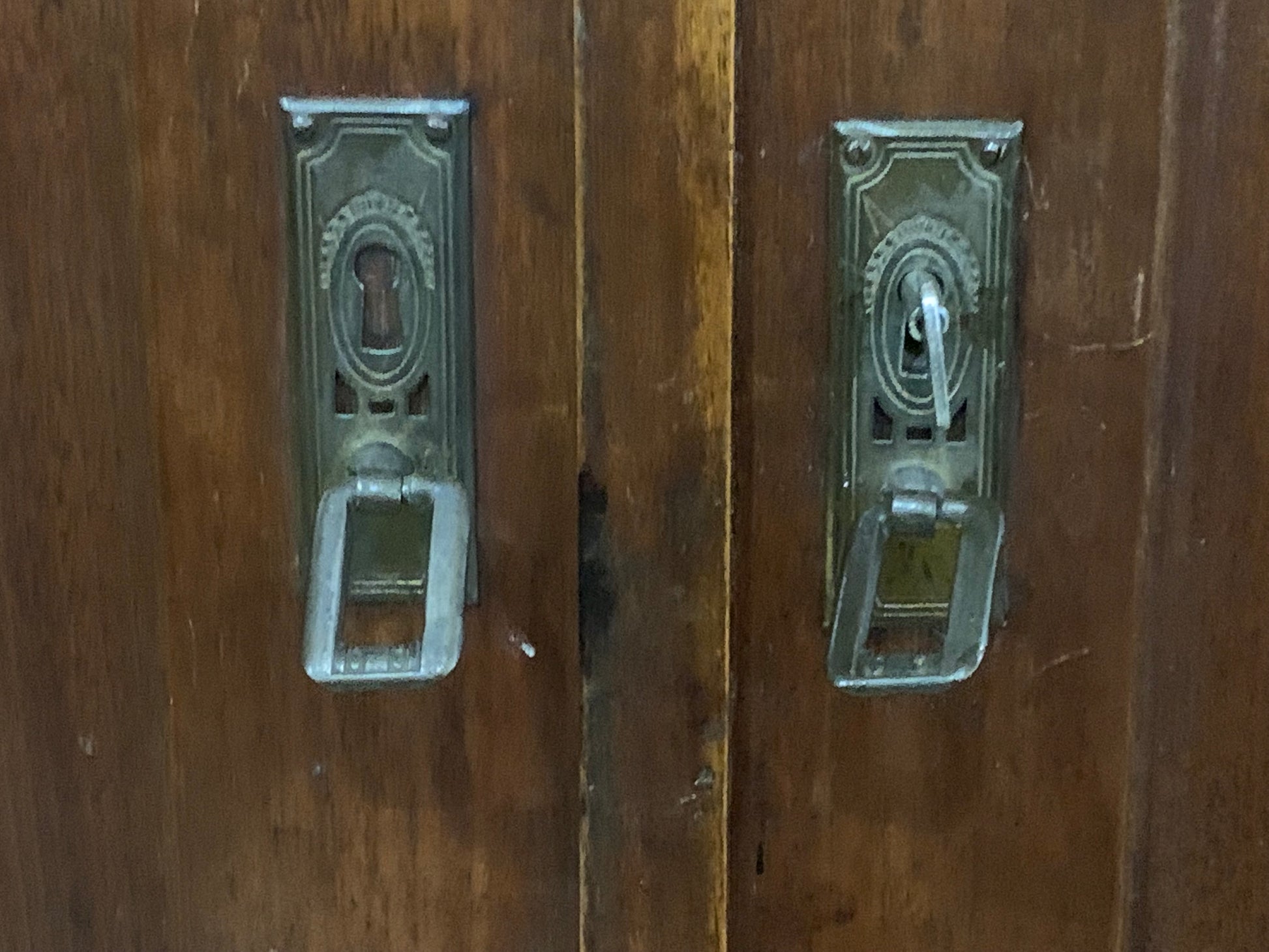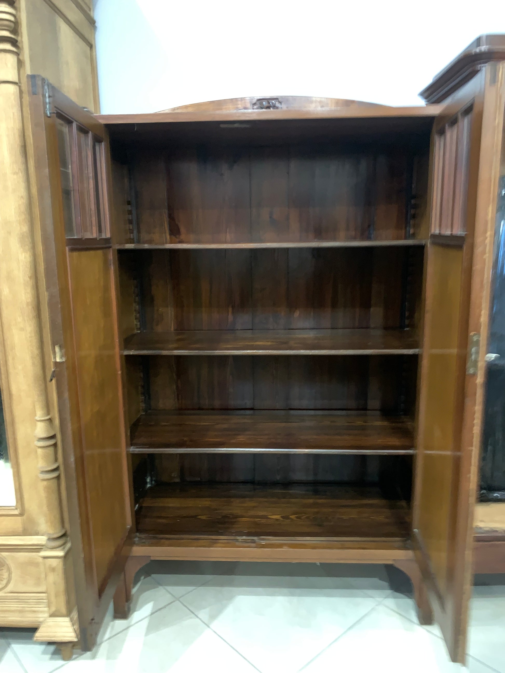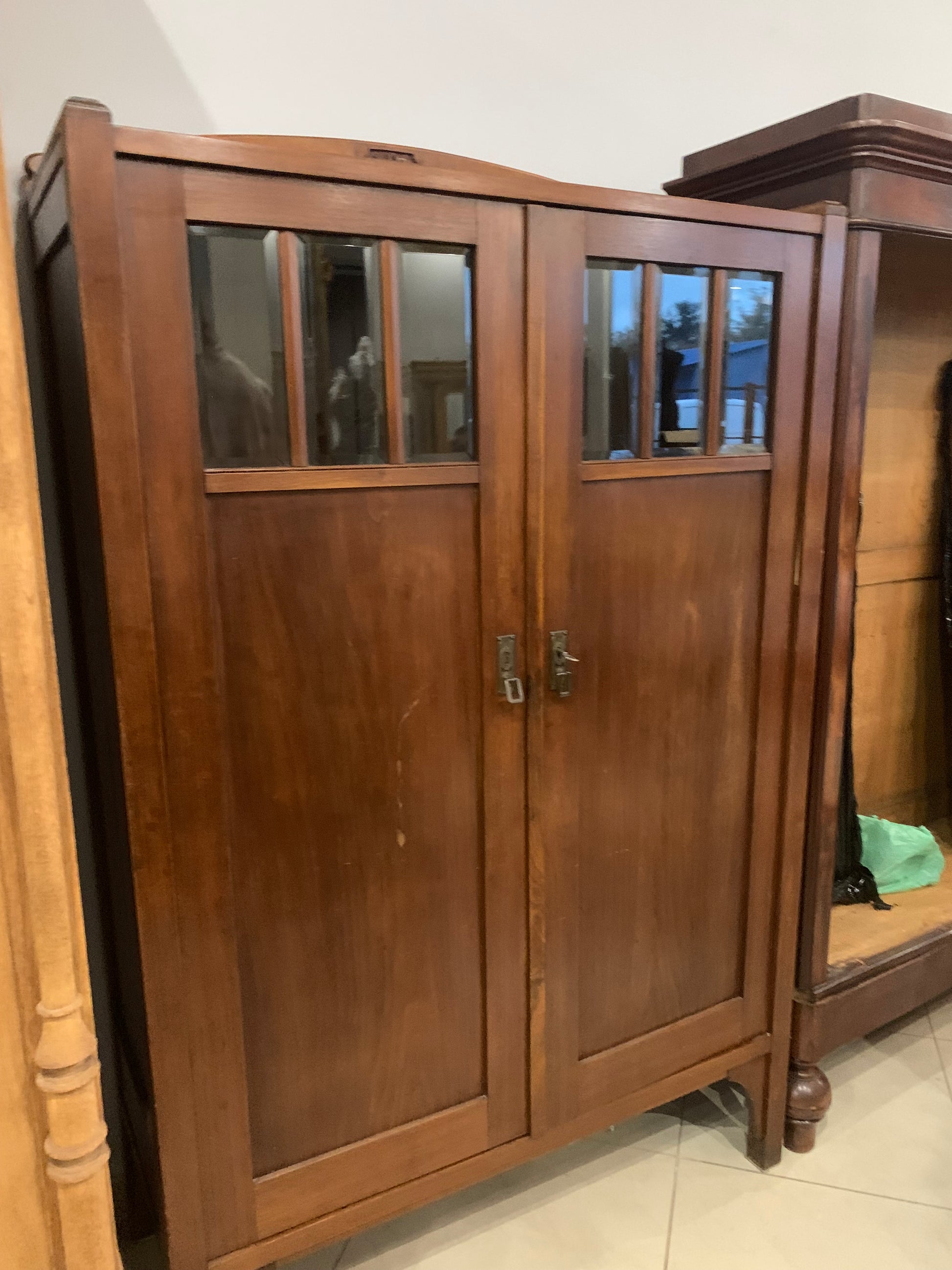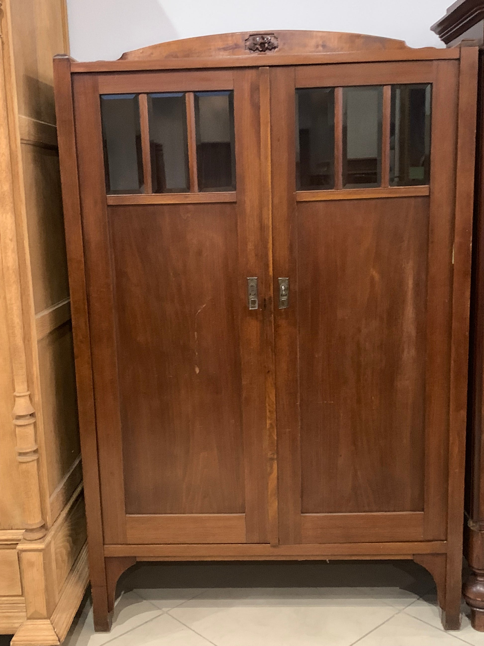 Szafa, bieliźniarka secesyjna, oszklona ozdobiona uchwytami z mosiądzu. Szybki szklane, fazowane.