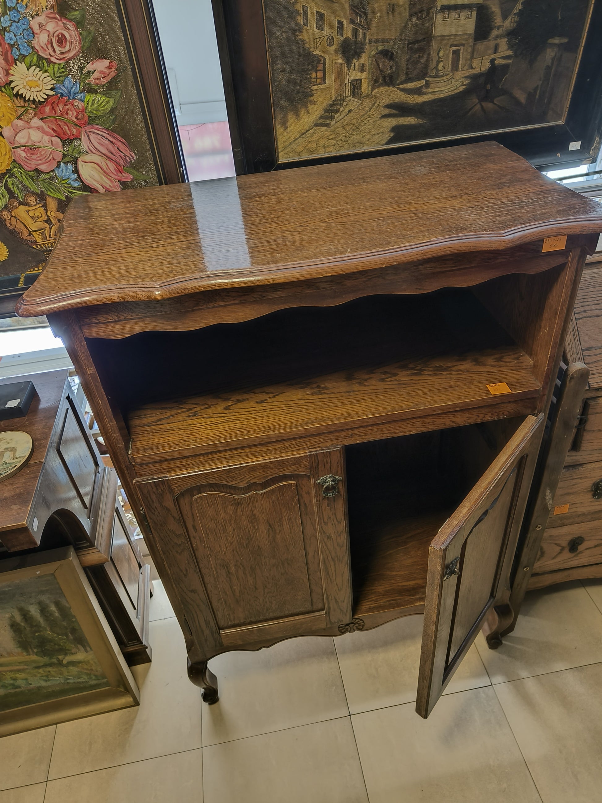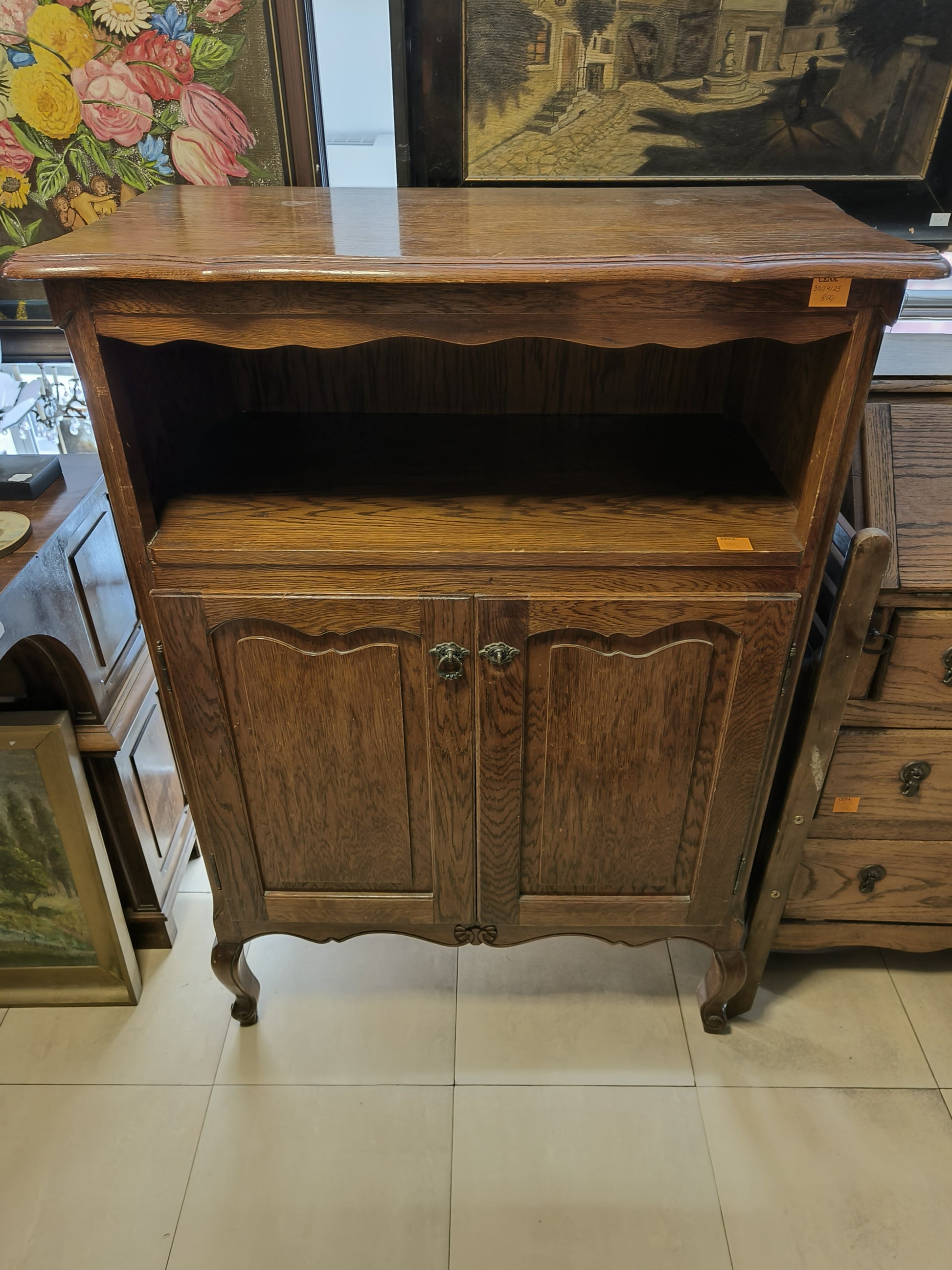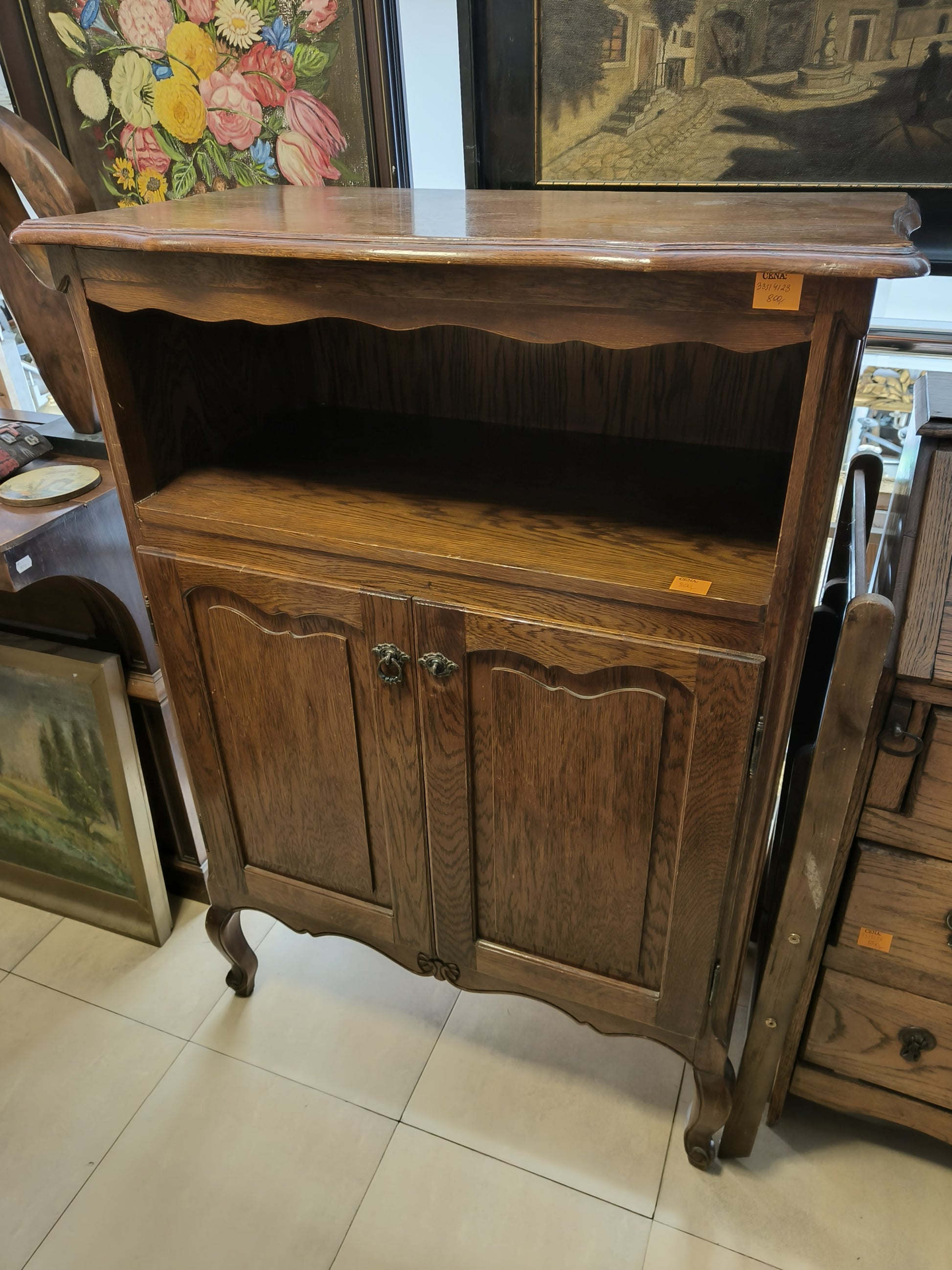 Szafka dębowa "Ludwik" z drzwiczkami i półką otwartą.