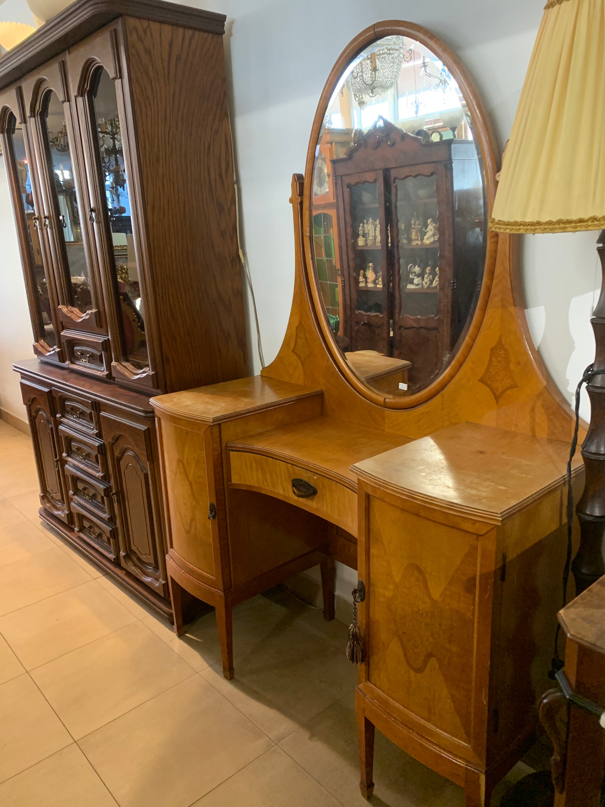 Toaletka secesyjna, drewniana, lustro owalne fazowane