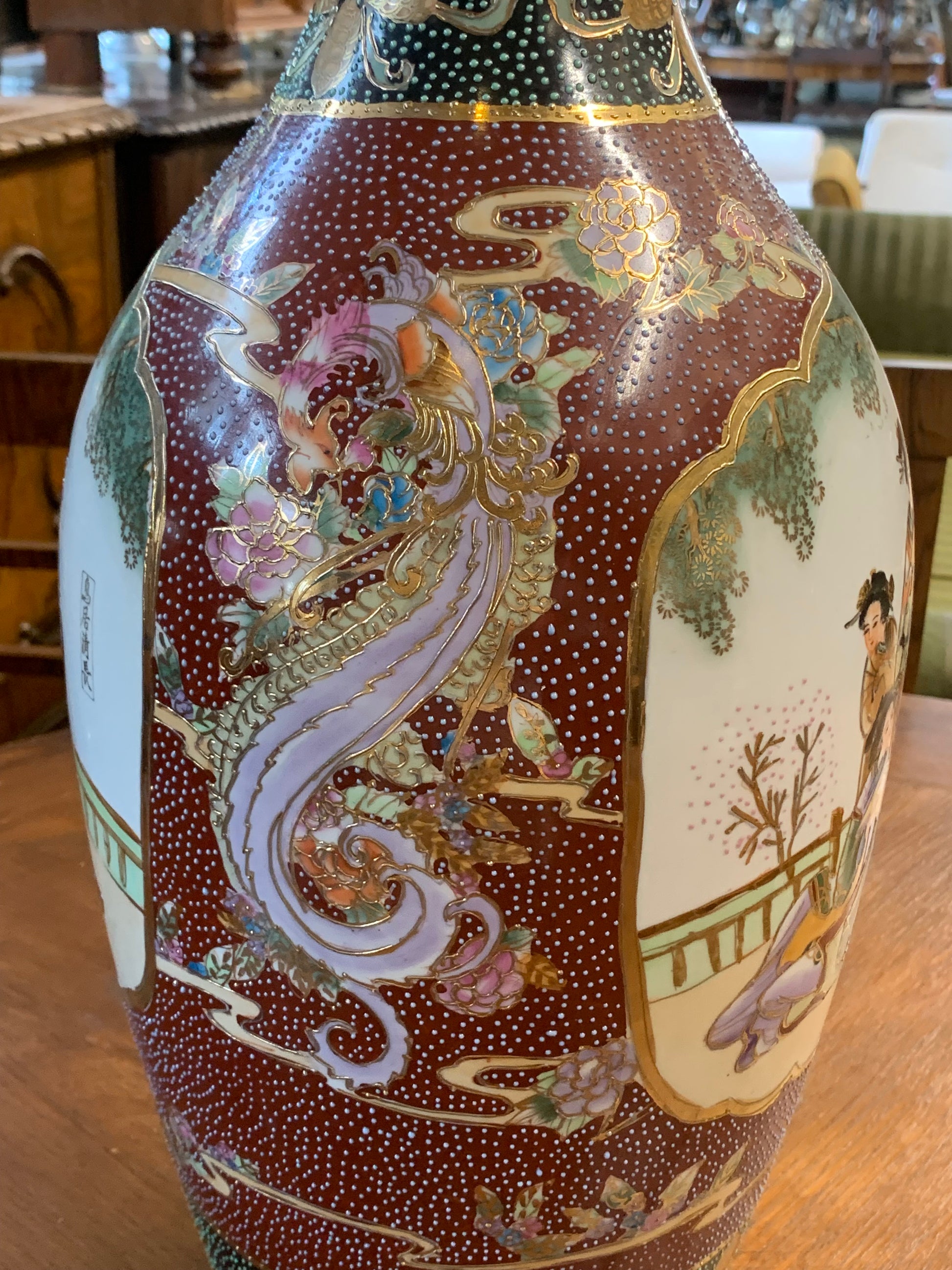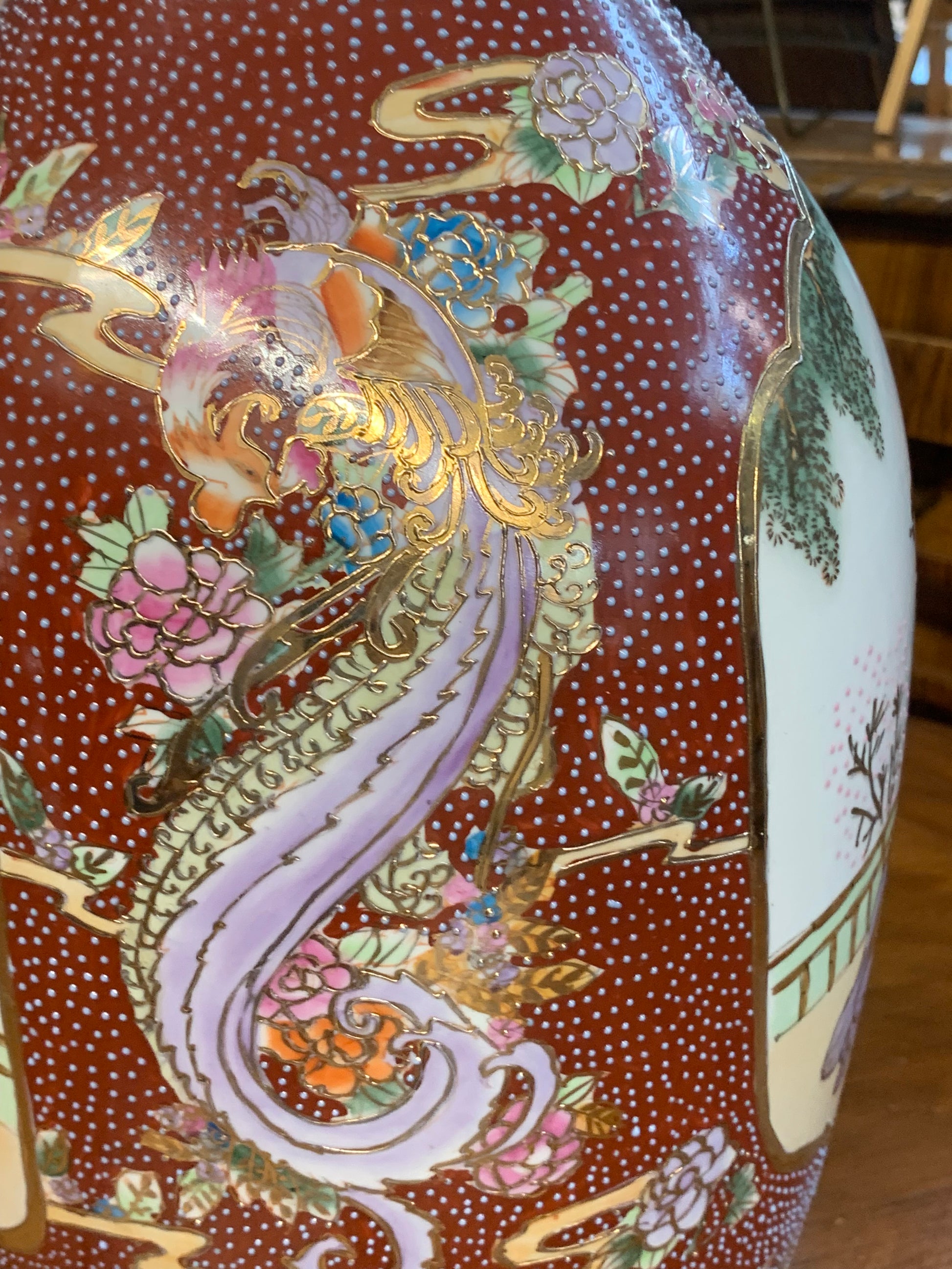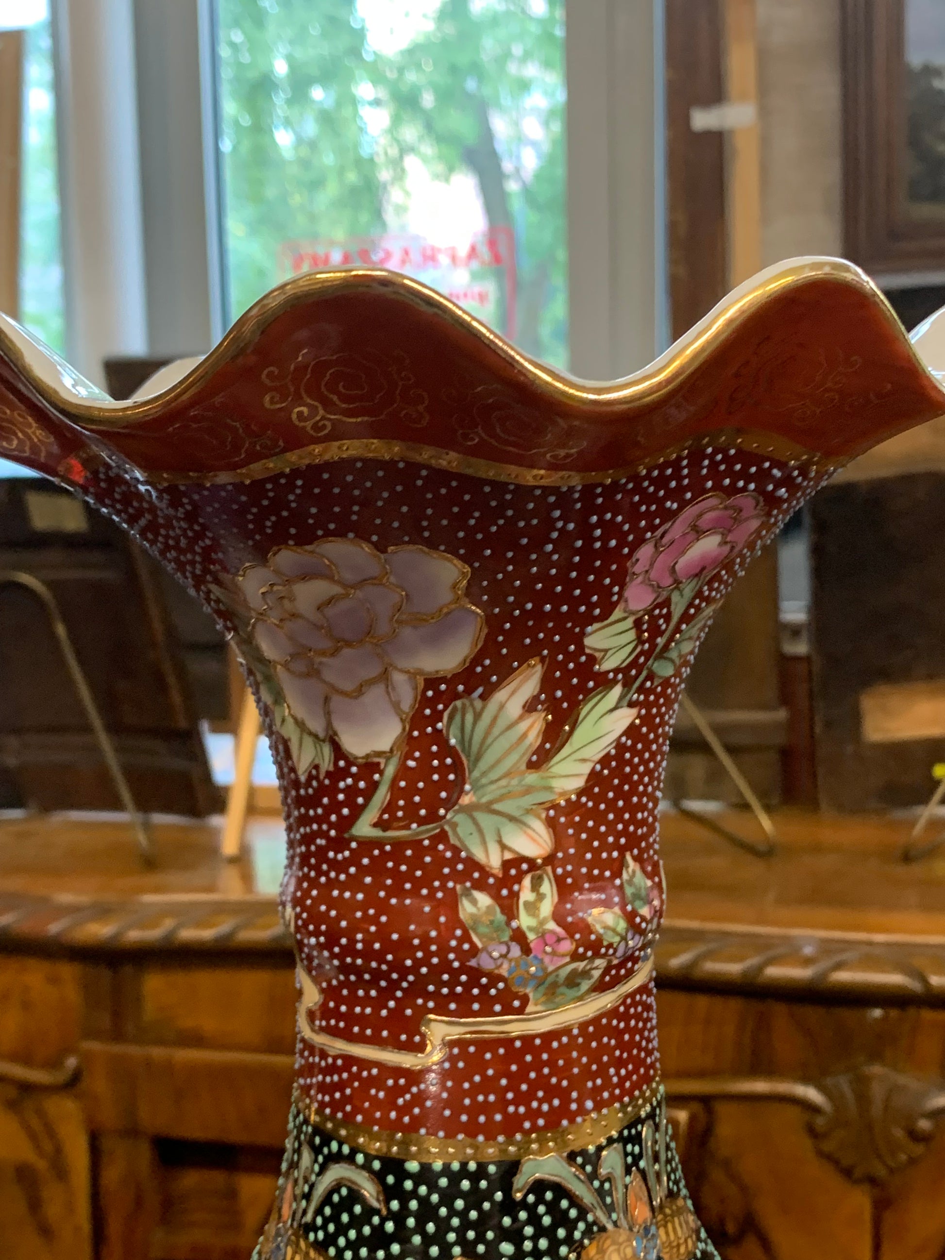 Wazon chiński, wysoki ręcznie zdobiony lata 80-e