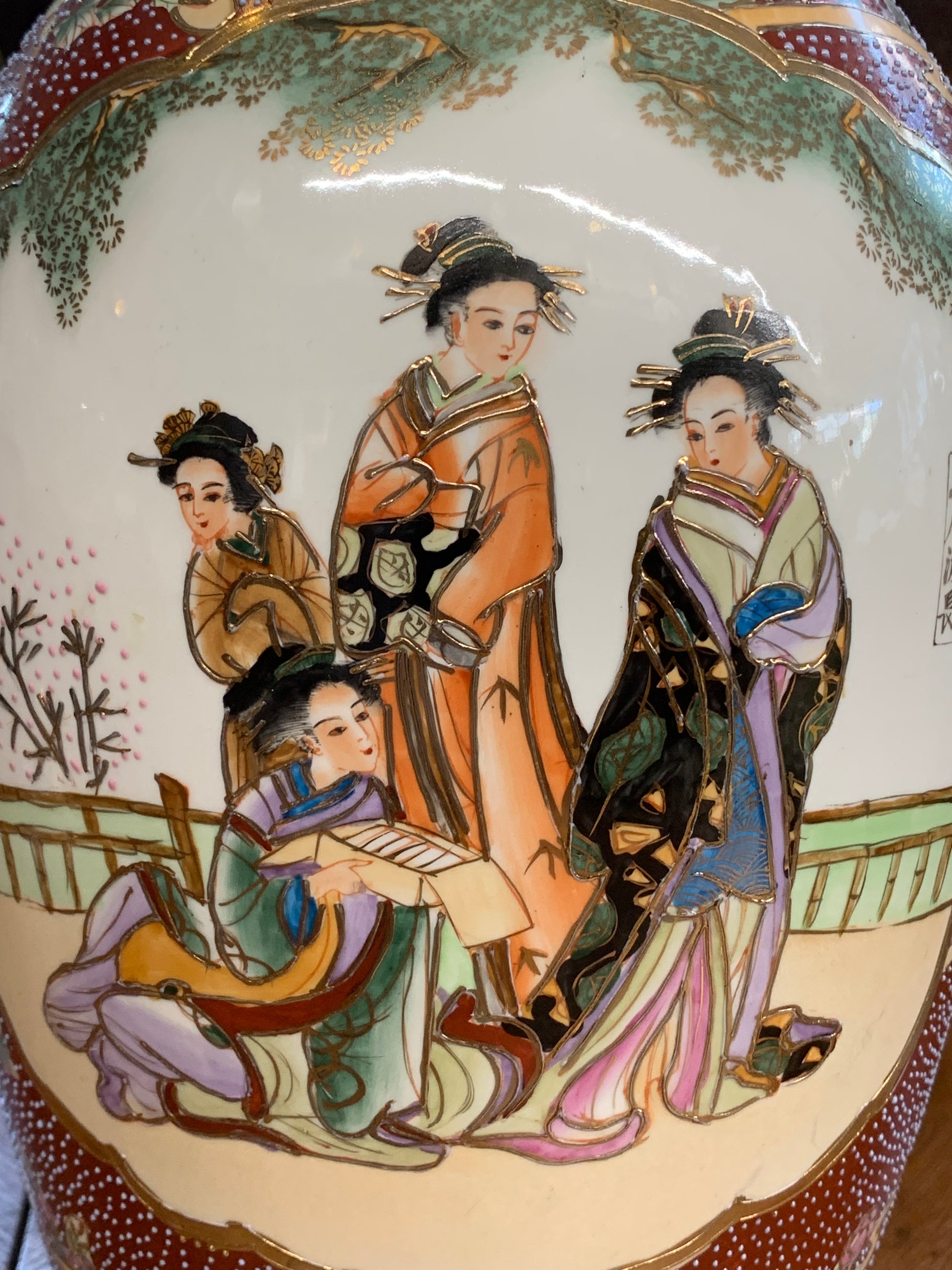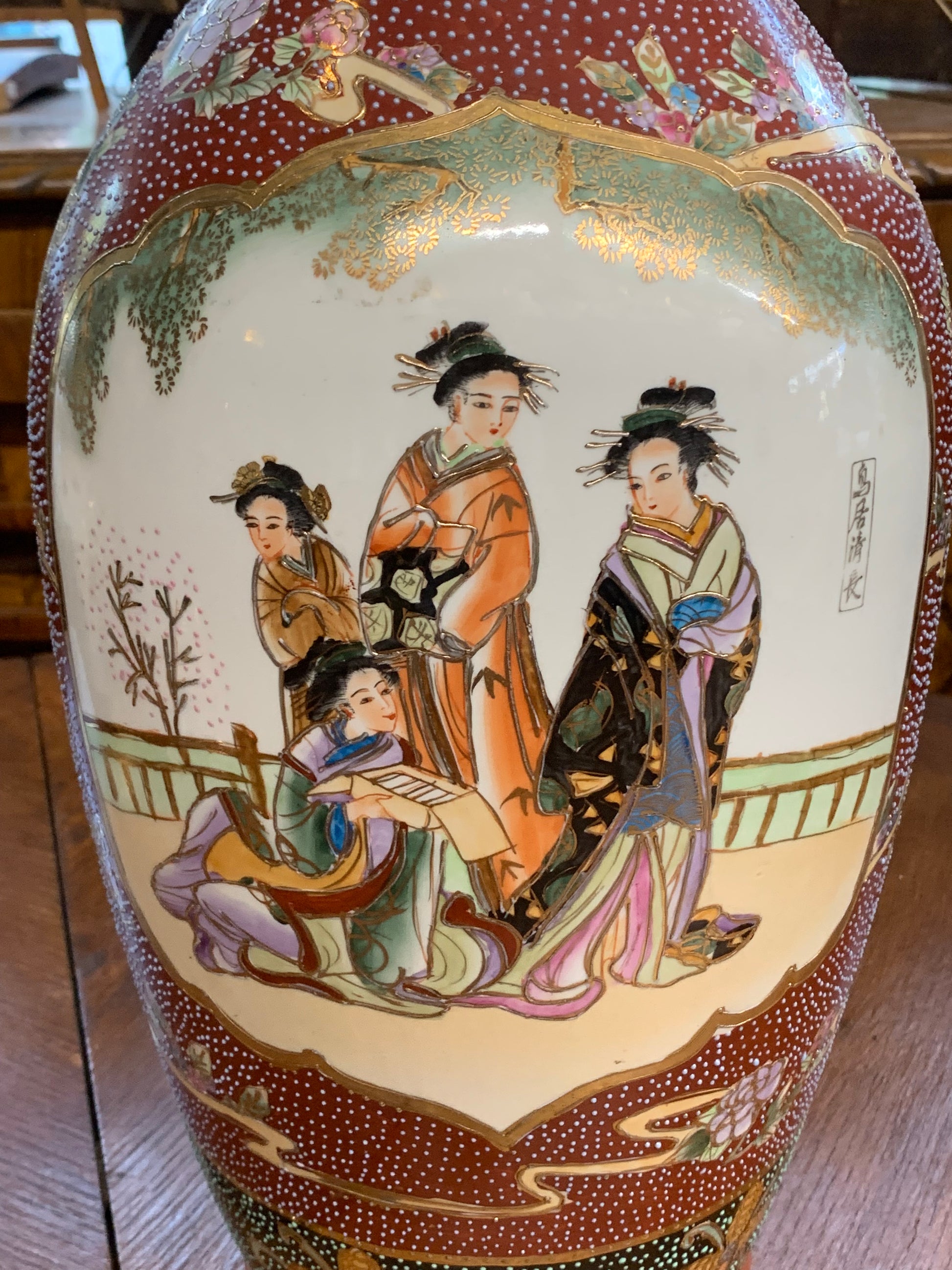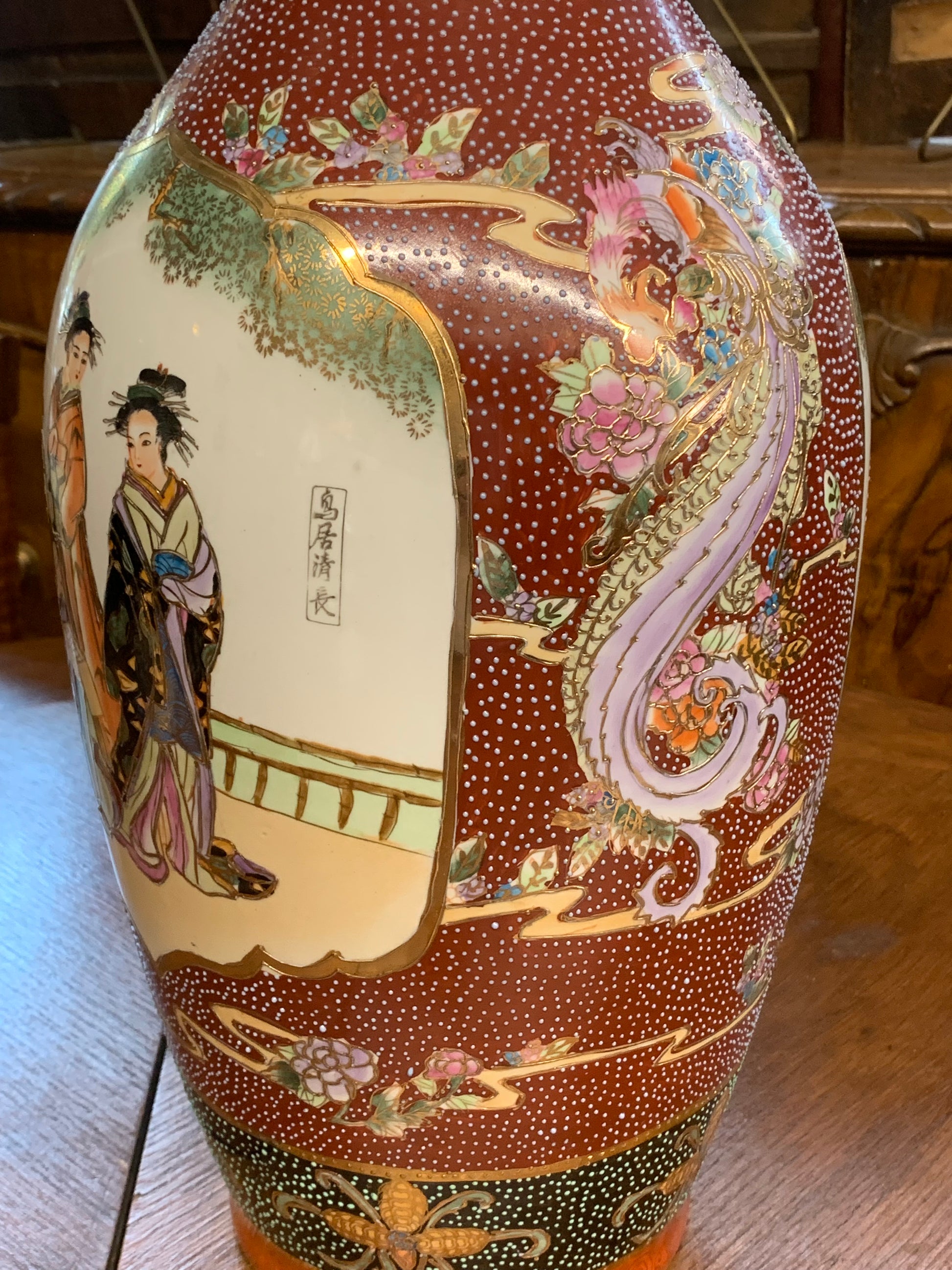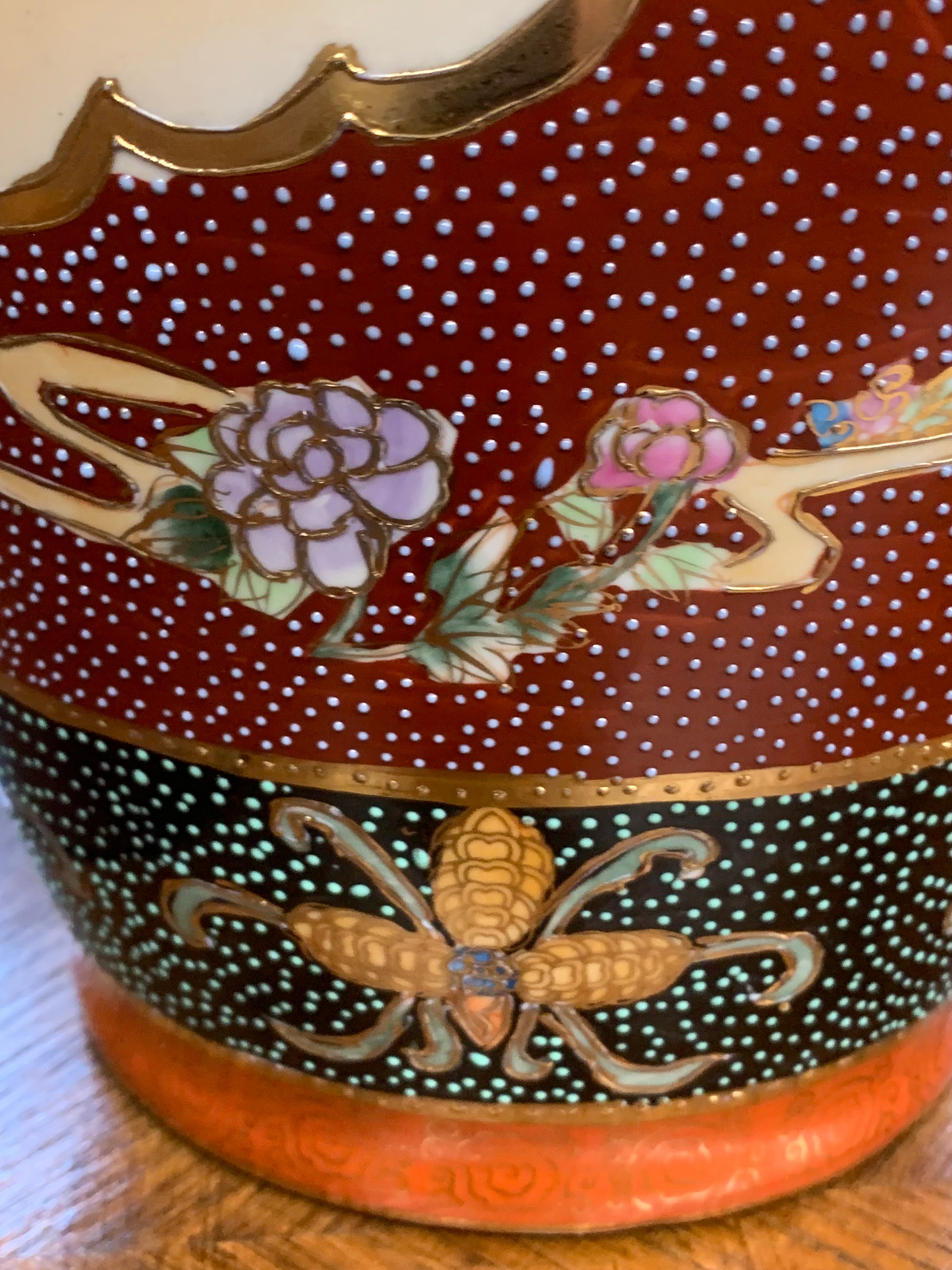 Wazon chiński, wysoki ręcznie zdobiony lata 80-e