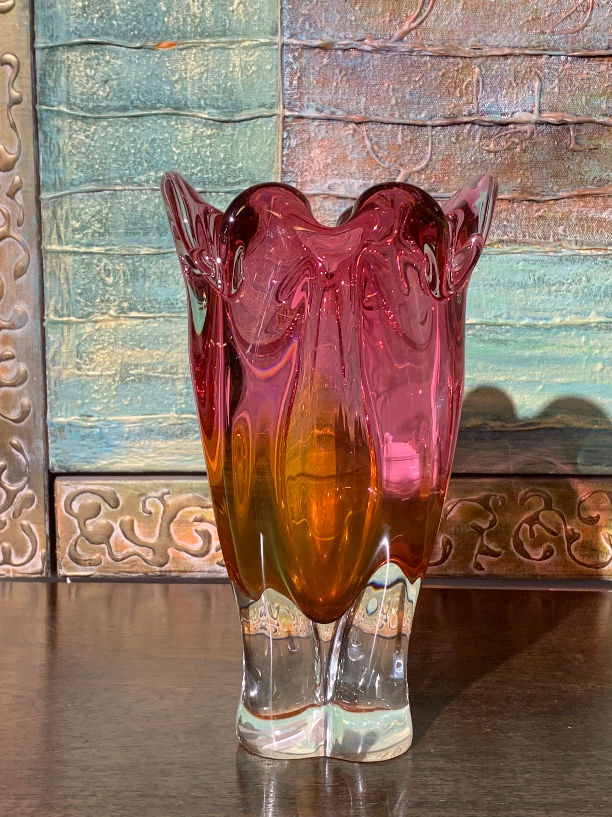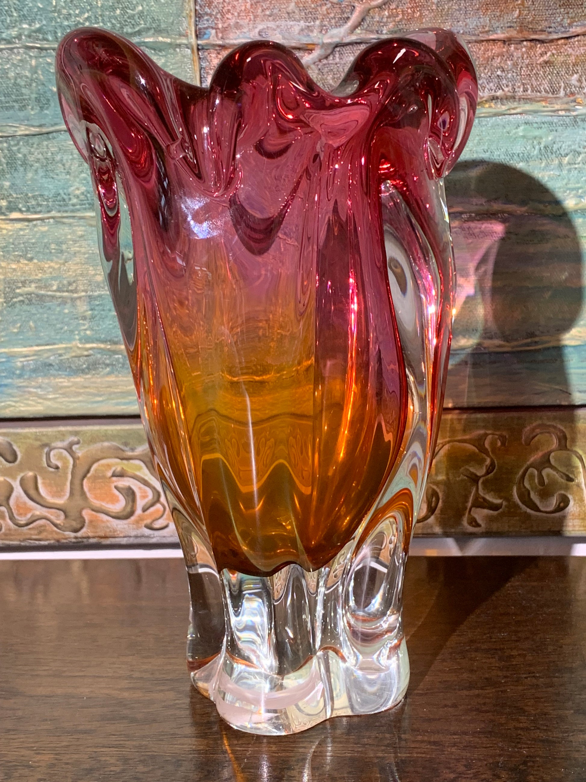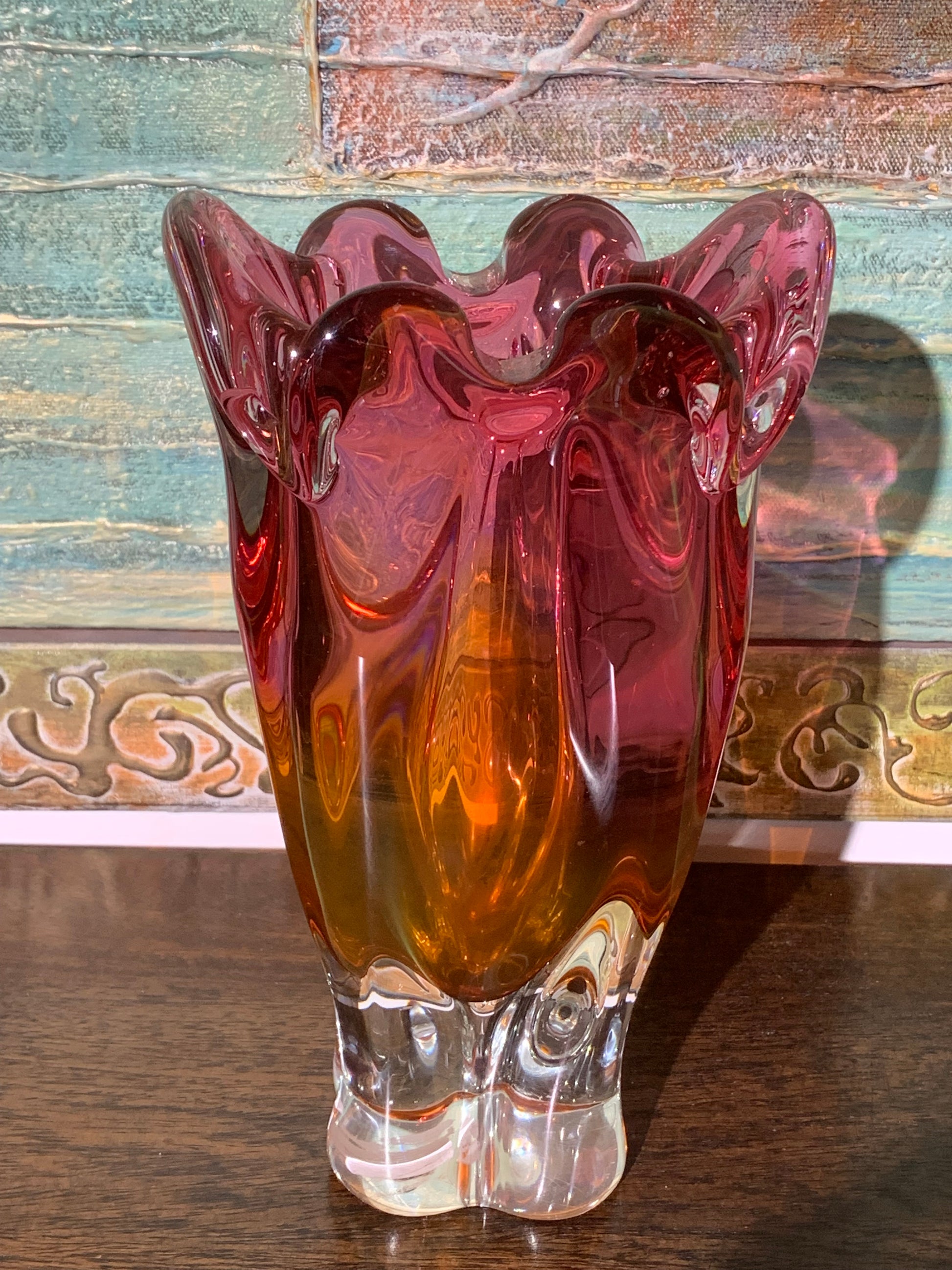 Wazon z grubego szkła dwukolorowego Hospodka, Czechosłowacja