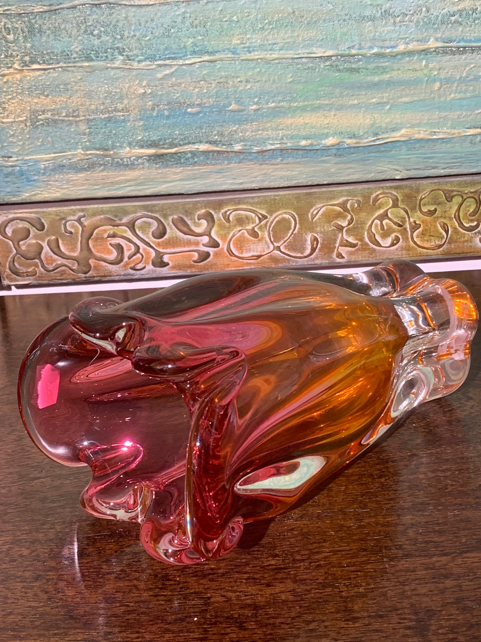 Wazon z grubego szkła projektant Hospodka, Czechosłowacja w kolorze miodowo różowym. Huta szkła Chribska.