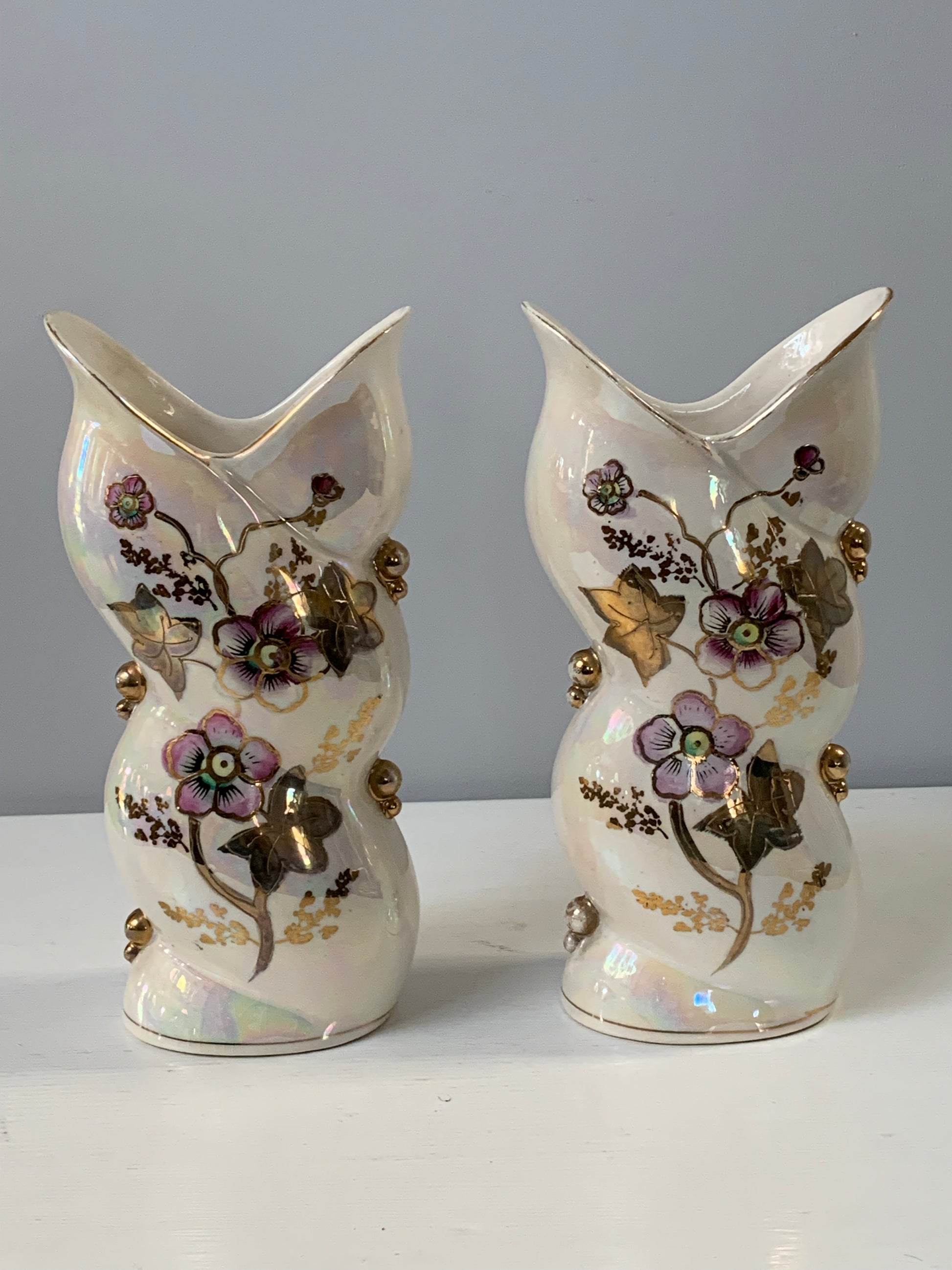 Wazony porcelanowe, para, Japan z białej, lekkiej porcelany, bogato zdobione kwiatami, złocone. UNIKAT! Cena za 1 szt.