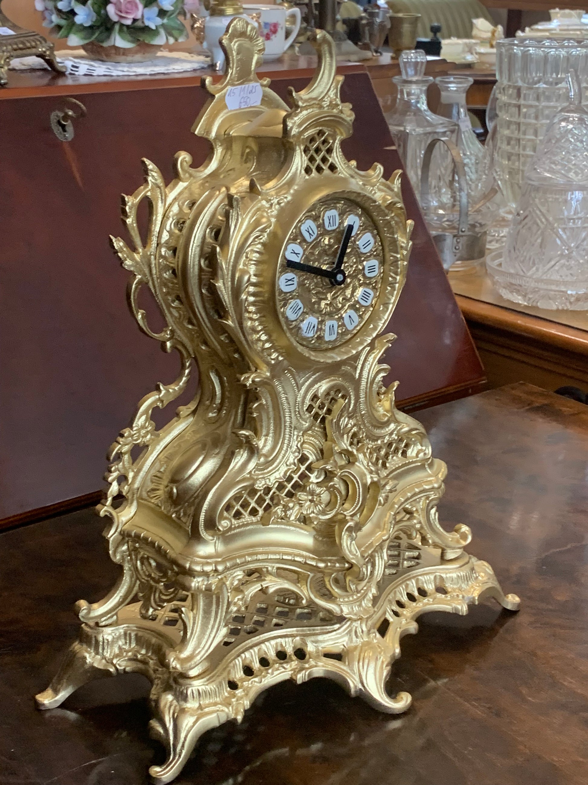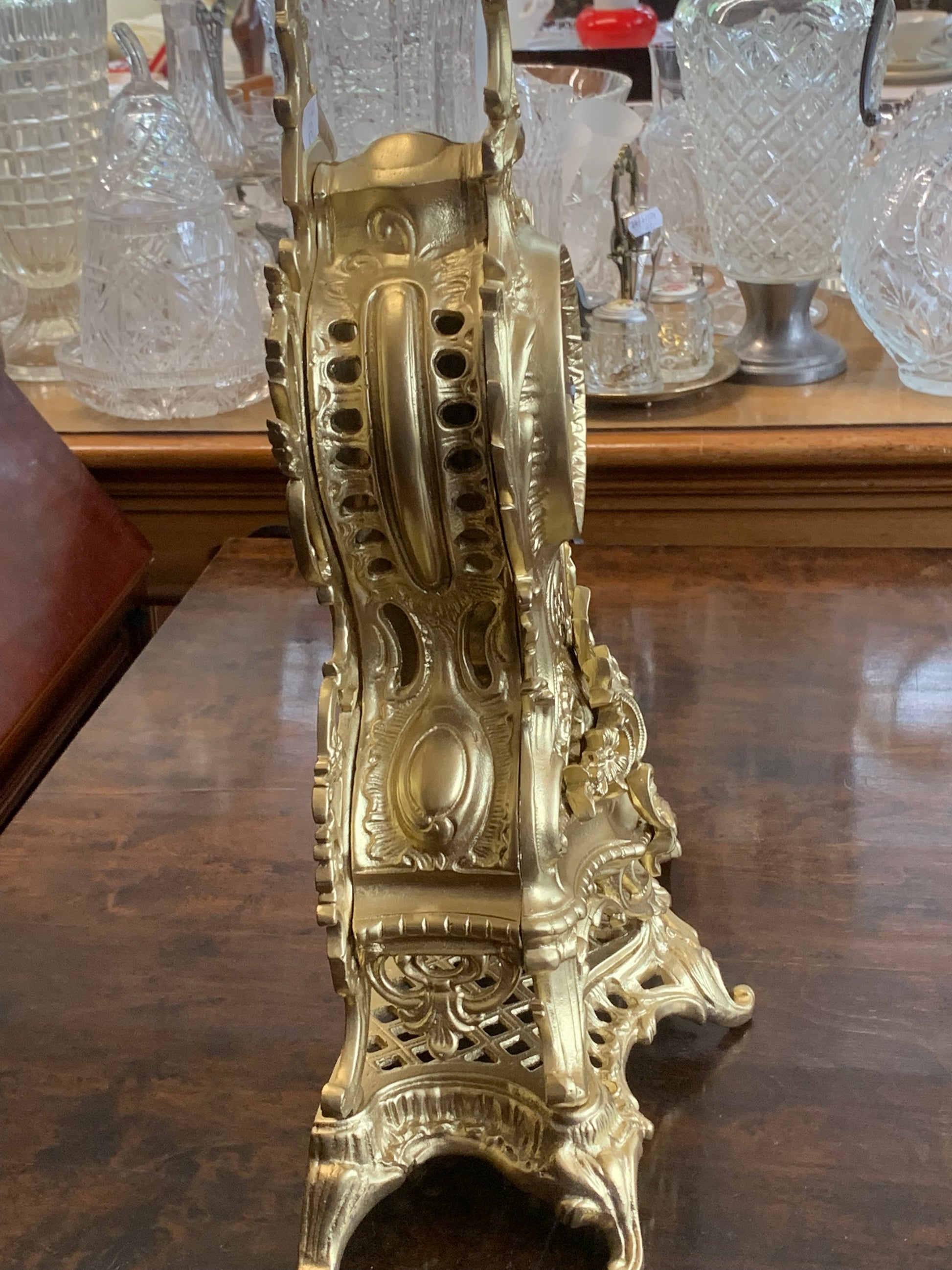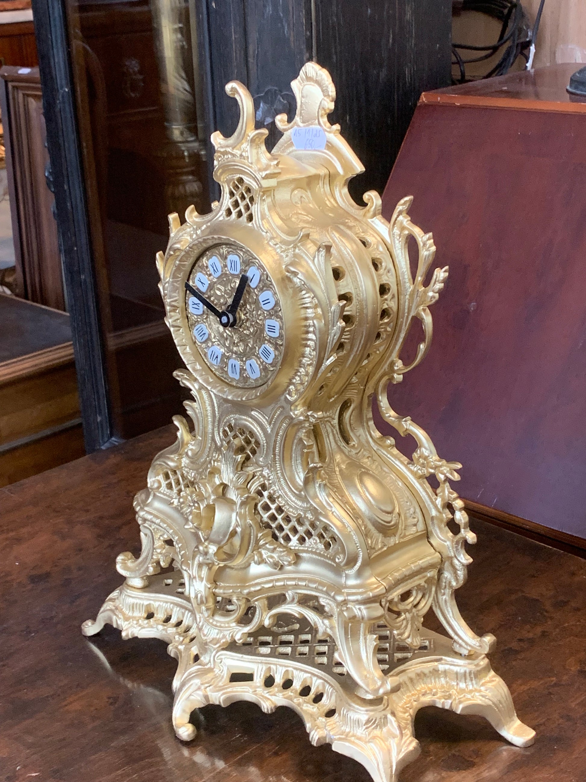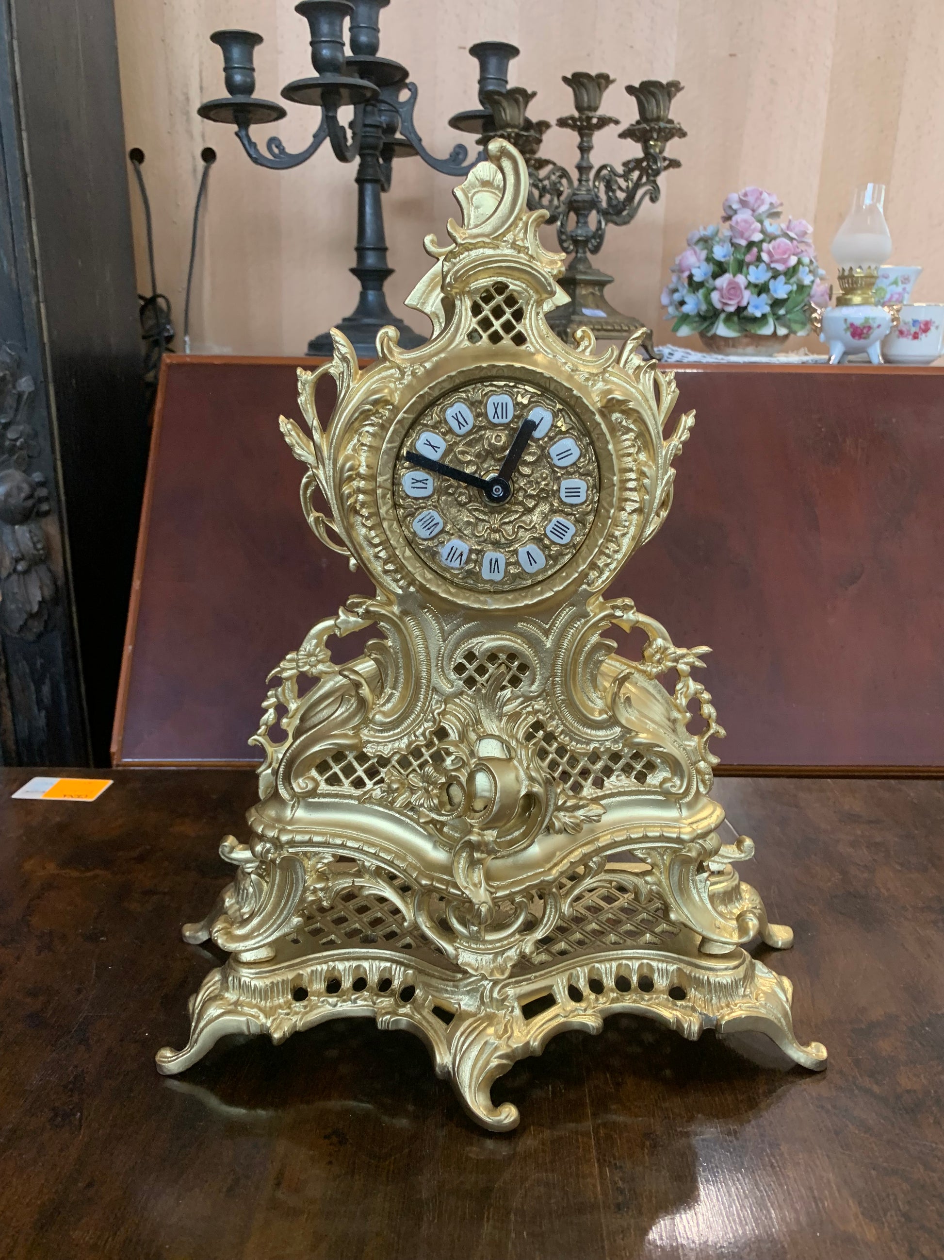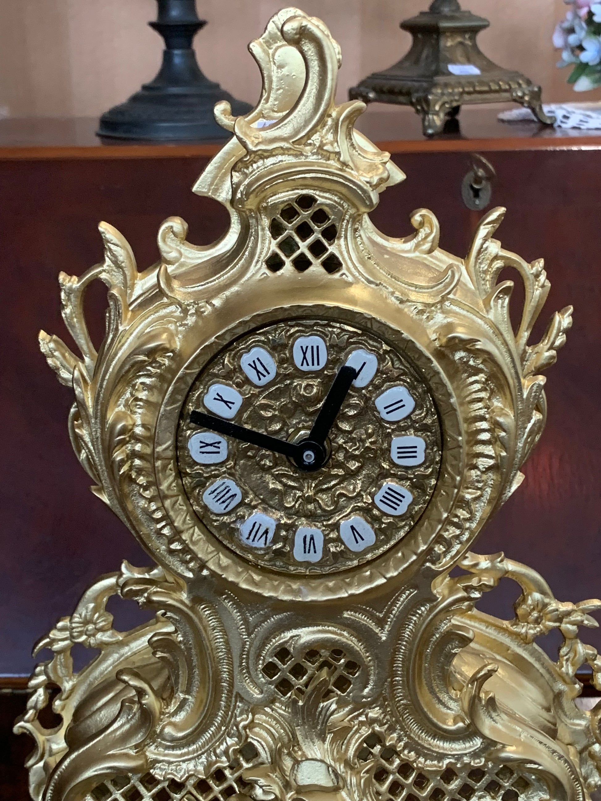 Zegar kominkowy, barokowy, obudowa z mosiądzu