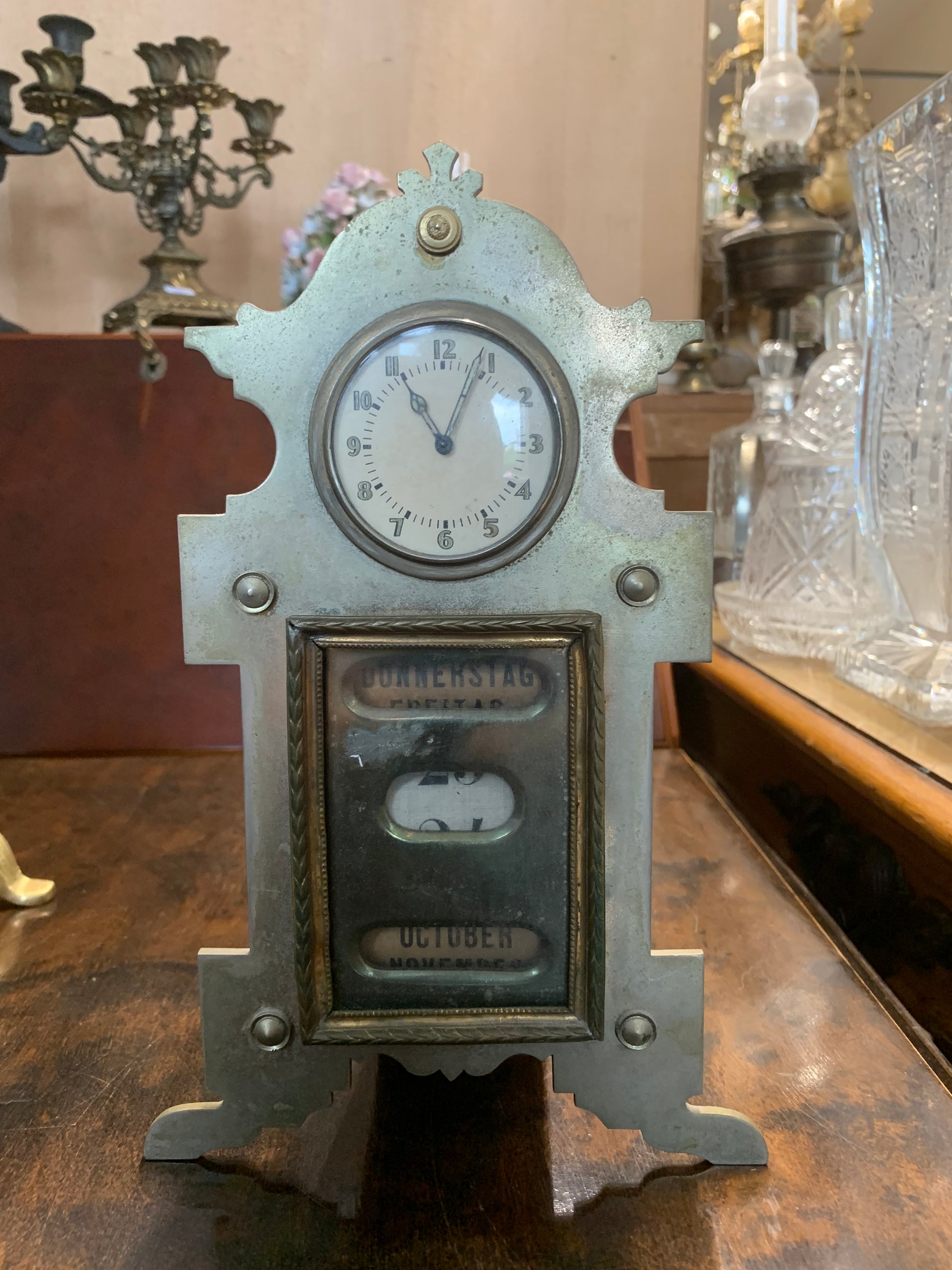 Zegar kominkowy z datownikiem, antyk