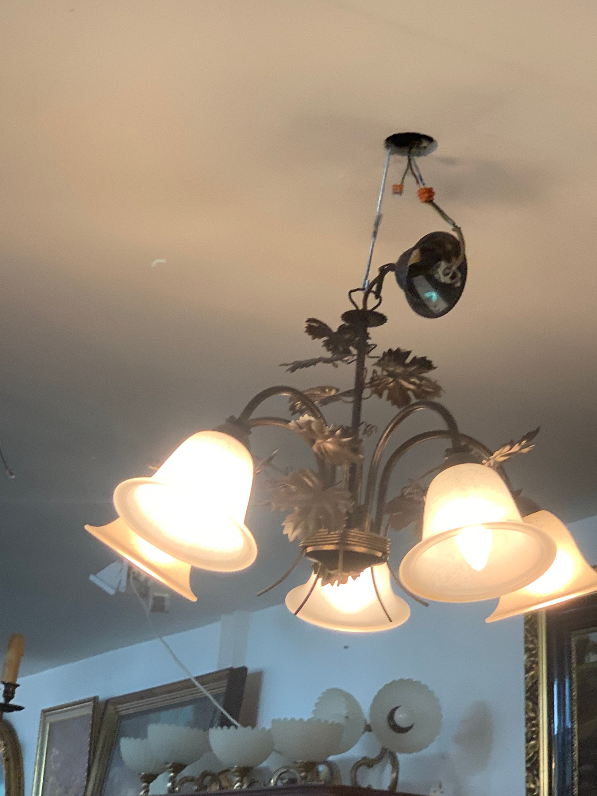 Żyrandol pięcioramienny, metaloplastyka, szkło